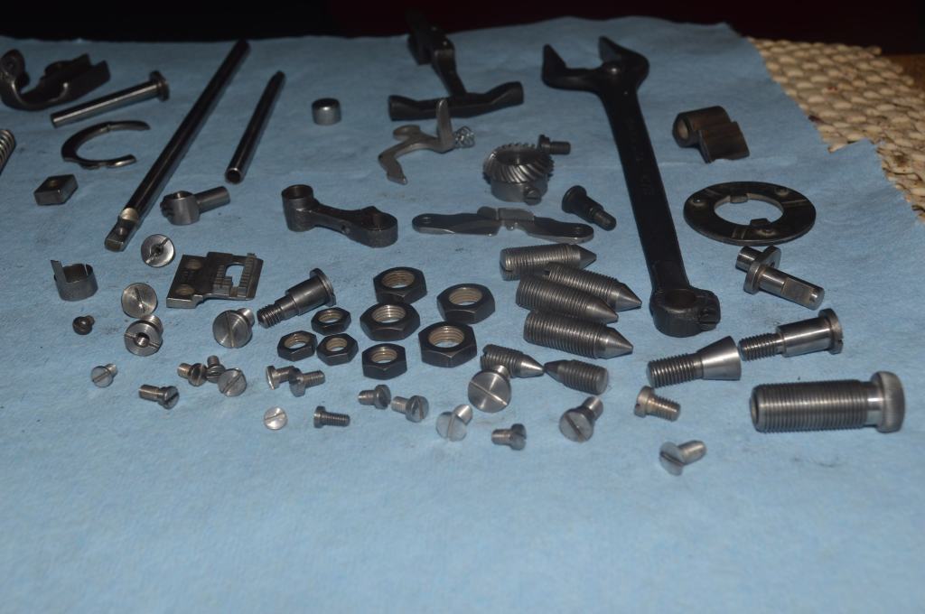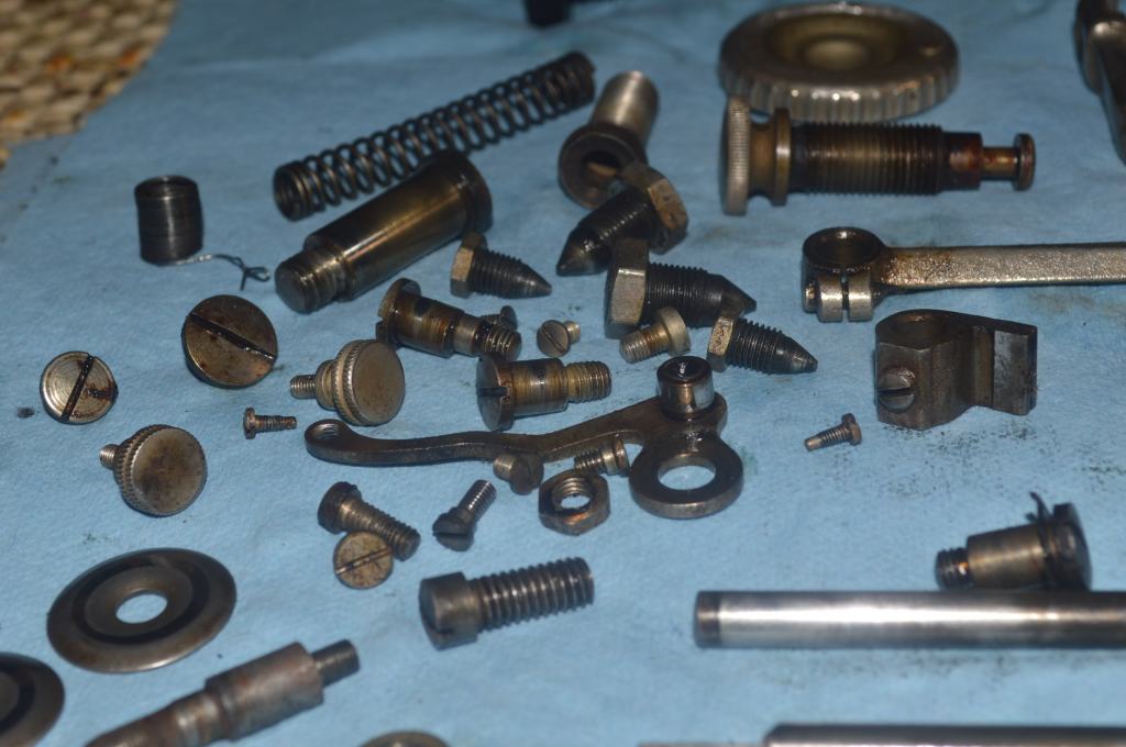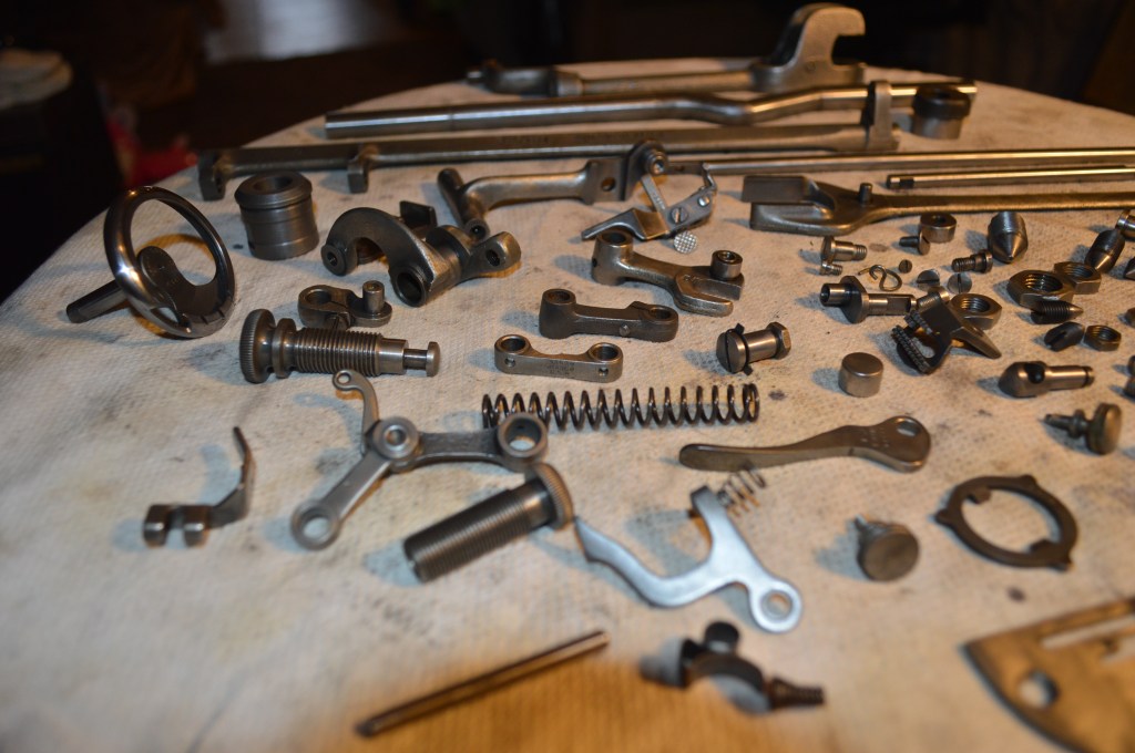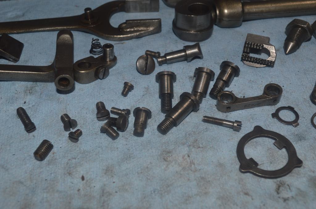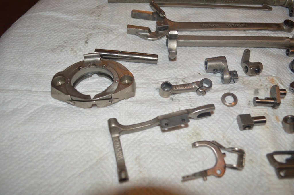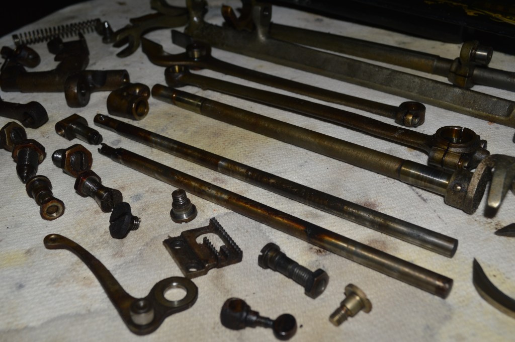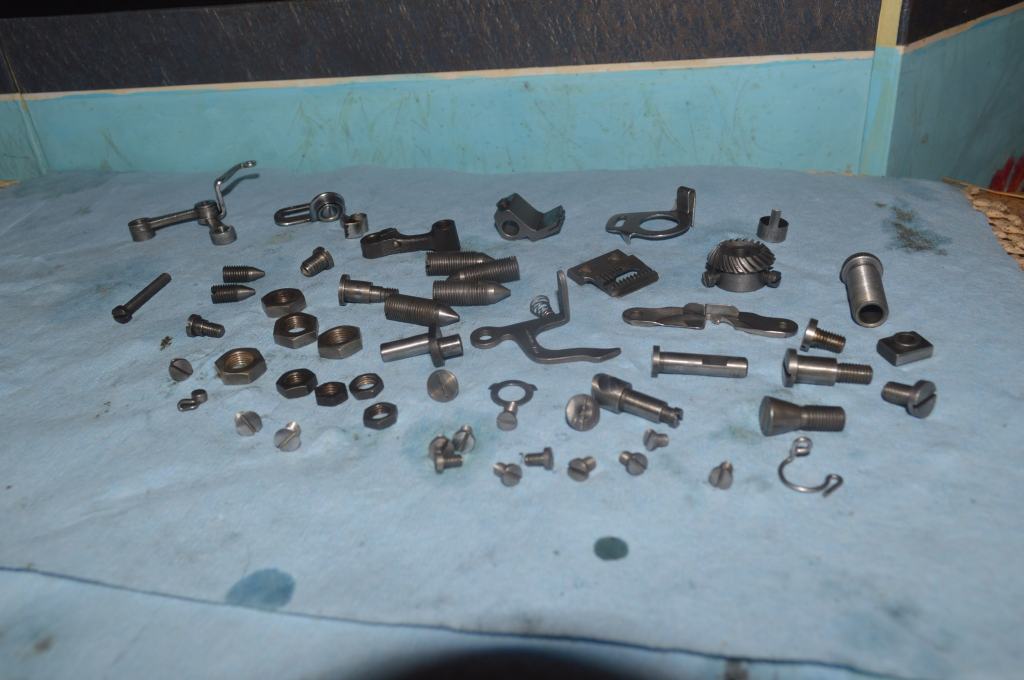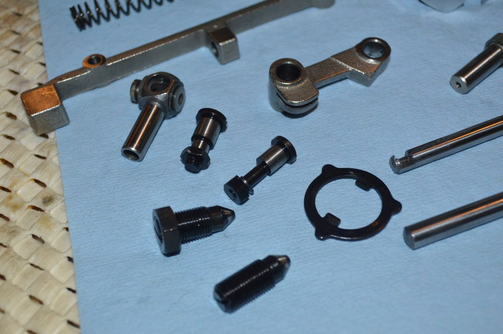 The large plated pieces are cleaned and then polished. Taking pictures of polished pieces isn’t easy, so you will see them shine on the assembled machine! Sorry, but it is worth the wait… The same goes for the little pieces like the stitch length lever, bobbin winder guide, and other little bits and pieces.