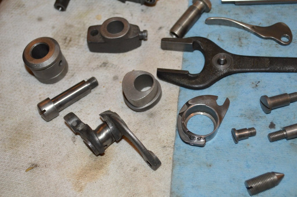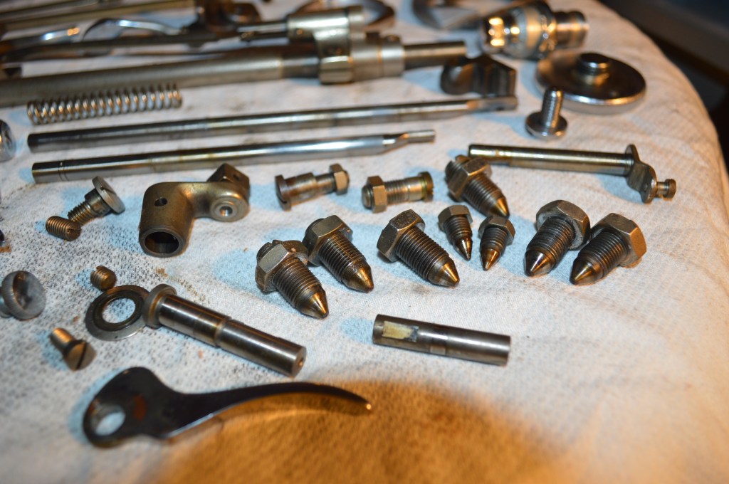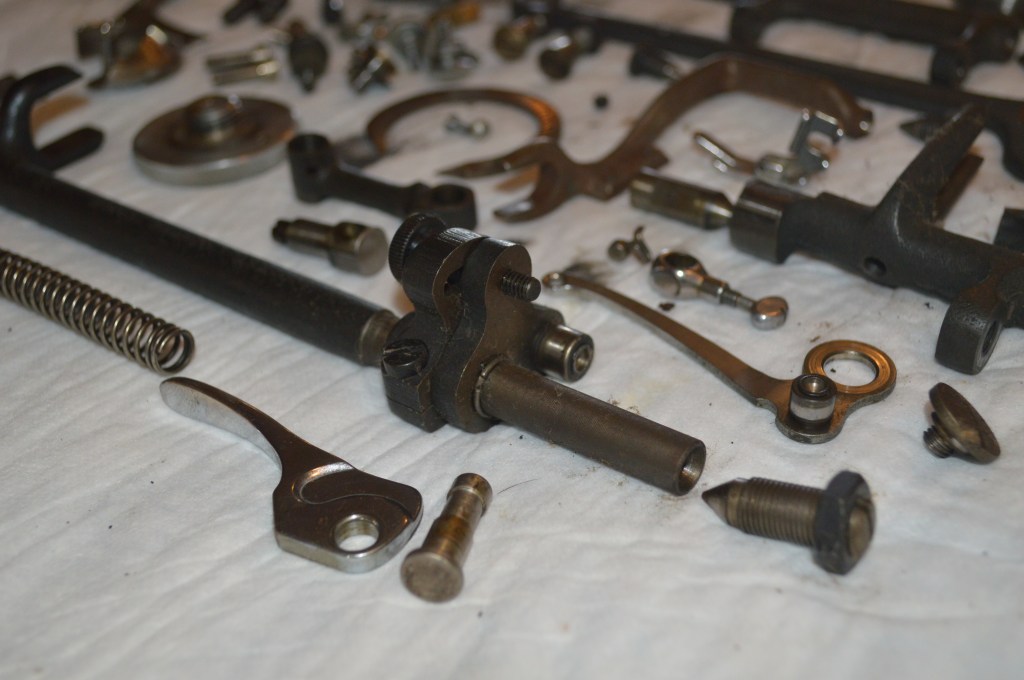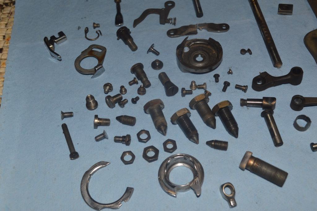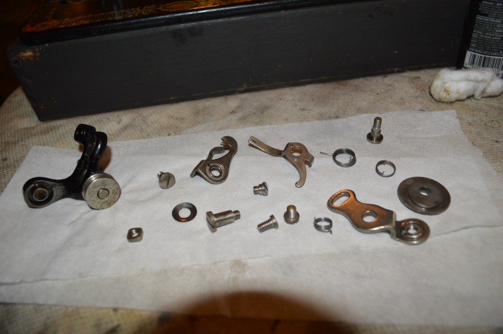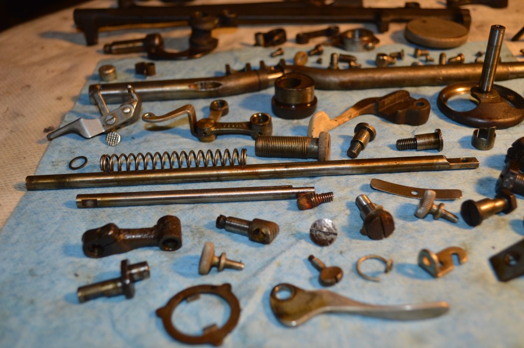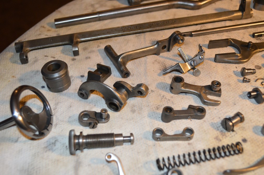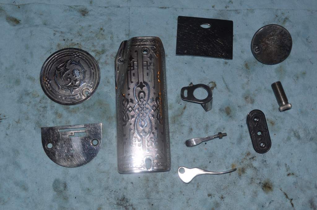 The large plated pieces are cleaned and then polished. Taking pictures of polished pieces isn’t easy, so you will see them shine on the assembled machine! Sorry, but it is worth the wait… The same goes for the little pieces like the stitch length lever, bobbin winder guide, and other little bits and pieces.