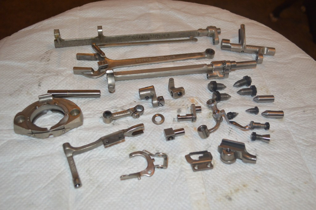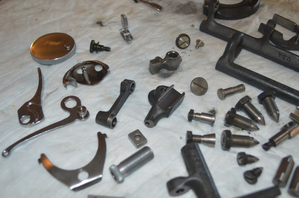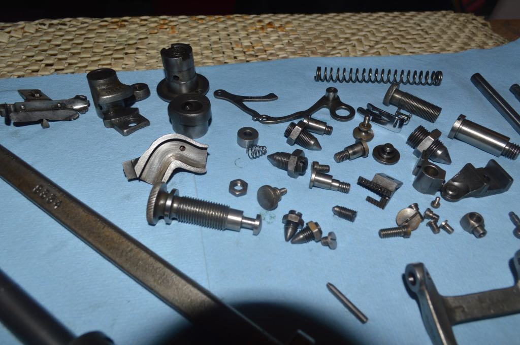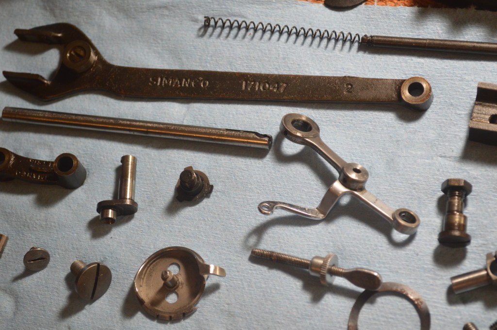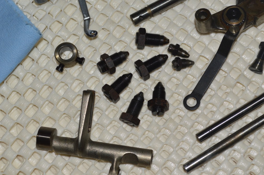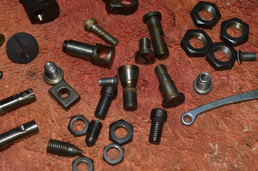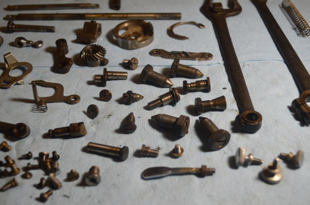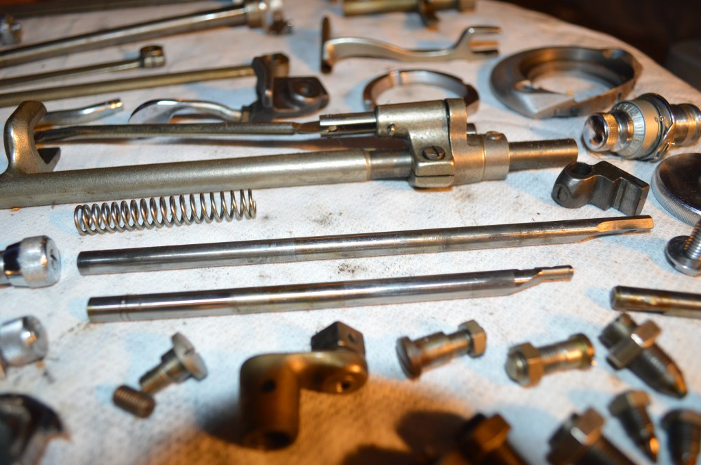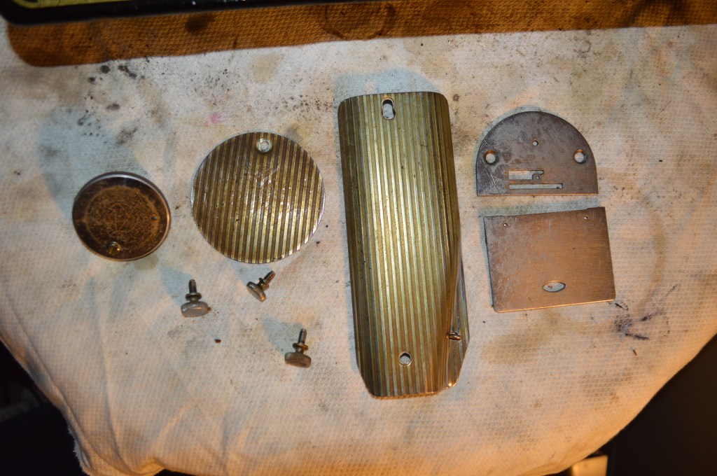 The large plated pieces are cleaned and then polished. Taking pictures of polished pieces isn’t easy, so you will see them shine on the assembled machine! Sorry, but it is worth the wait… The same goes for the little pieces like the stitch length lever, bobbin winder guide, and other little bits and pieces.