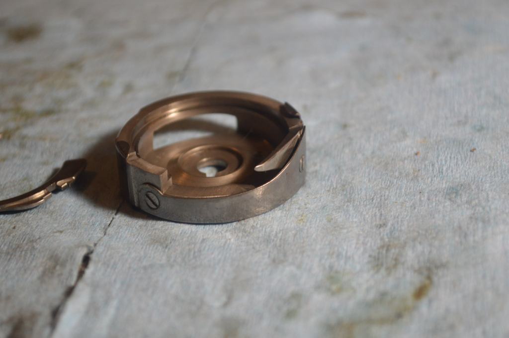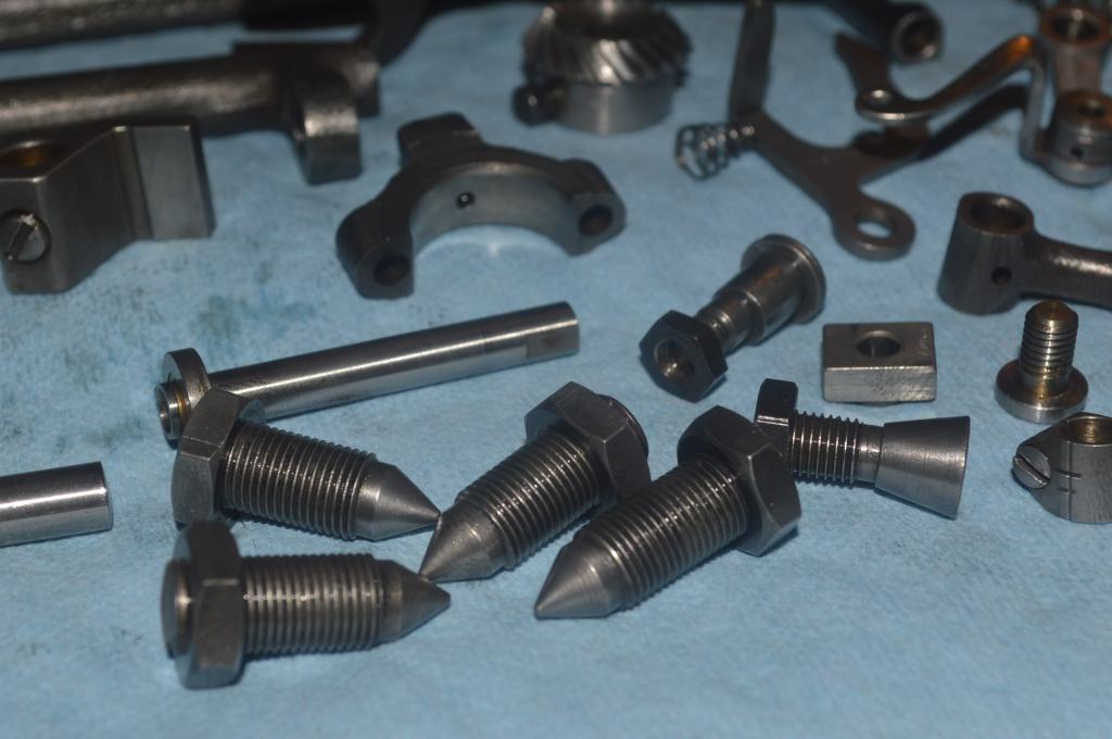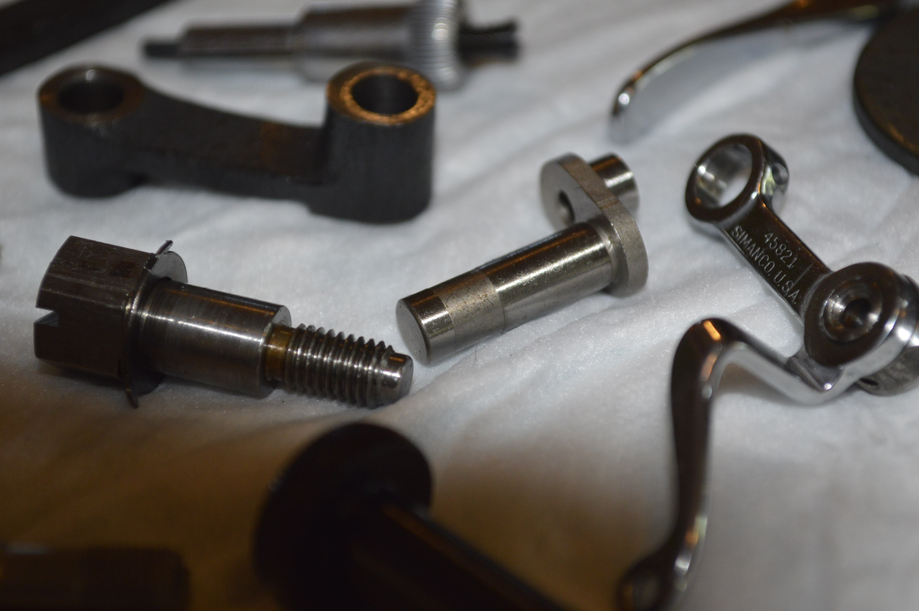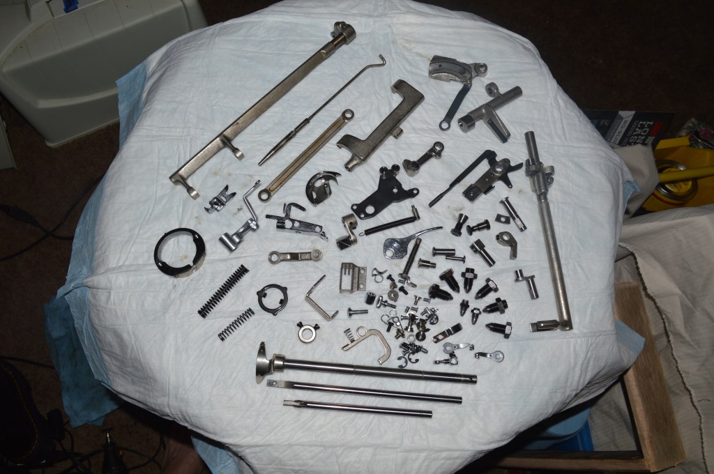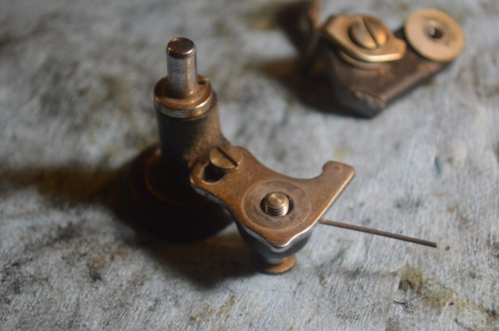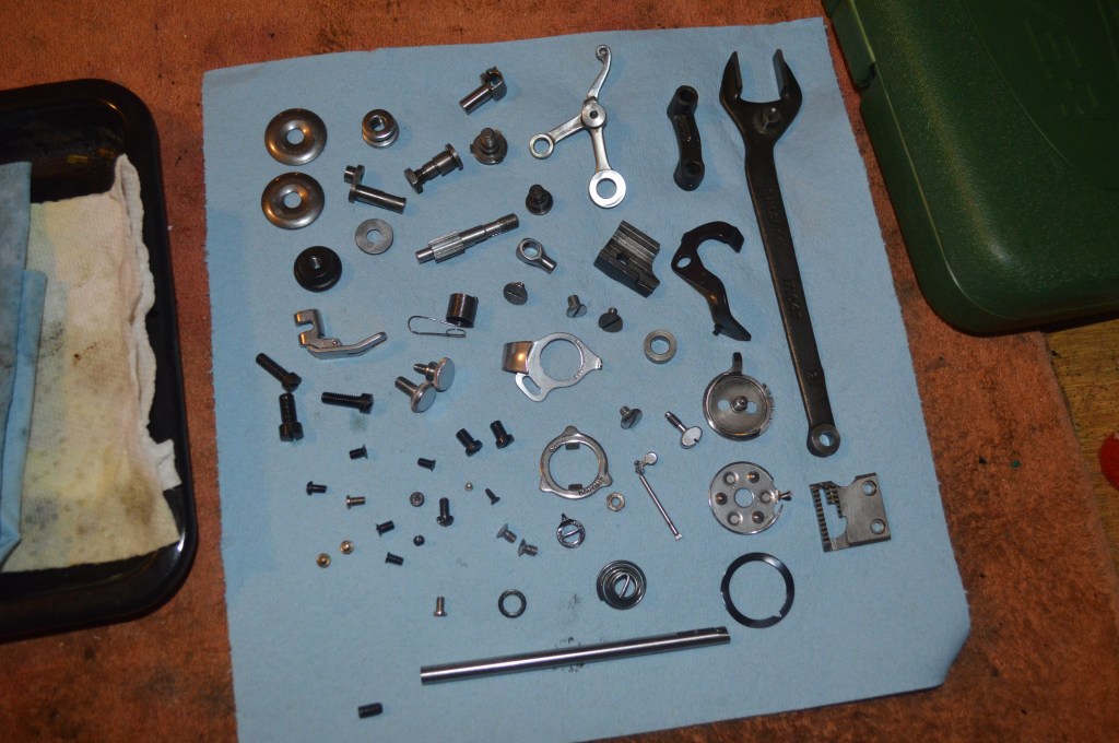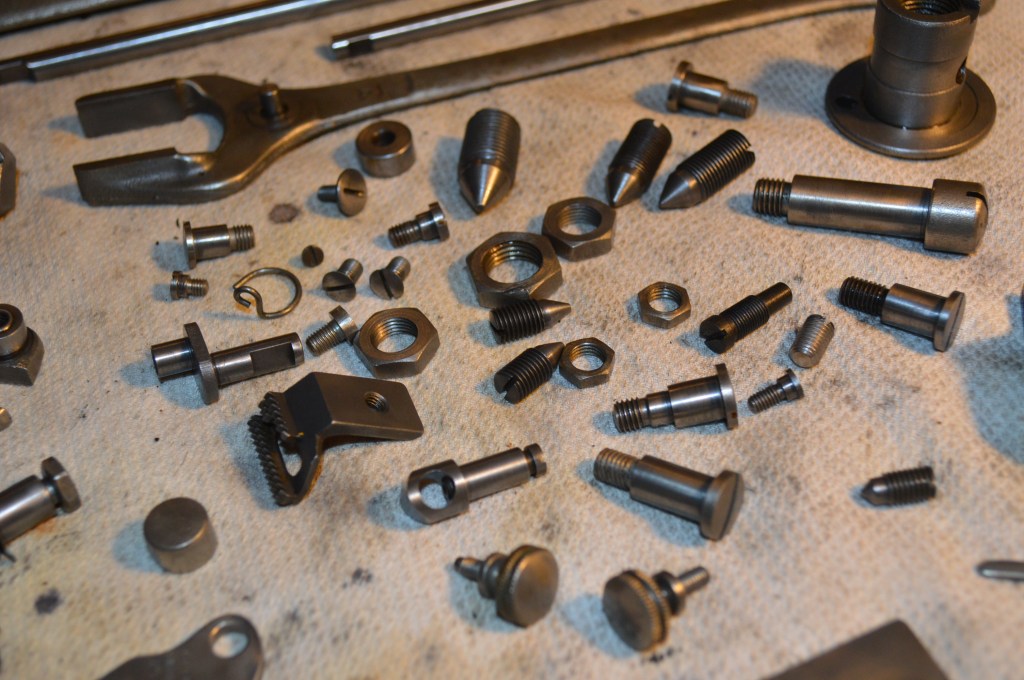The large plated pieces are cleaned and then polished. Taking pictures of polished pieces isn’t easy, so you will see them shine on the assembled machine! Sorry, but it is worth the wait… The same goes for the little pieces like the stitch length lever, bobbin winder guide, and other little bits and pieces.