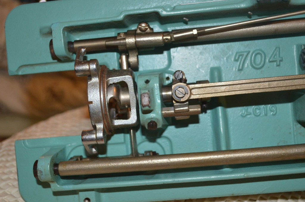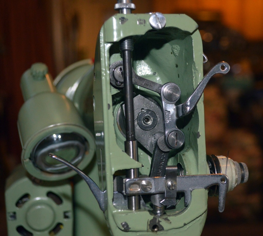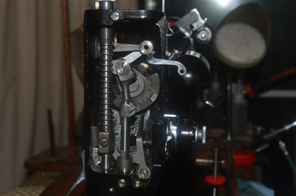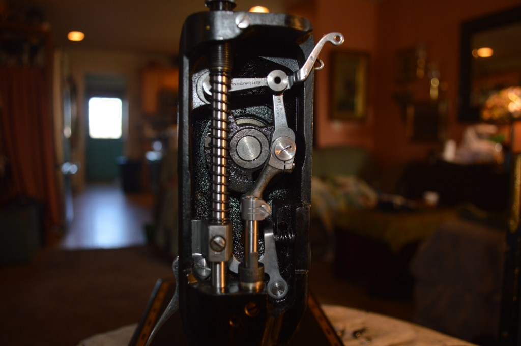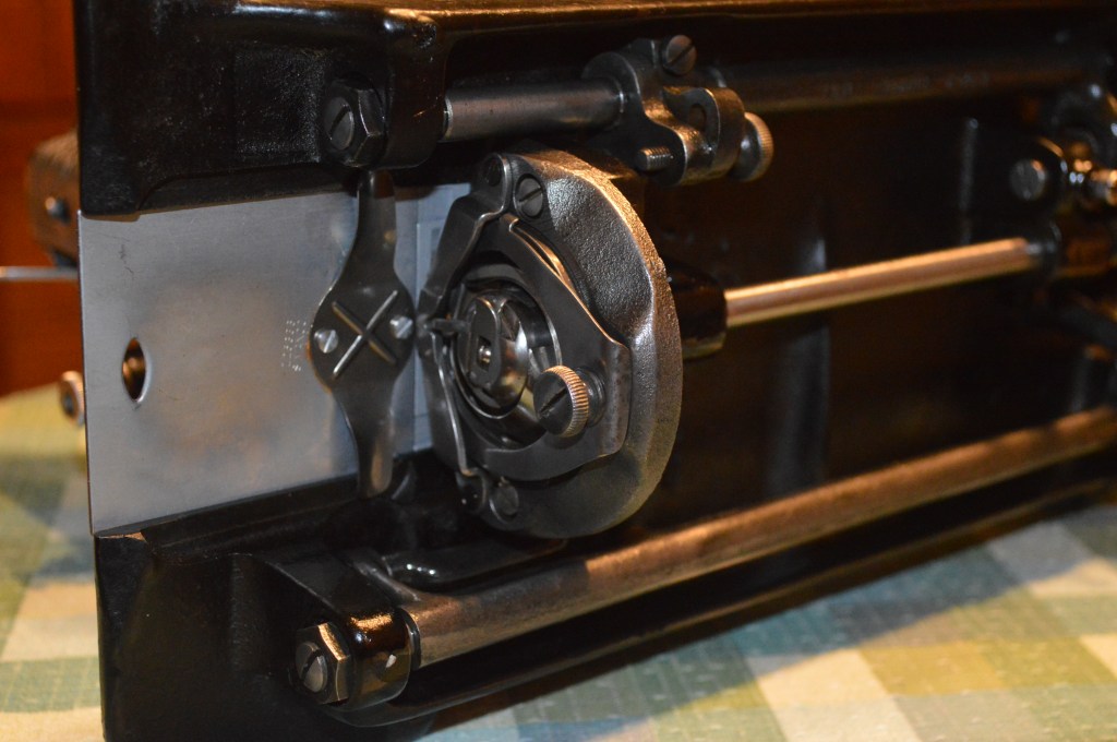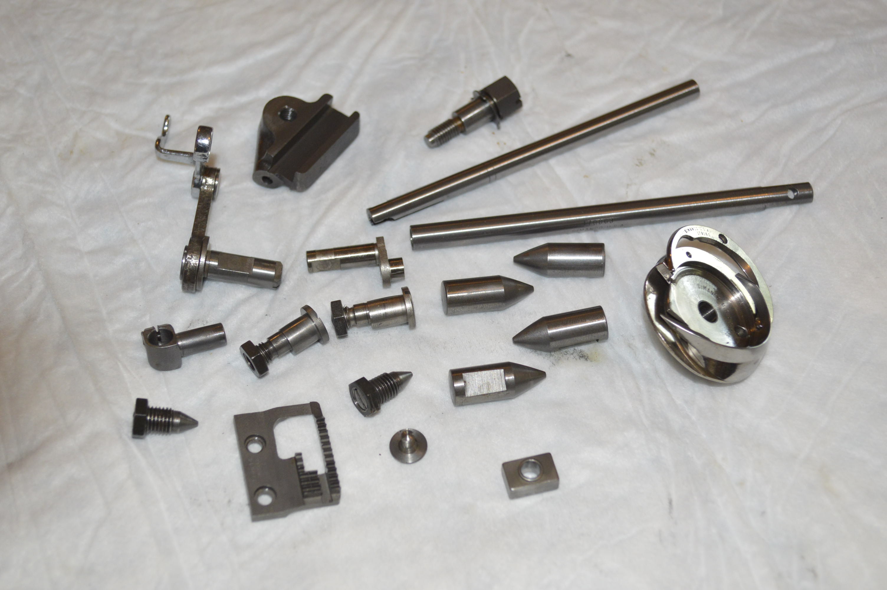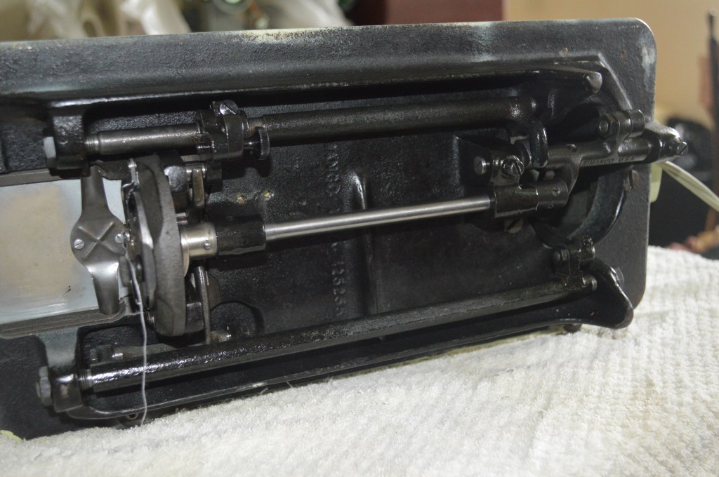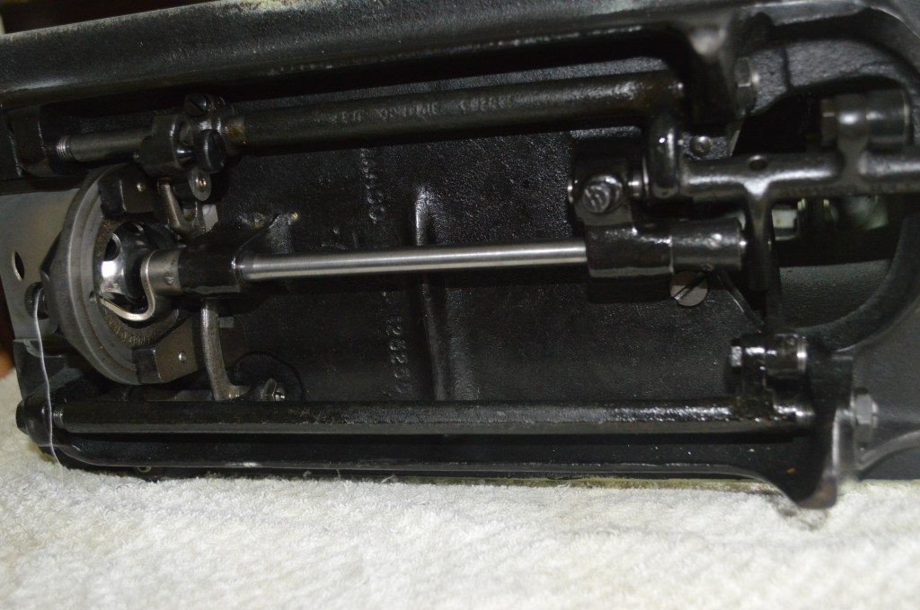 The needle bar, presser foot bar, and bottom bobbin hook shaft are polished to a glass smooth finish.