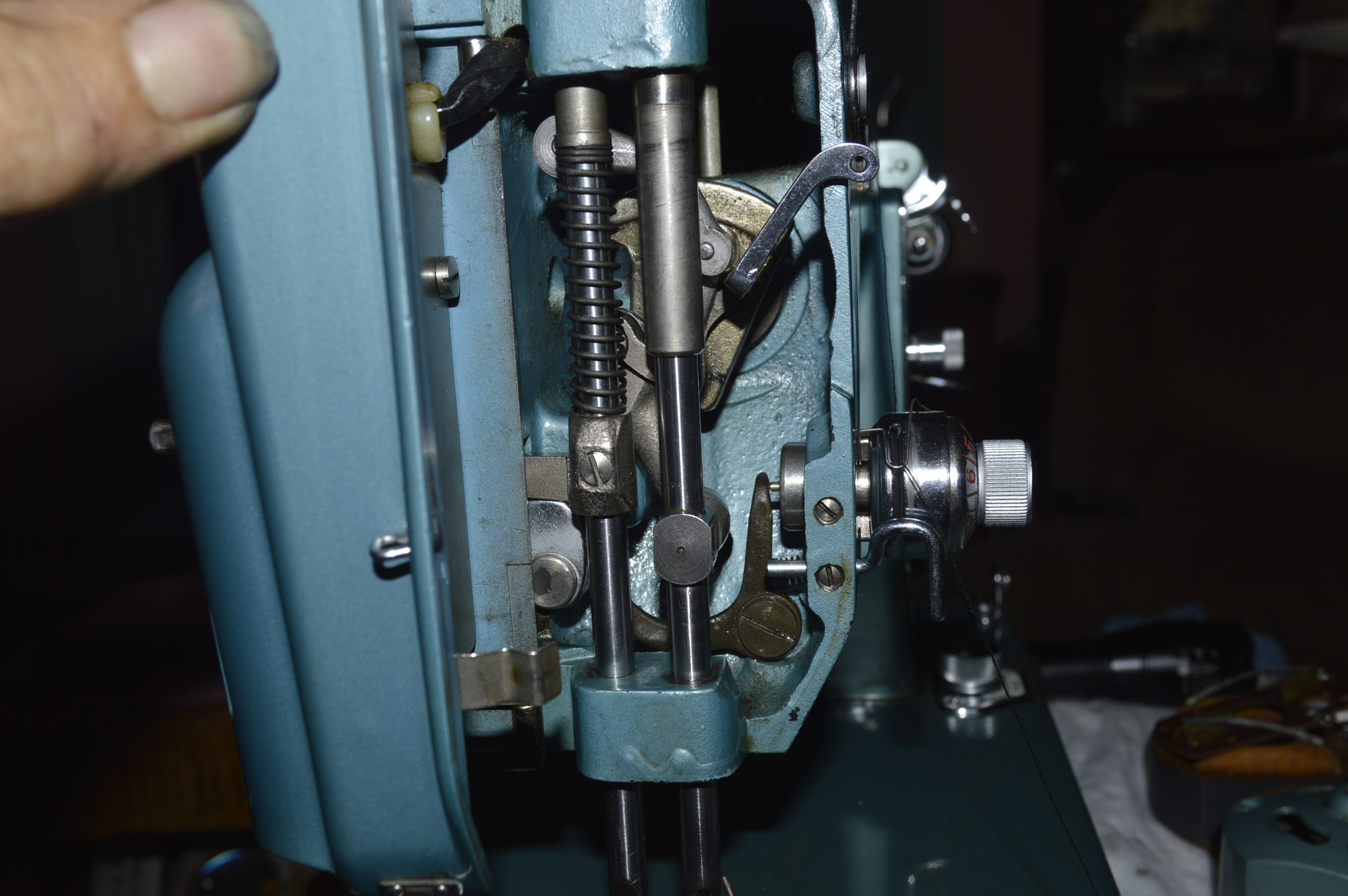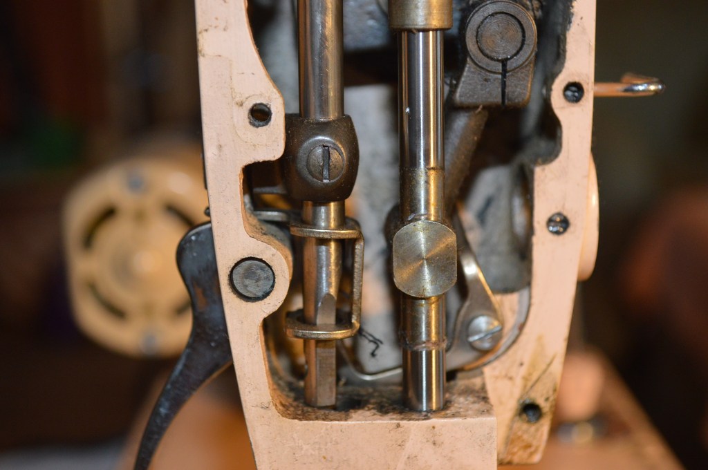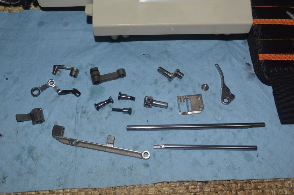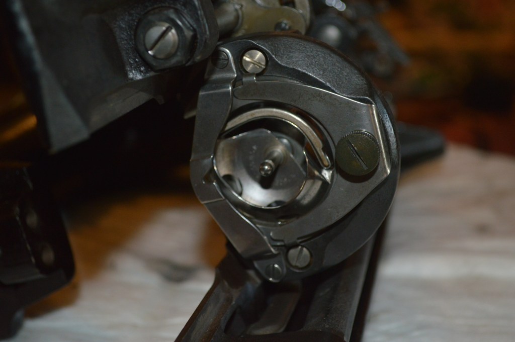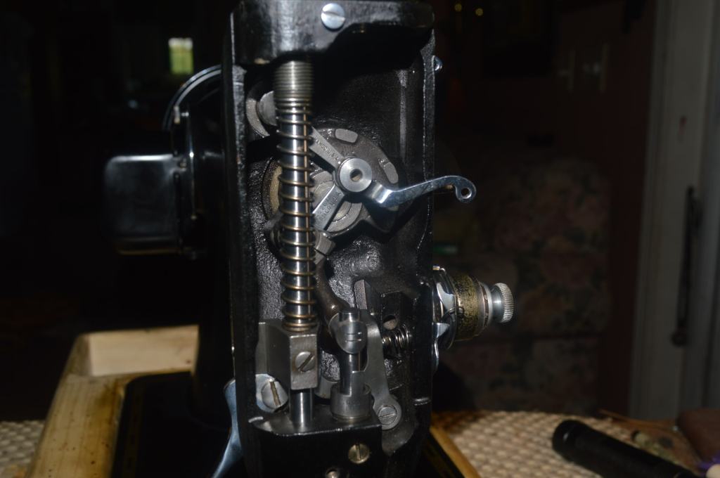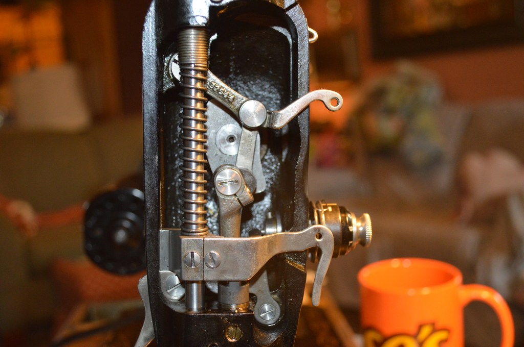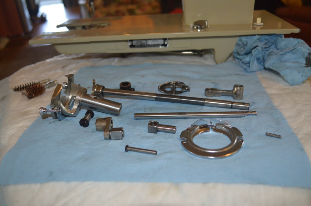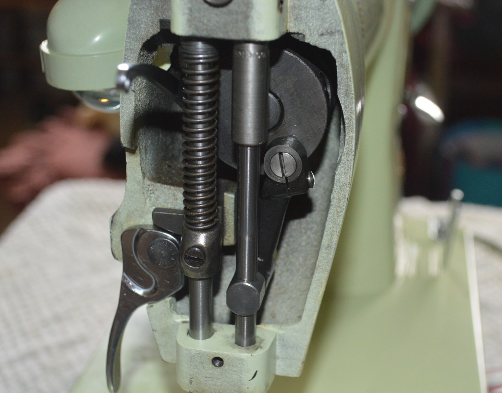 The needle bar, presser foot bar, and bottom bobbin hook shaft are polished to a glass smooth finish.
