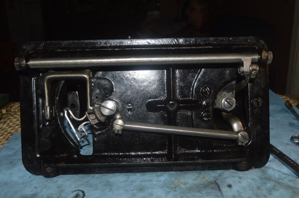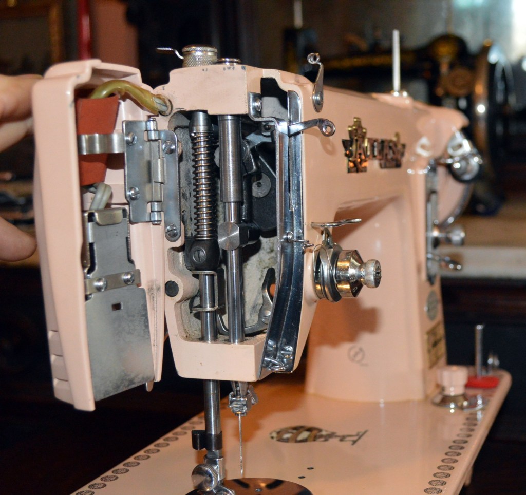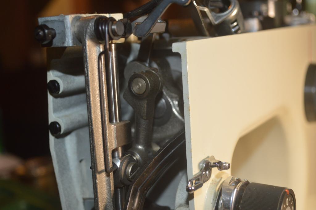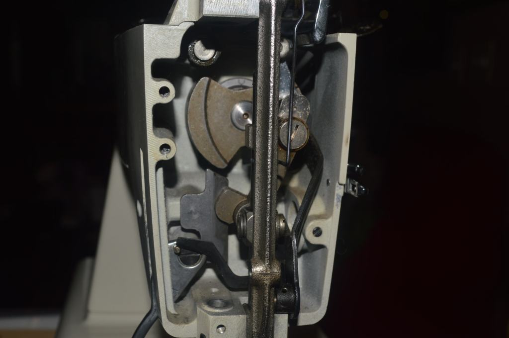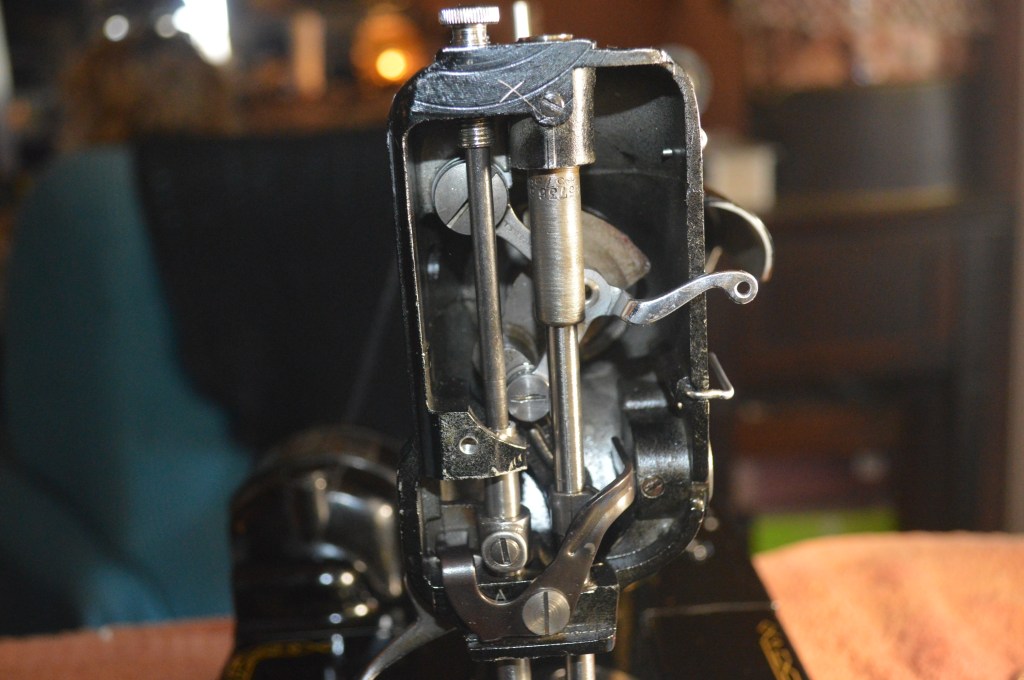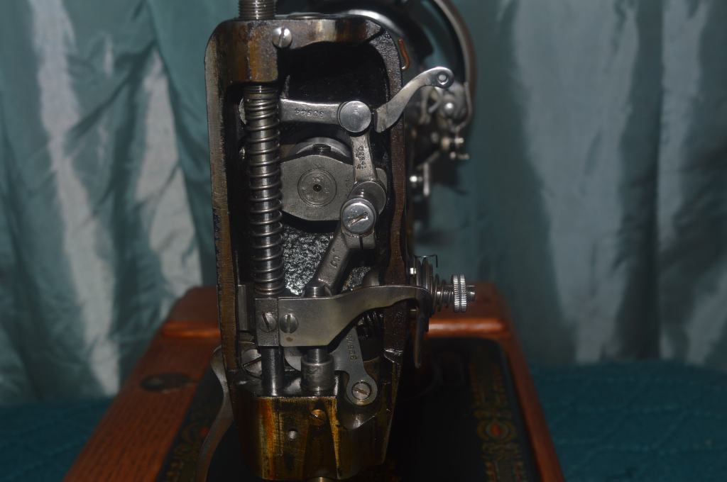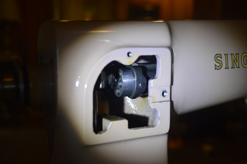 The needle bar, presser foot bar, and bottom bobbin hook shaft are polished to a glass smooth finish.