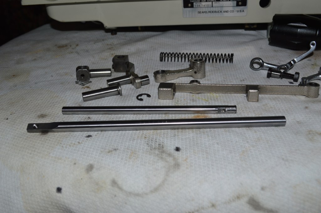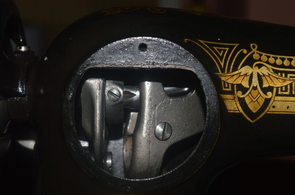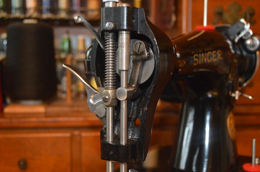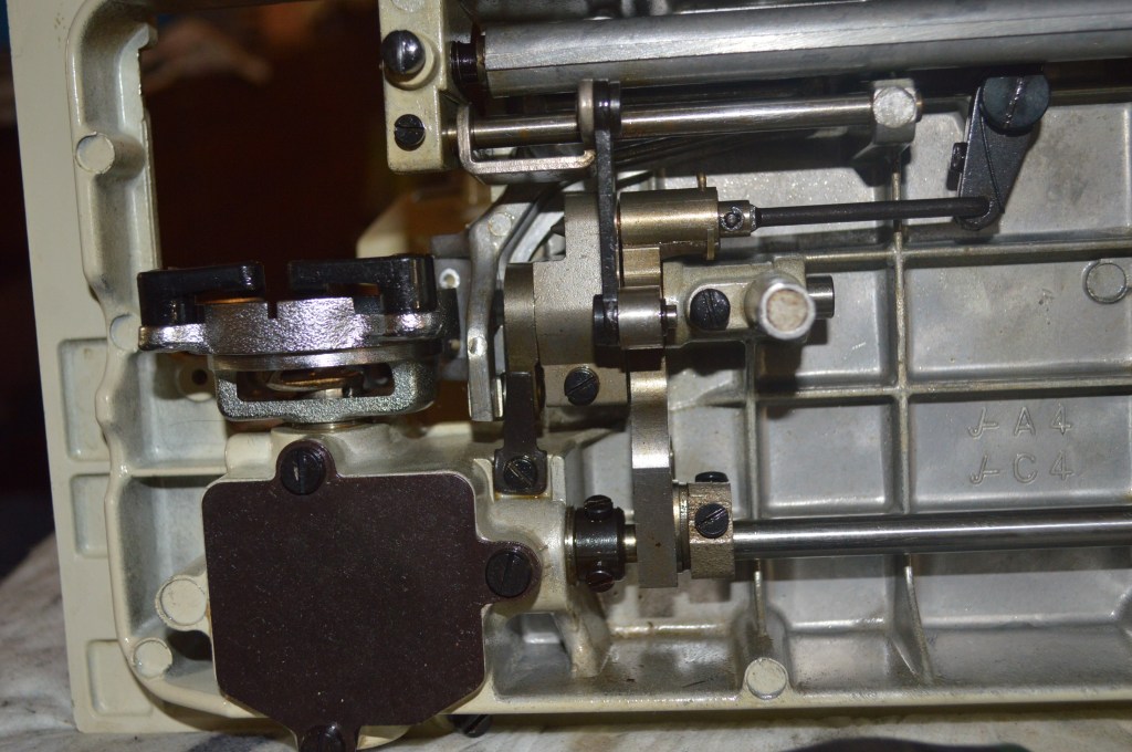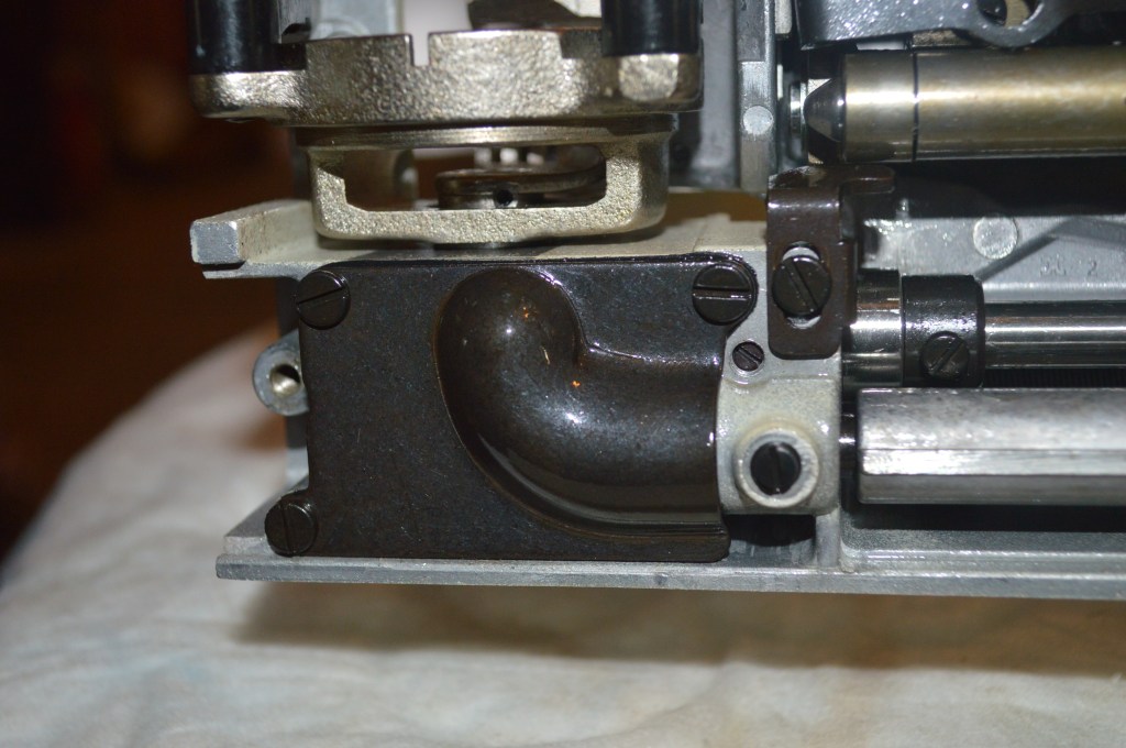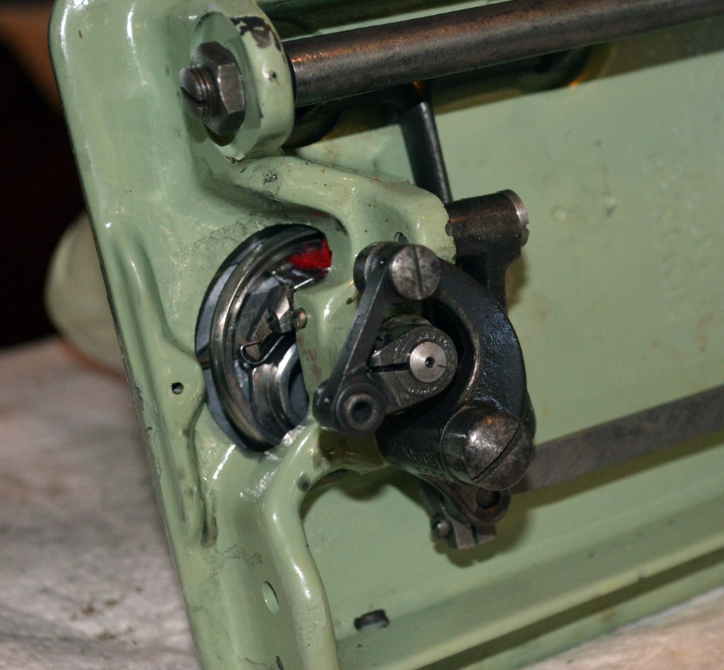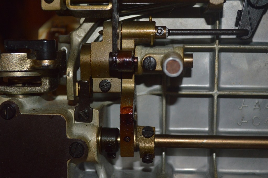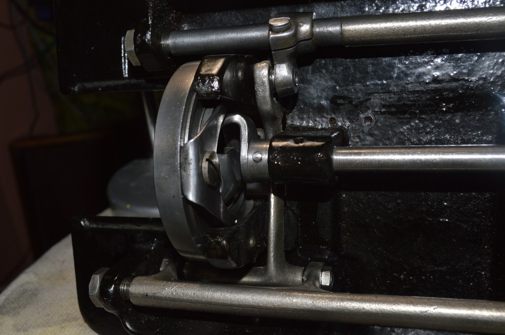 The needle bar, presser foot bar, and bottom bobbin hook shaft are polished to a glass smooth finish.