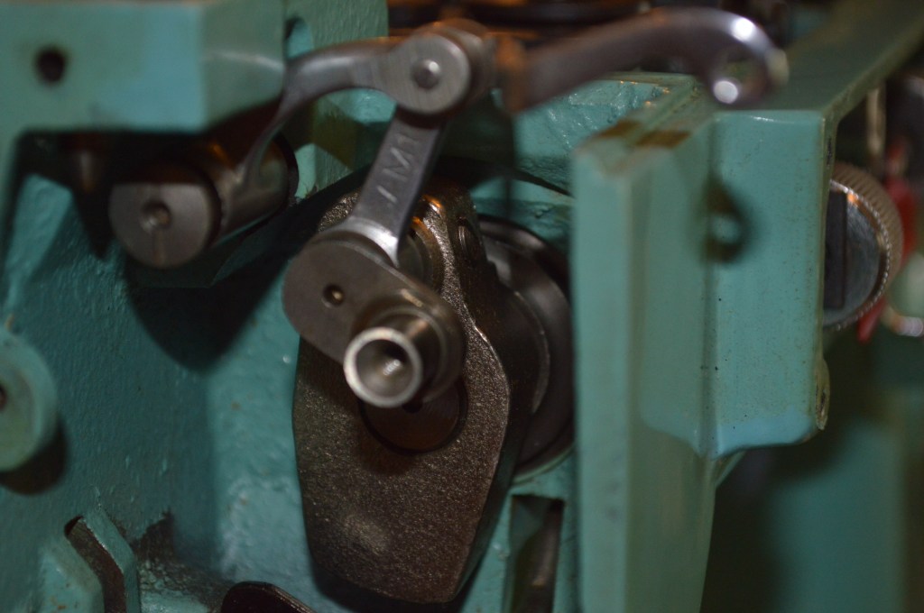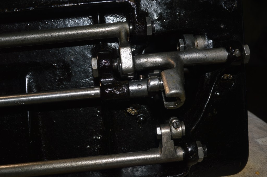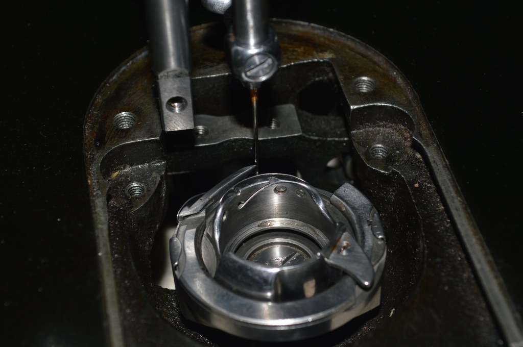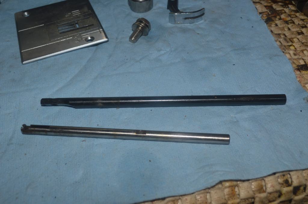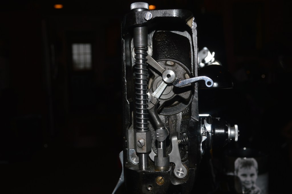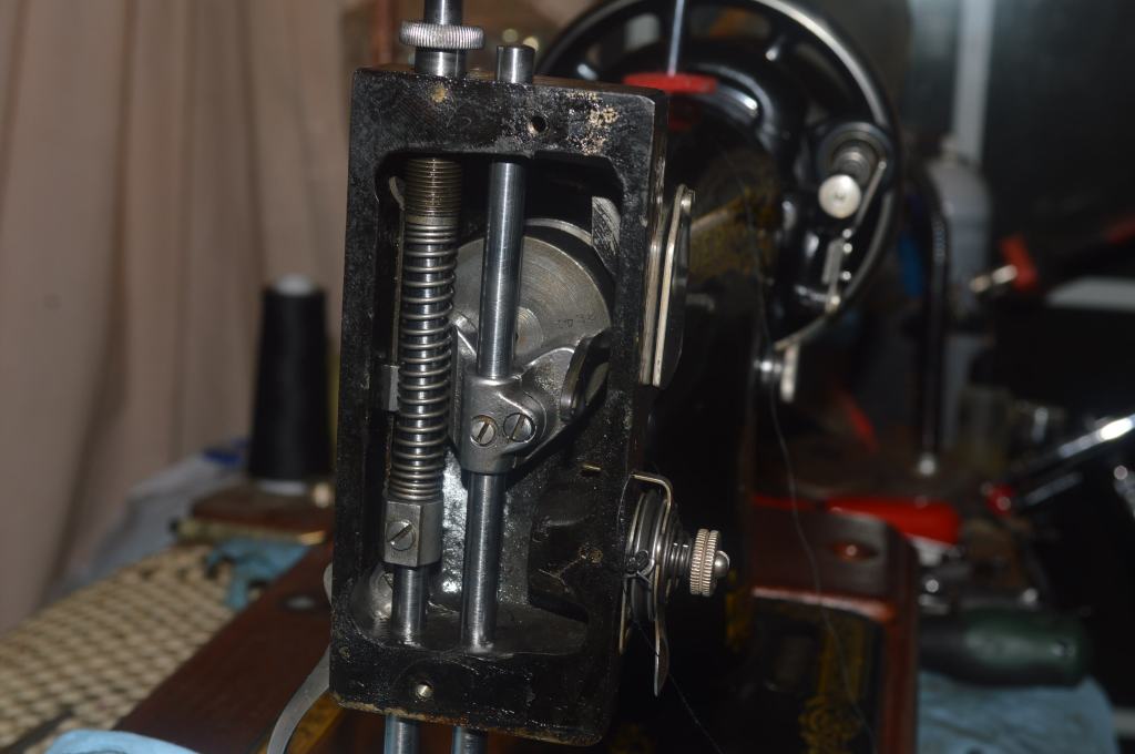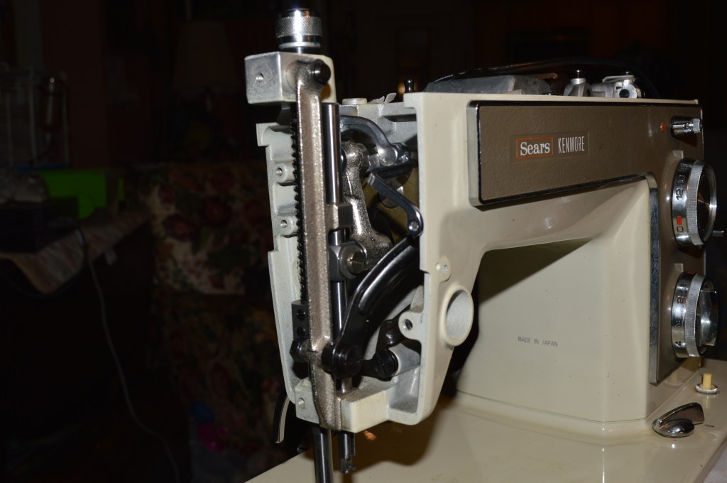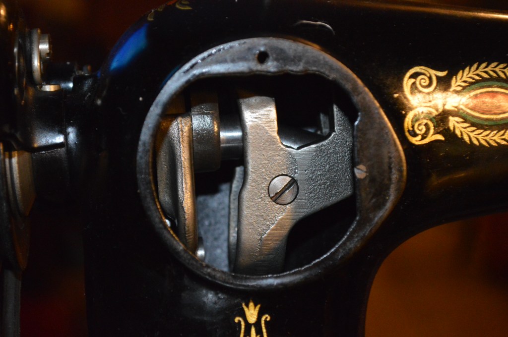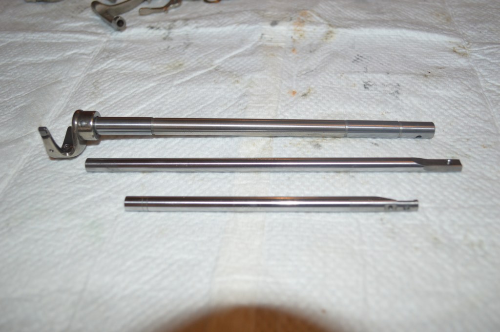 The needle bar, presser foot bar, and bottom bobbin hook shaft are polished to a glass smooth finish.
