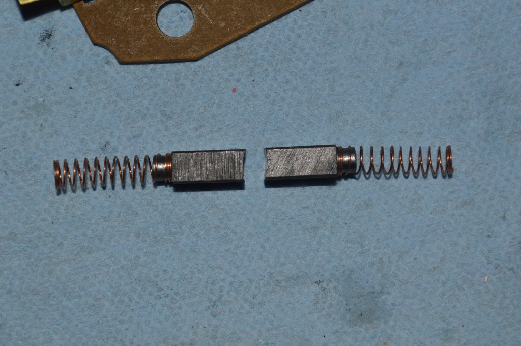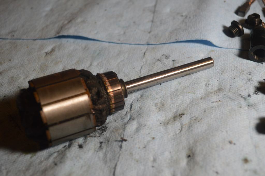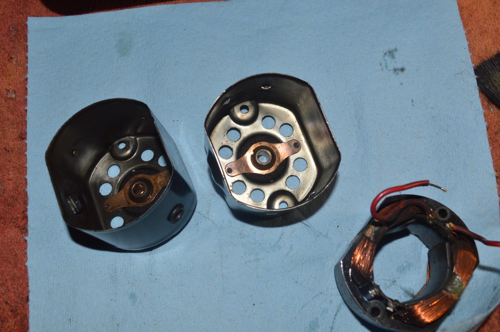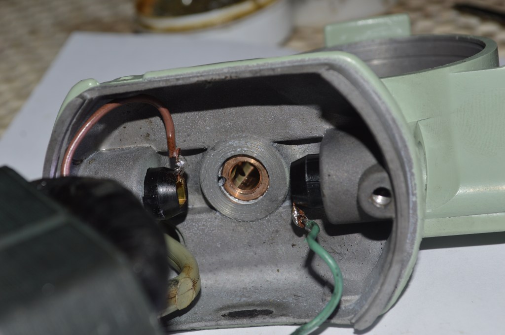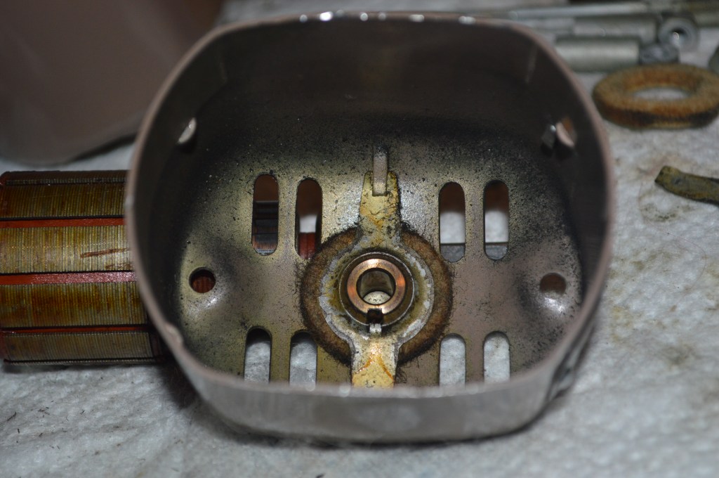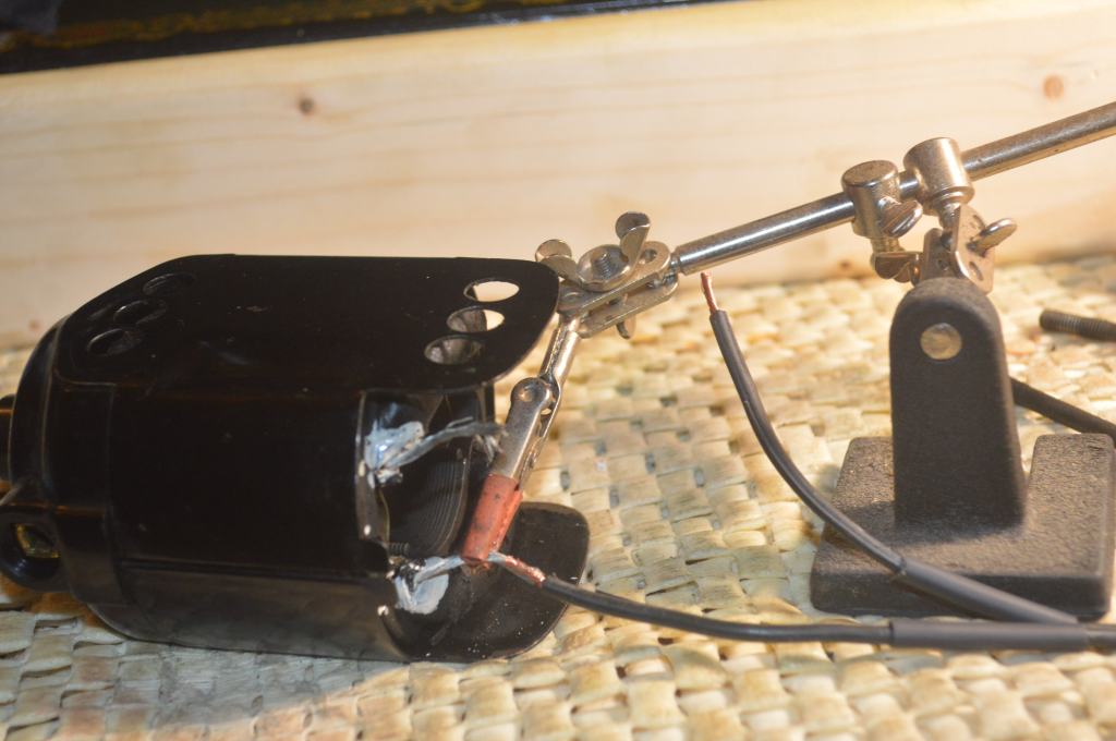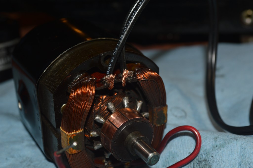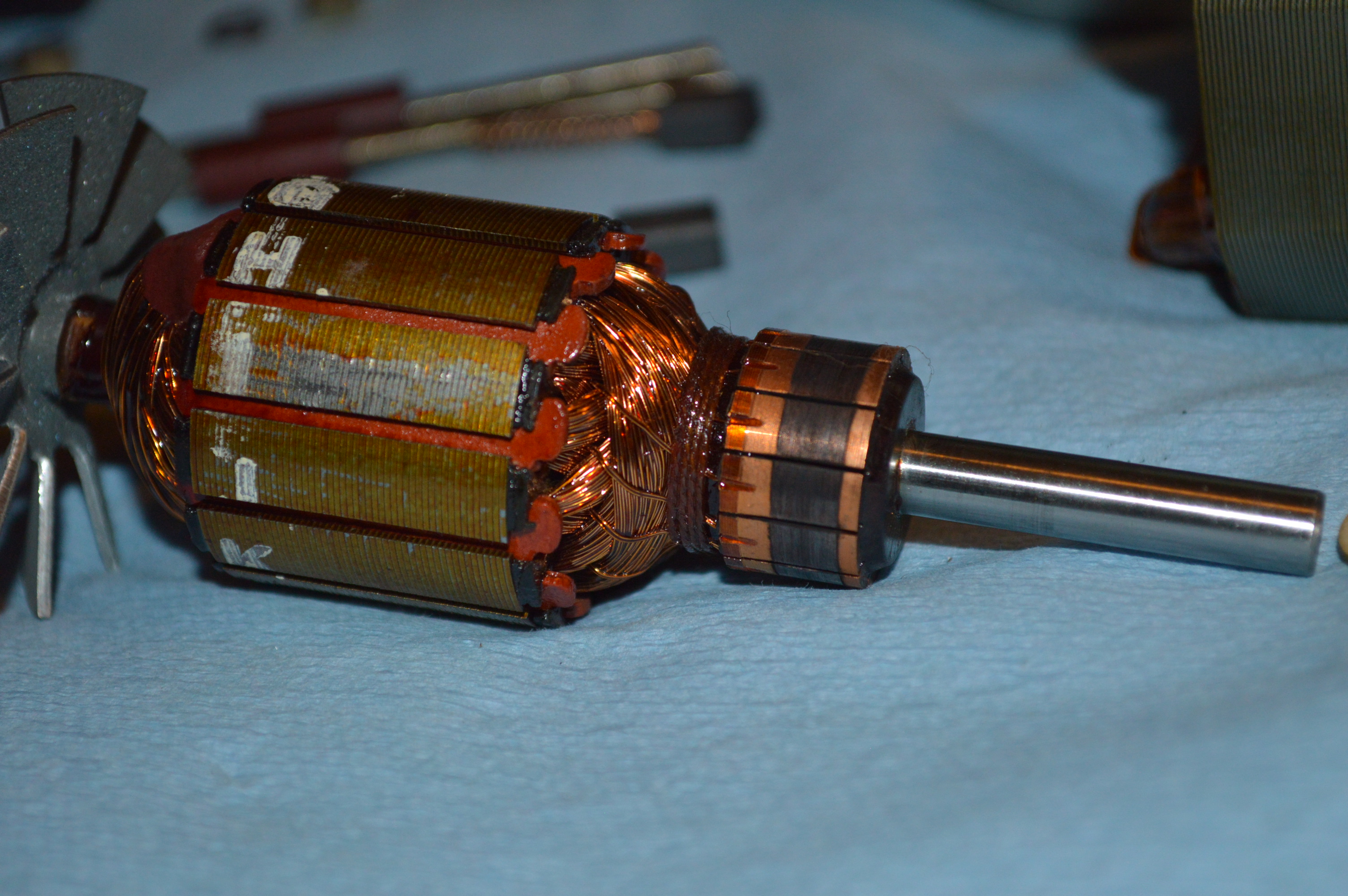 Before reassembly, the brushes are removed and cleaned, the armature and shafts are polished, the motor housings are cleaned on the inside and the oil wicks are recharged. The main wires are attached and soldered to the brush tubes. After reassembly, paint chips on the motor housing are corrected with paint match paint.