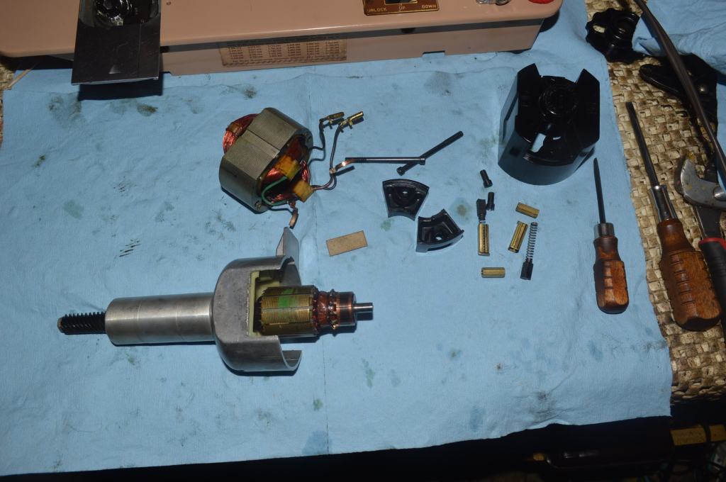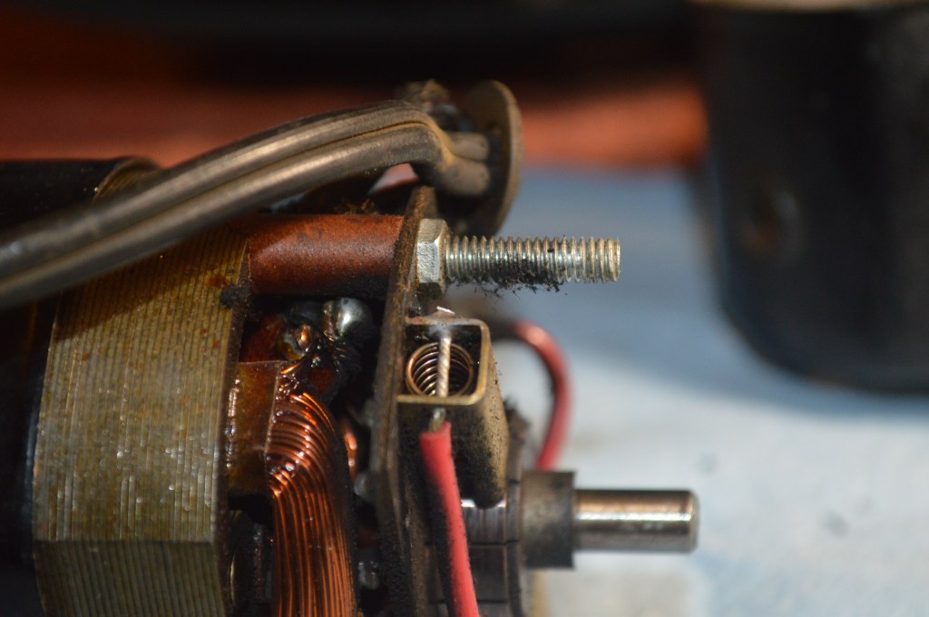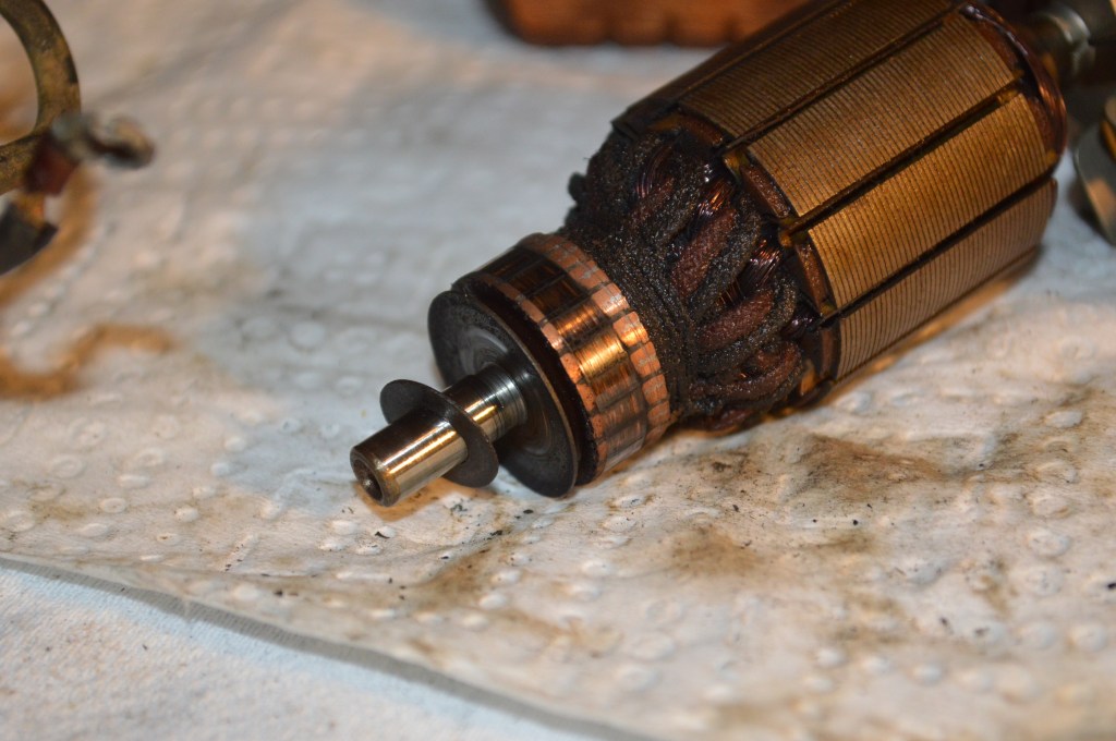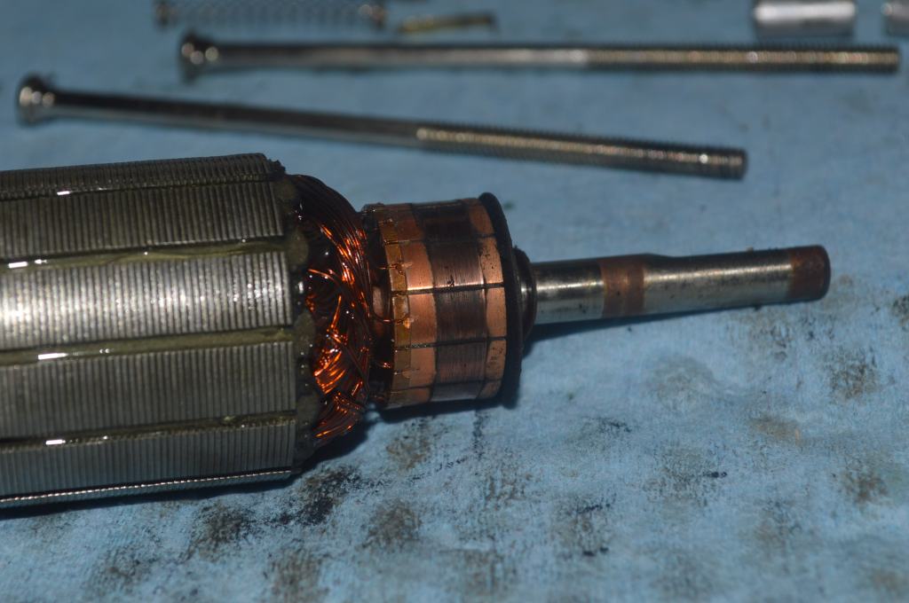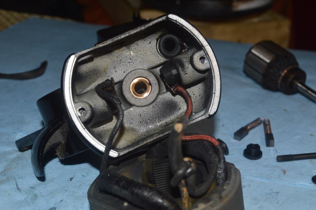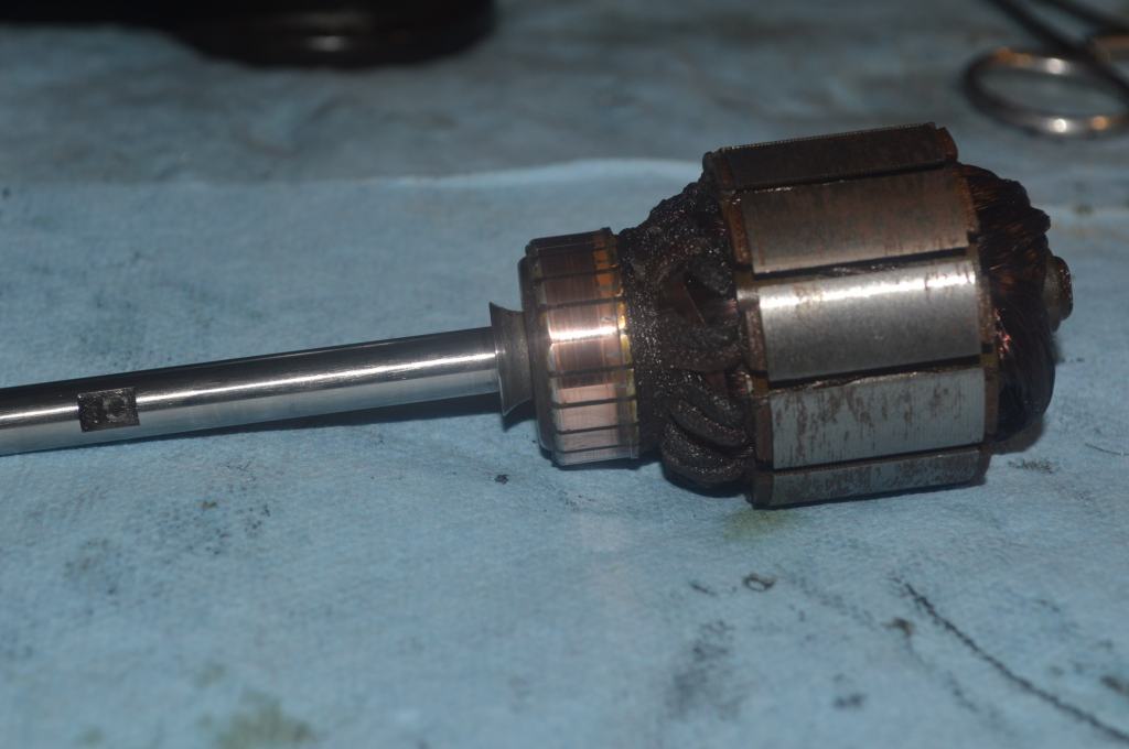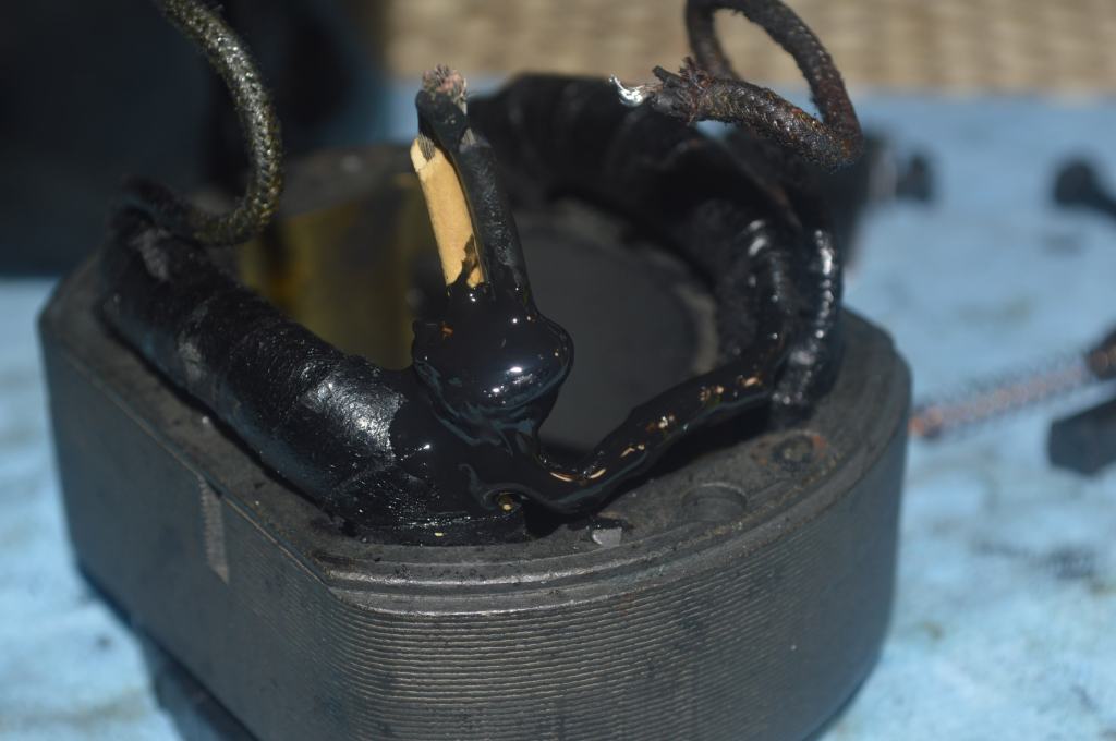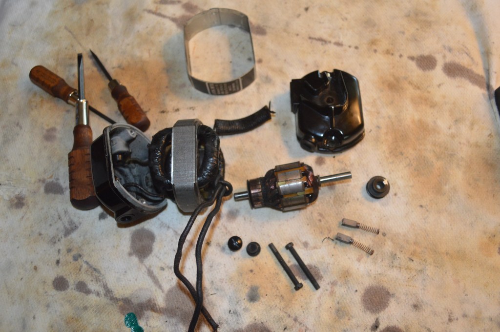 Before reassembly, the brushes are removed and cleaned, the armature and shafts are polished, the motor housings are cleaned on the inside and the oil wicks are recharged. The main wires are attached and soldered to the brush tubes. After reassembly, paint chips on the motor housing are corrected with paint match paint.