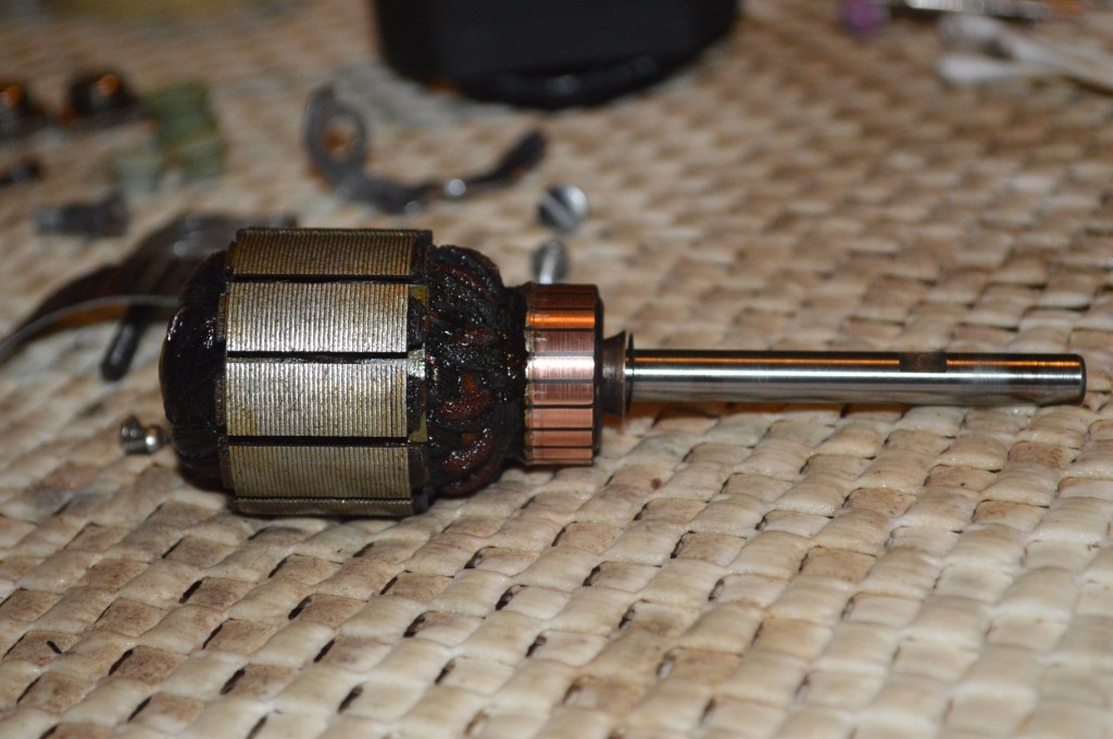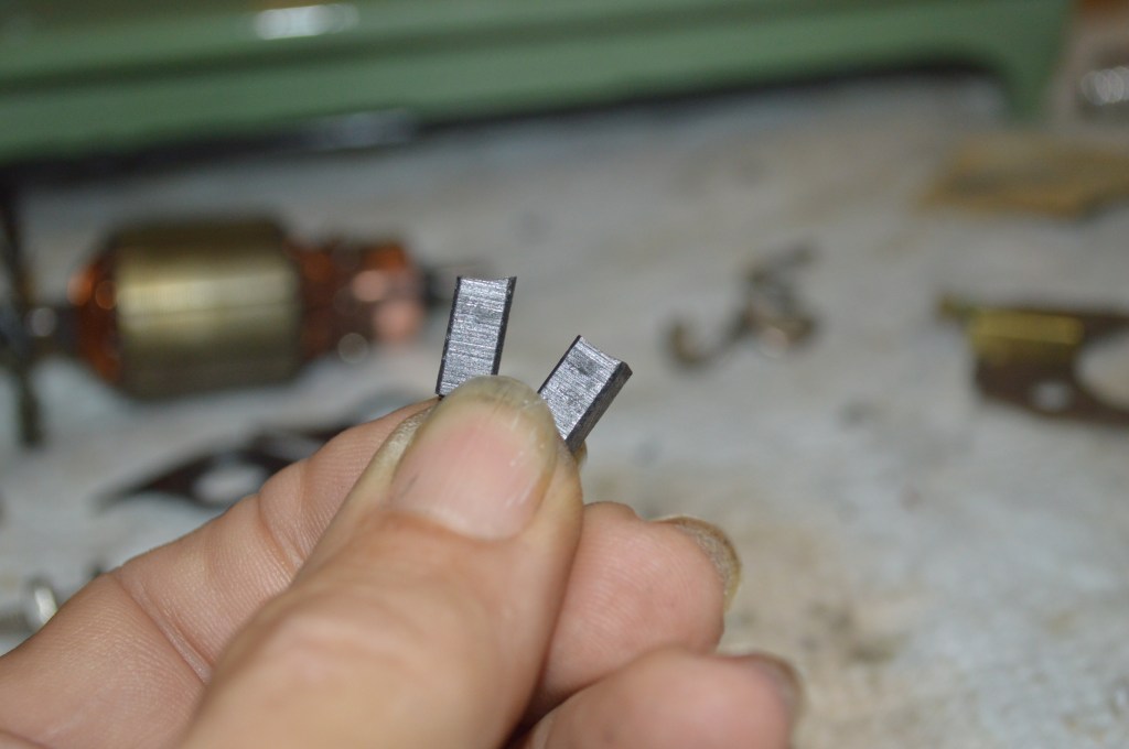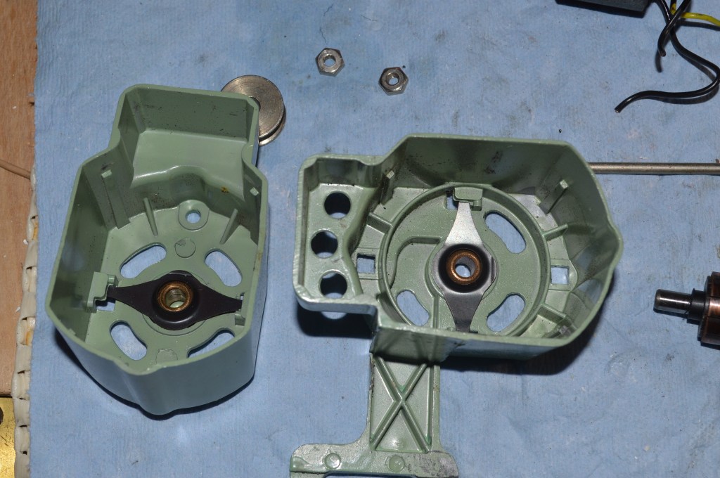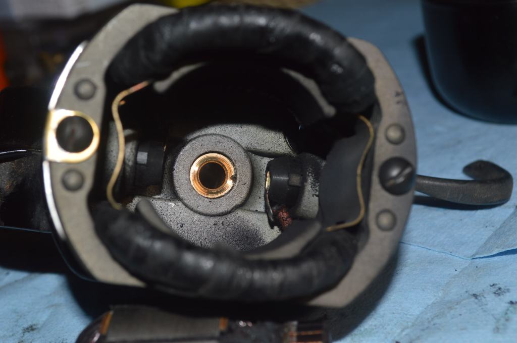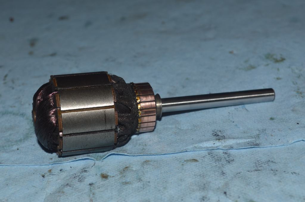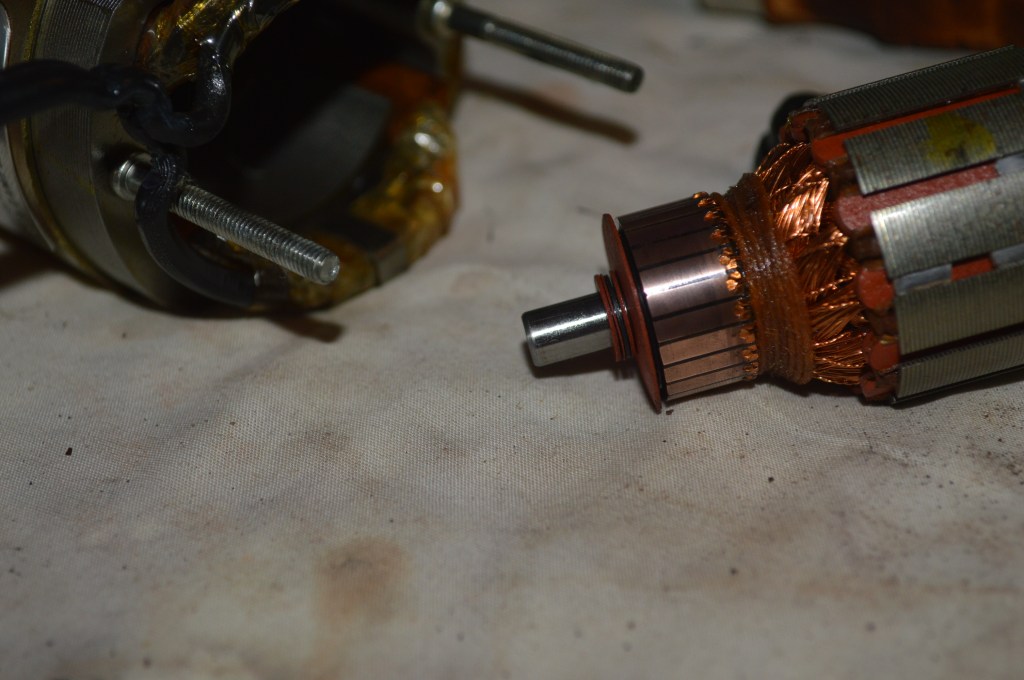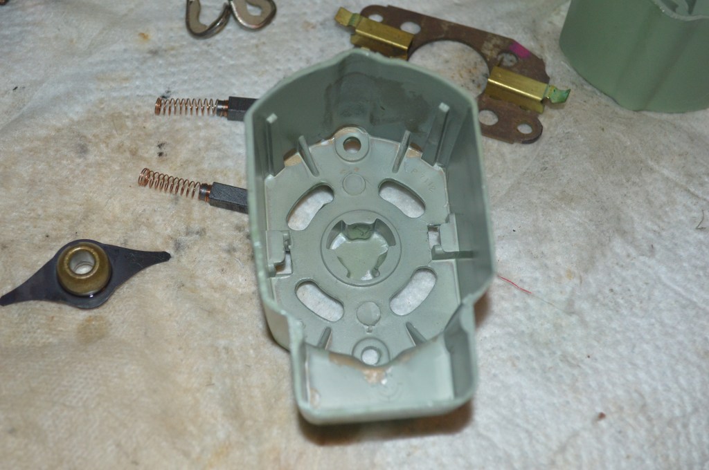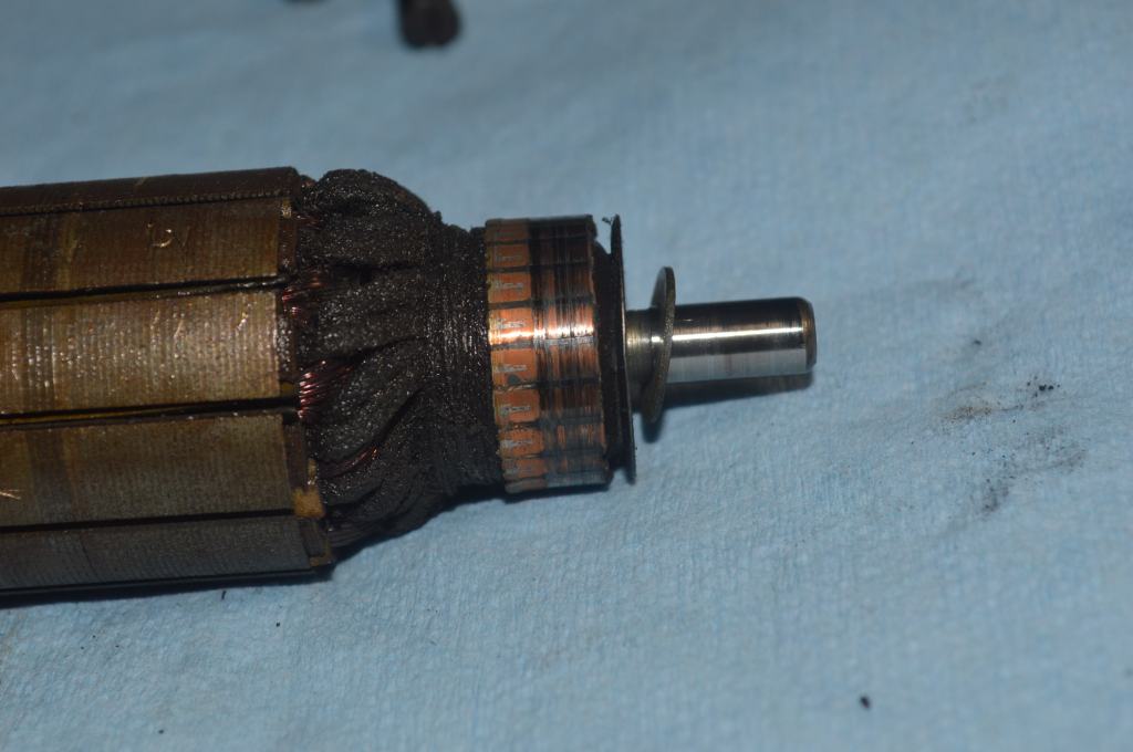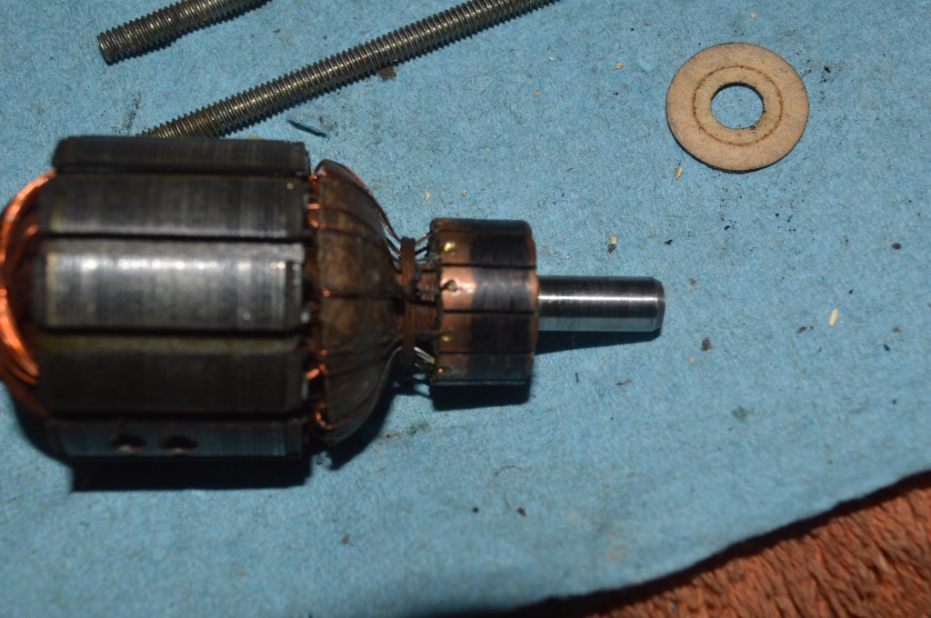 Before reassembly, the brushes are removed and cleaned, the armature and shafts are polished, the motor housings are cleaned on the inside and the oil wicks are recharged. The main wires are attached and soldered to the brush tubes. After reassembly, paint chips on the motor housing are corrected with paint match paint.
