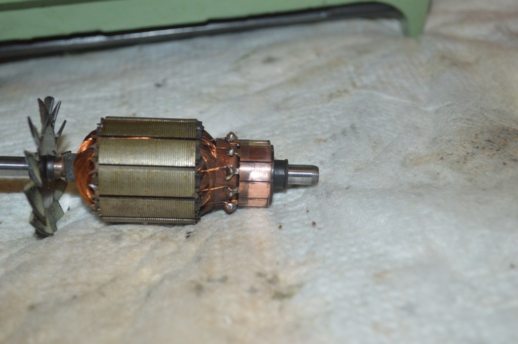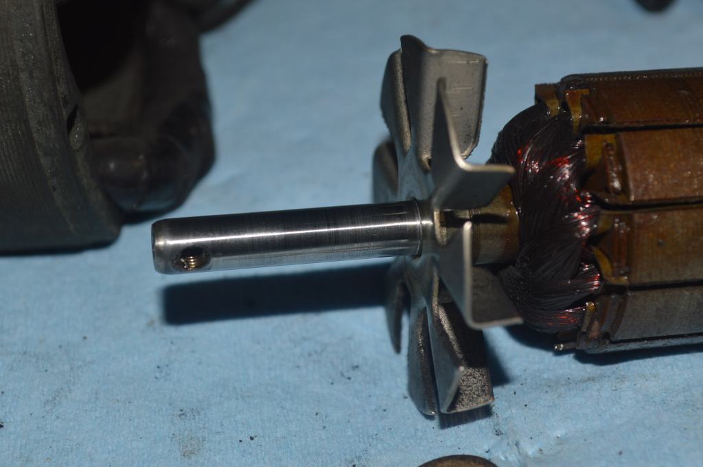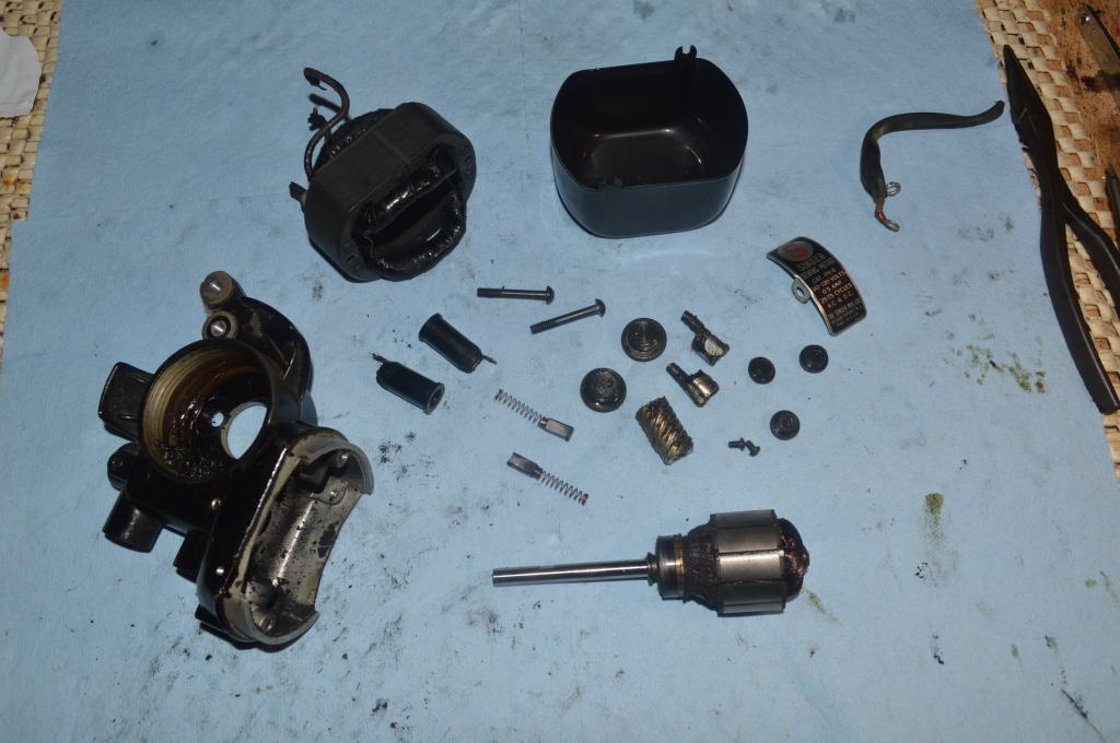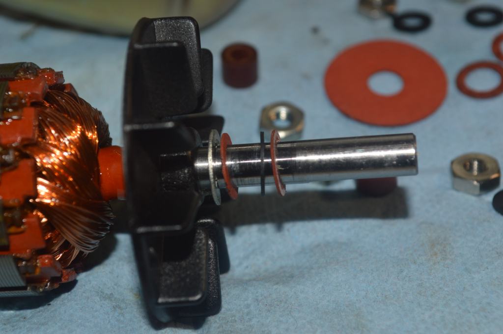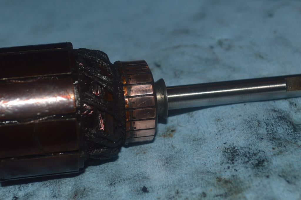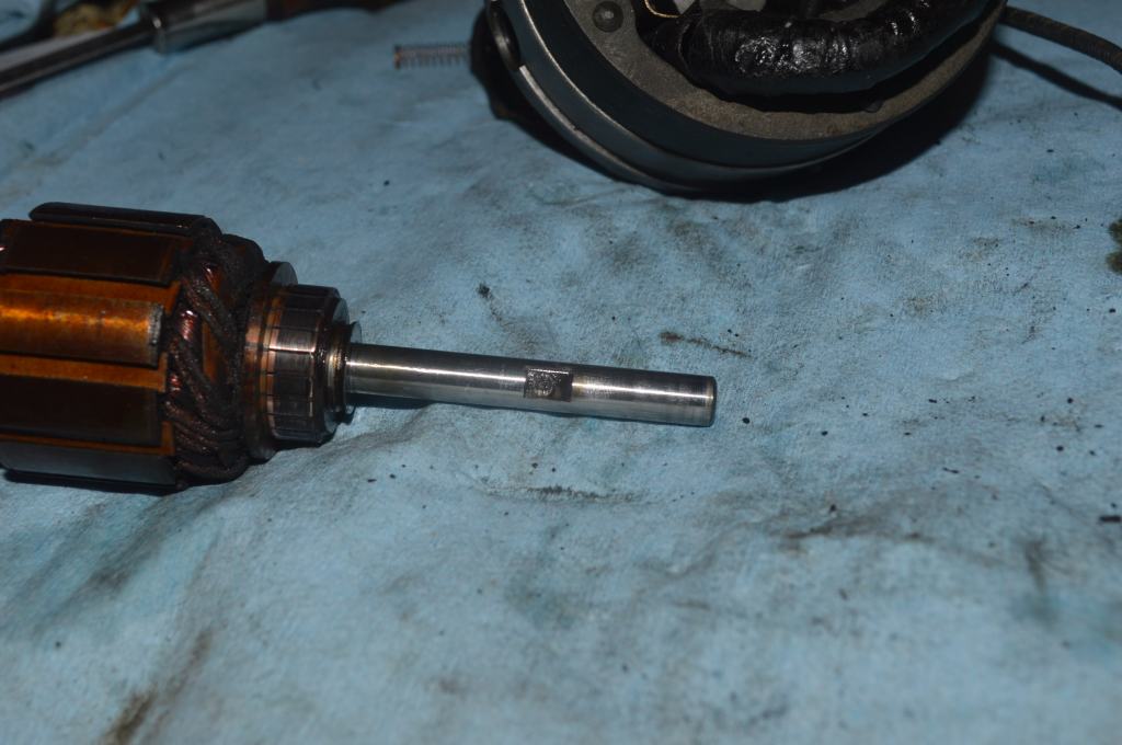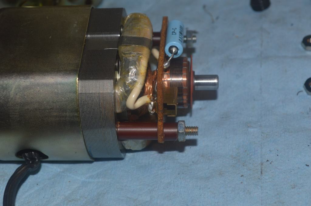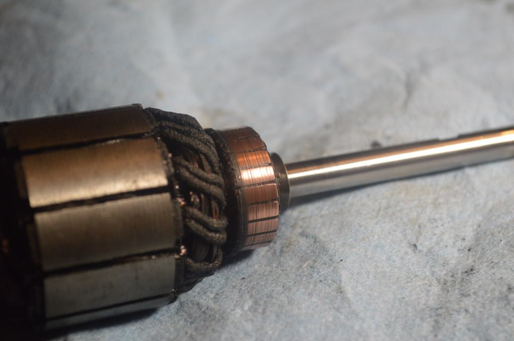 Before reassembly, the brushes are removed and cleaned, the armature and shafts are polished, the motor housings are cleaned on the inside and the oil wicks are recharged. The main wires are attached and soldered to the brush tubes. After reassembly, paint chips on the motor housing are corrected with paint match paint.