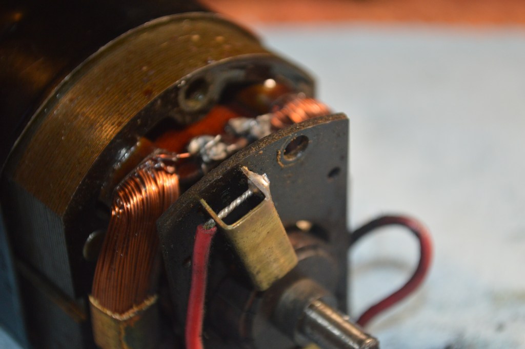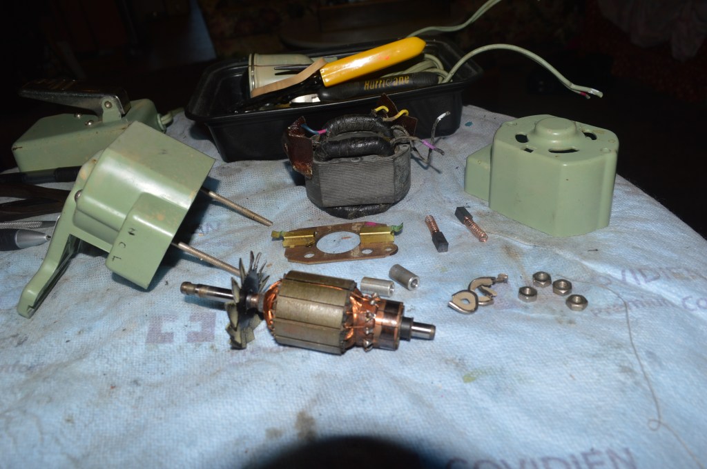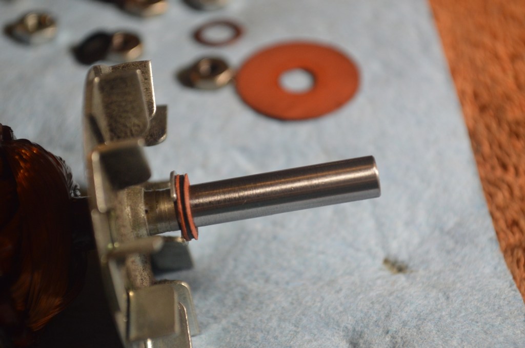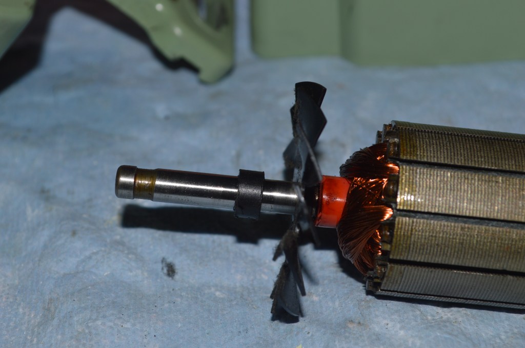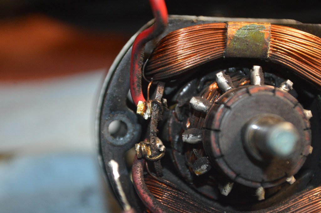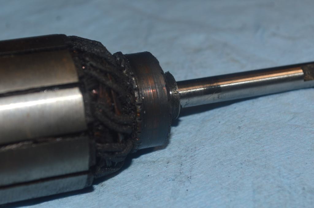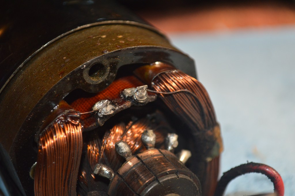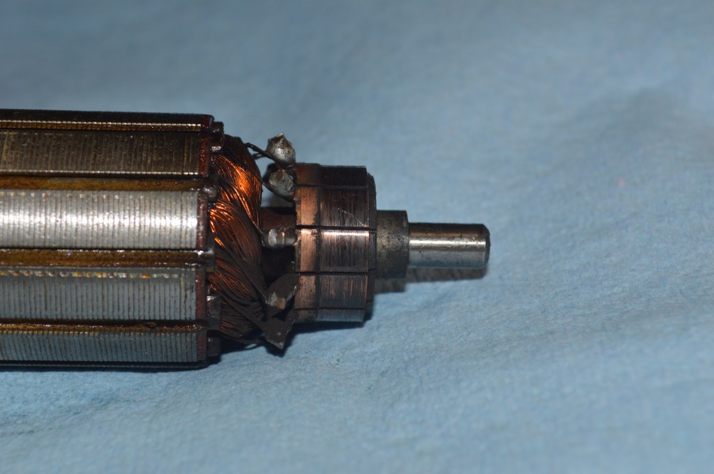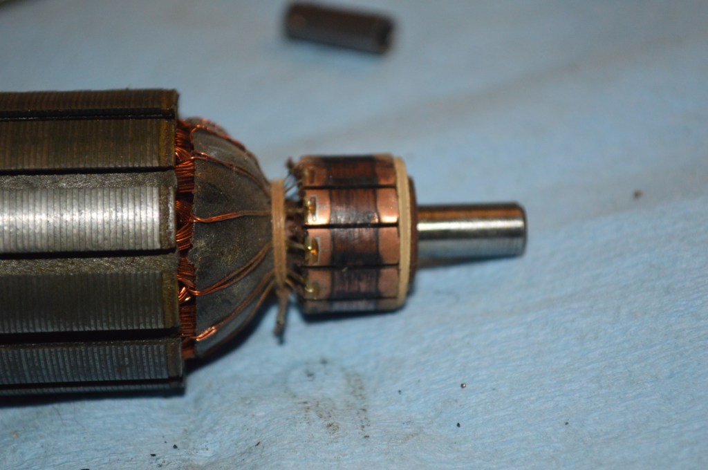 Before reassembly, the brushes are removed and cleaned, the armature and shafts are polished, the motor housings are cleaned on the inside and the oil wicks are recharged. The main wires are attached and soldered to the brush tubes. After reassembly, paint chips on the motor housing are corrected with paint match paint.