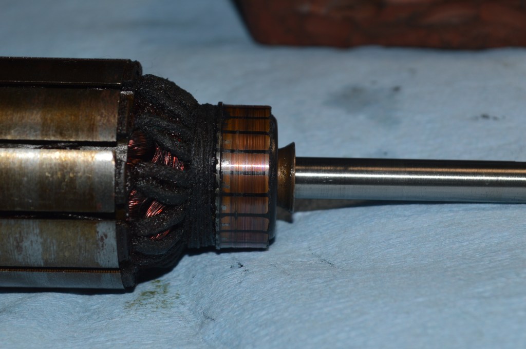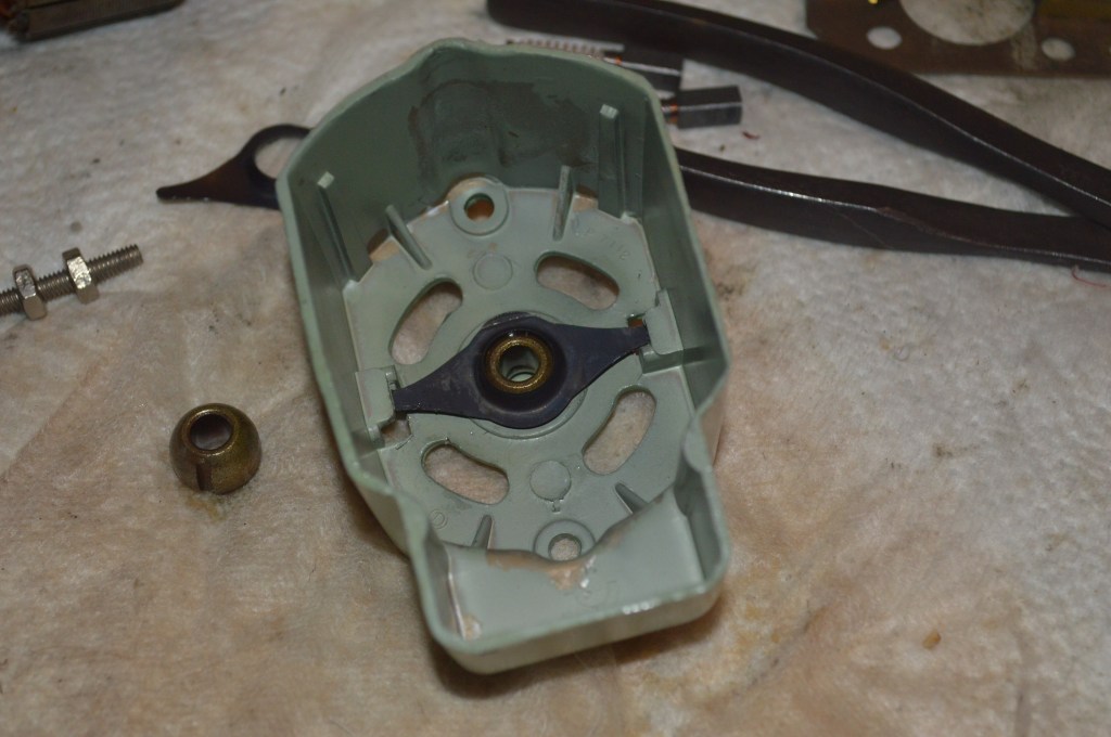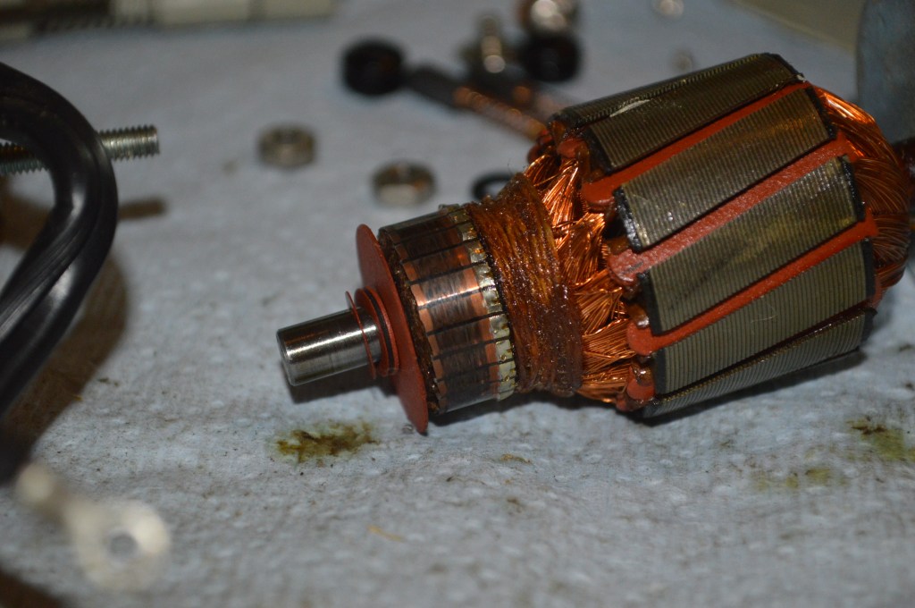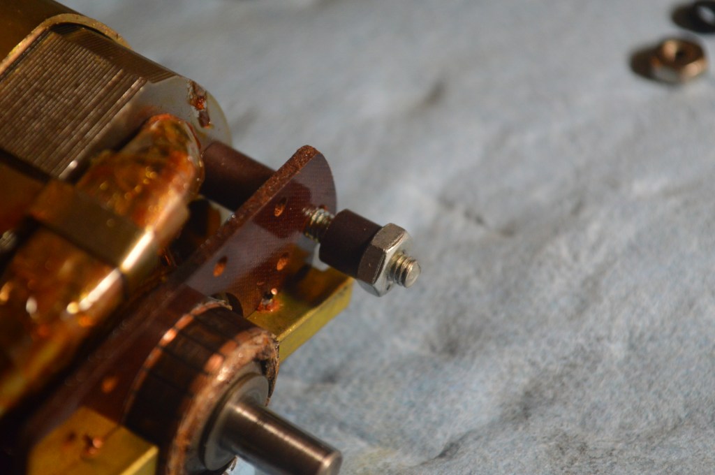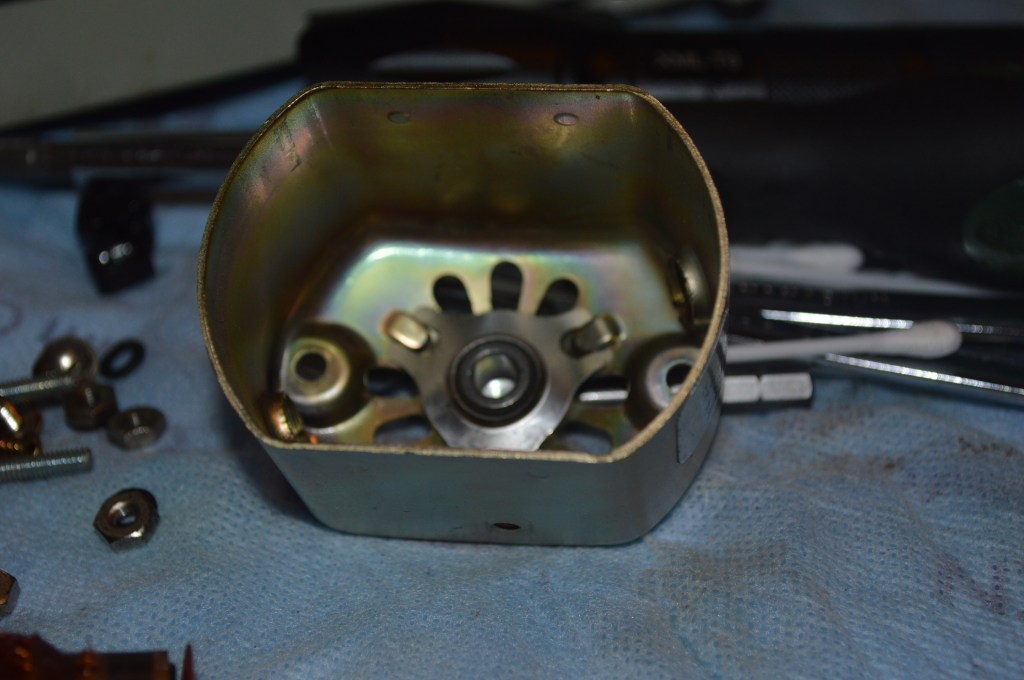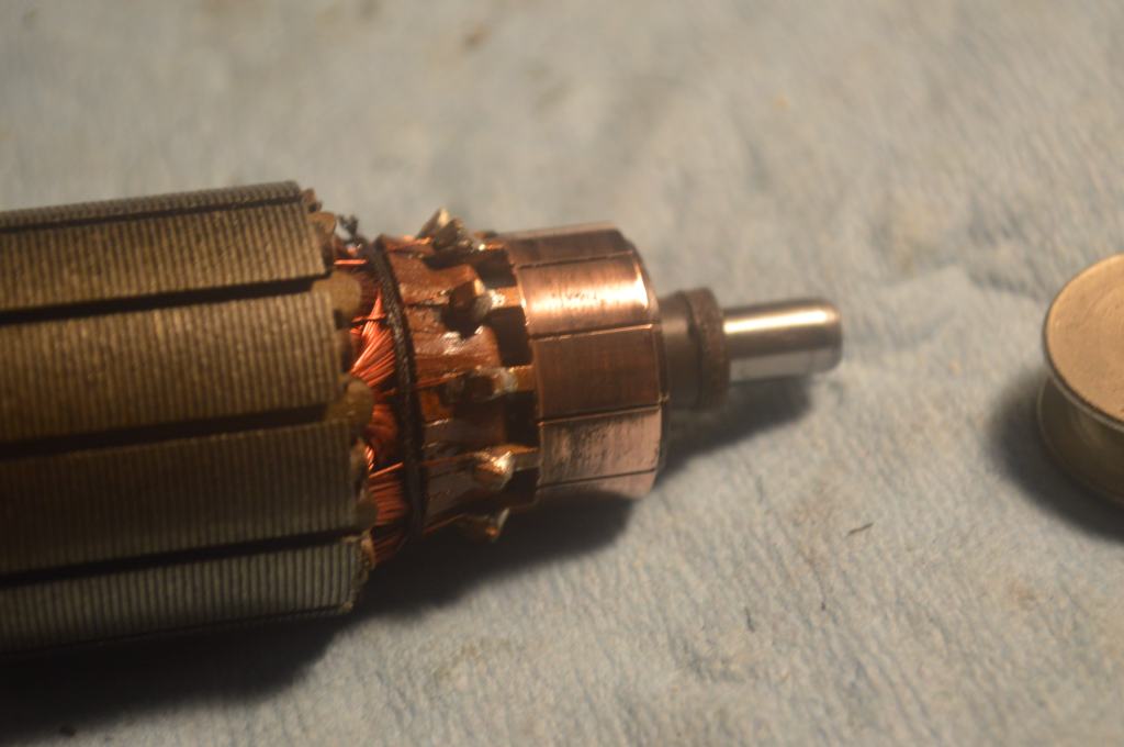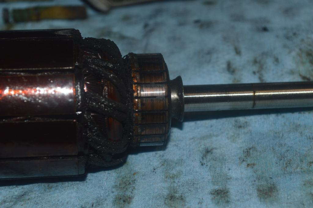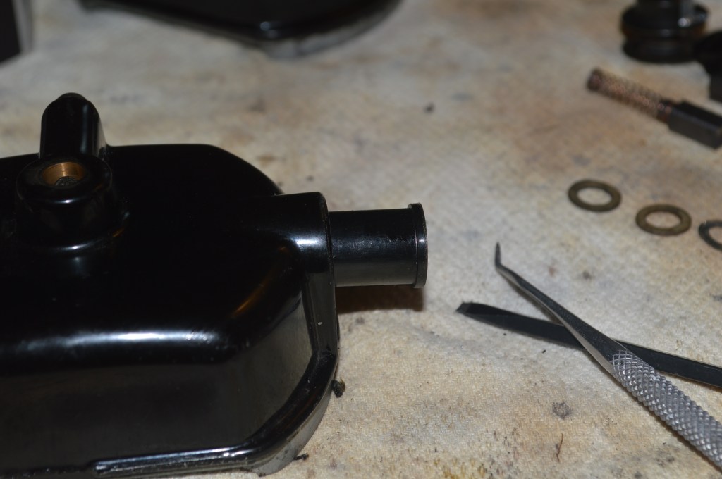 Before reassembly, the brushes are removed and cleaned, the armature and shafts are polished, the motor housings are cleaned on the inside and the oil wicks are recharged. The main wires are attached and soldered to the brush tubes. After reassembly, paint chips on the motor housing are corrected with paint match paint.