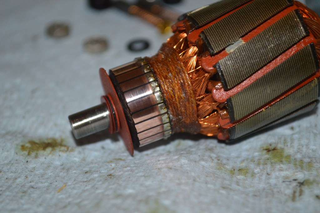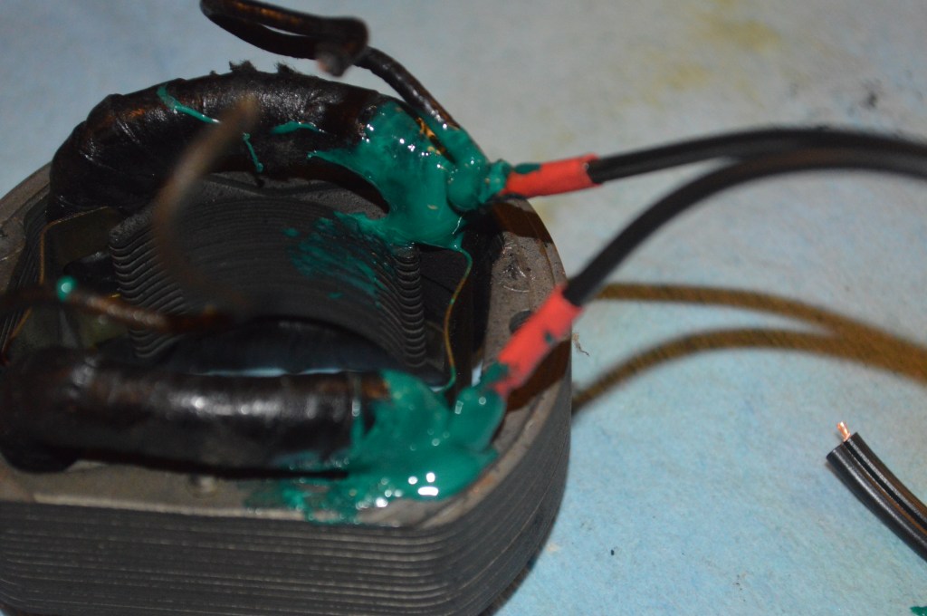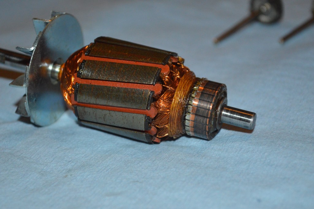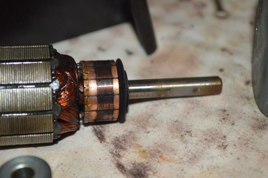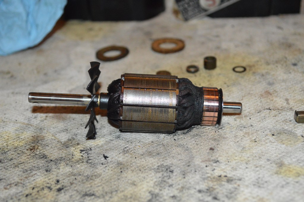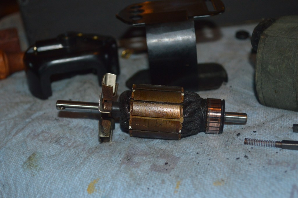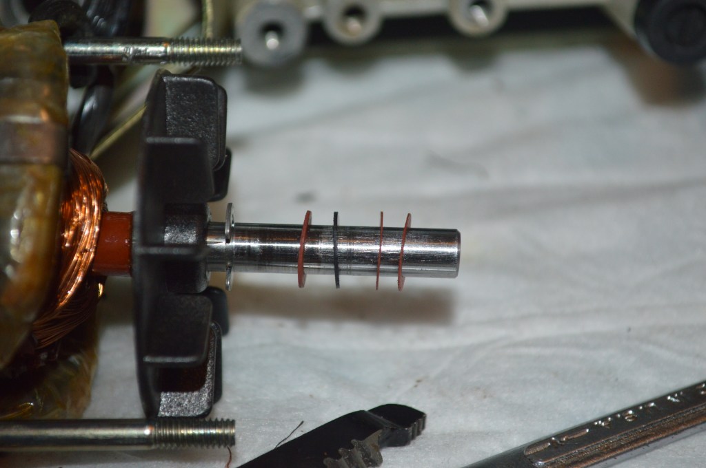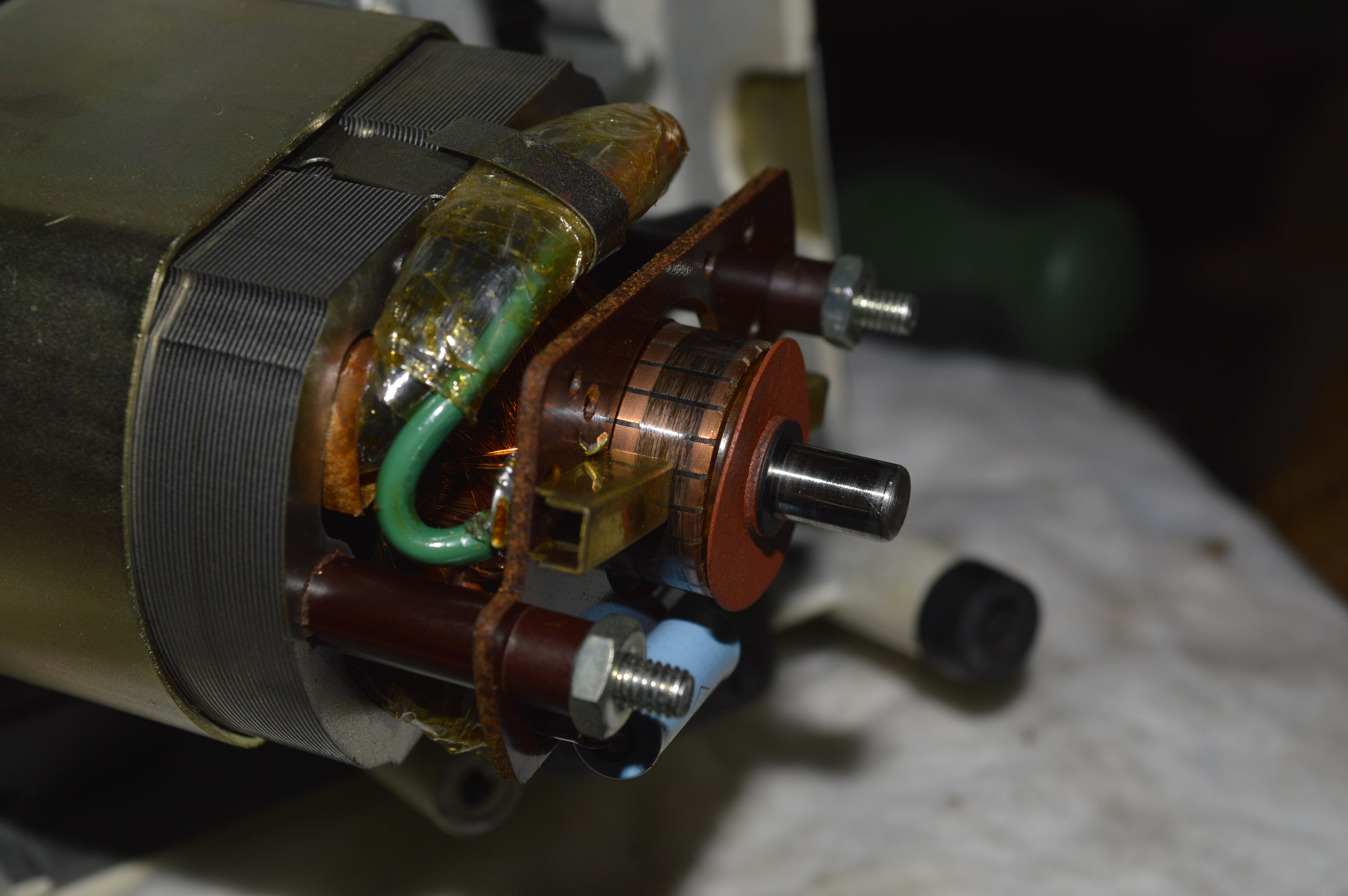 Before reassembly, the brushes are removed and cleaned, the armature and shafts are polished, the motor housings are cleaned on the inside and the oil wicks are recharged. The main wires are attached and soldered to the brush tubes. After reassembly, paint chips on the motor housing are corrected with paint match paint.