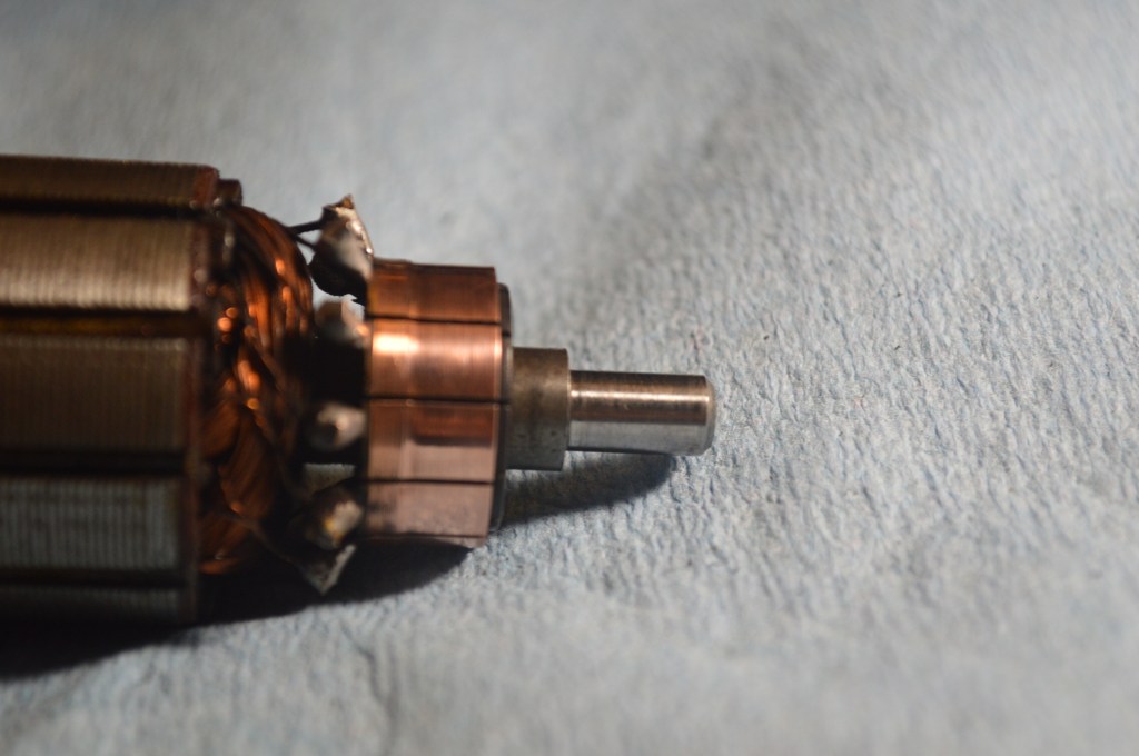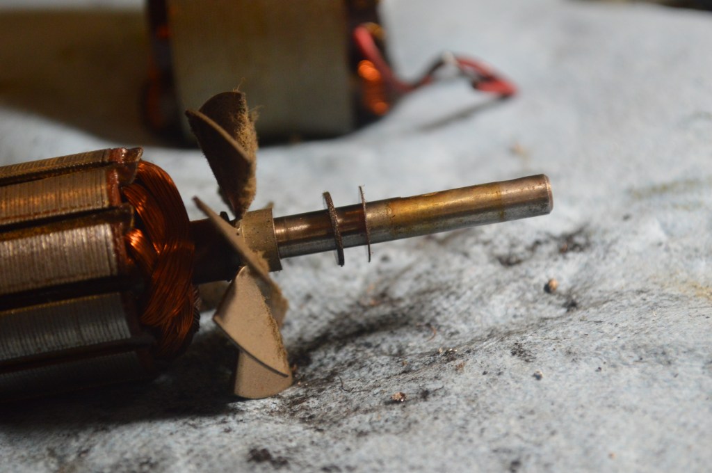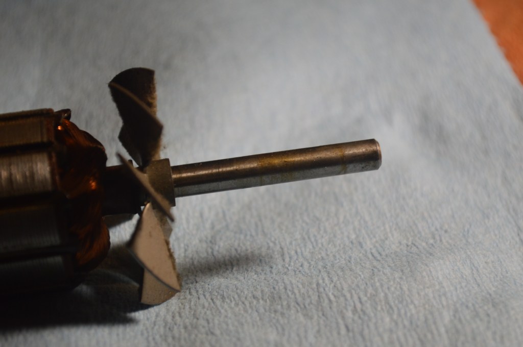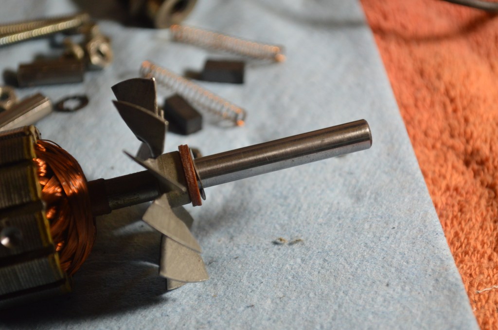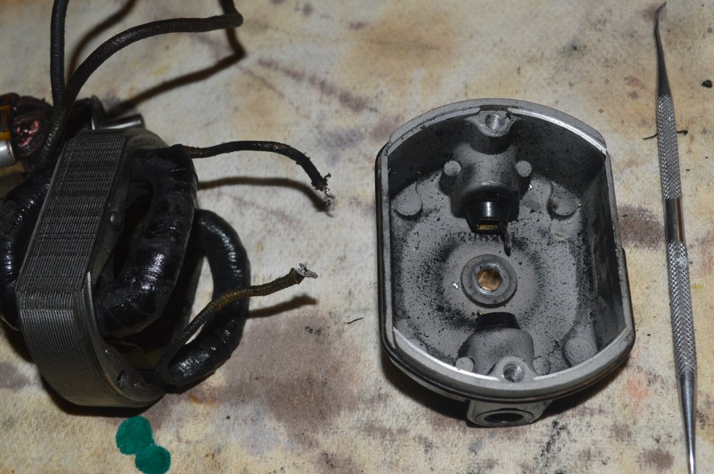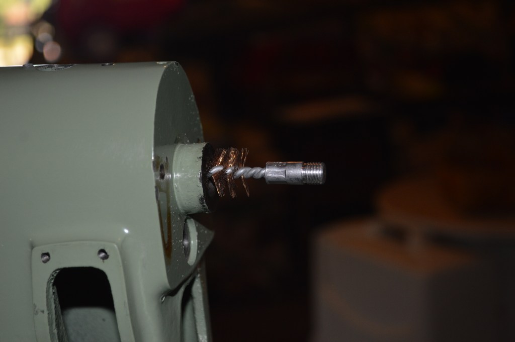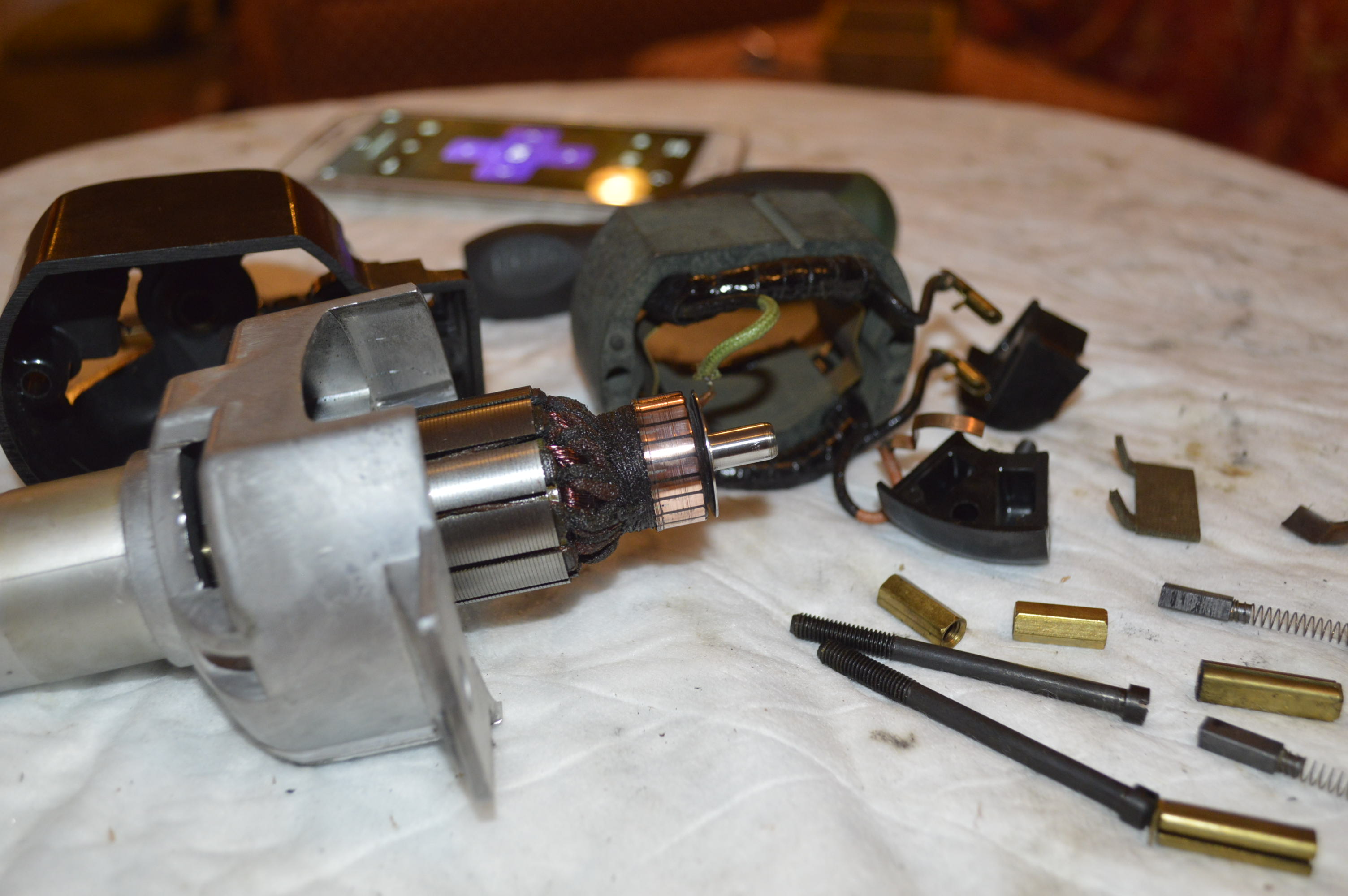 Before reassembly, the brushes are removed and cleaned, the armature and shafts are polished, the motor housings are cleaned on the inside and the oil wicks are recharged. The main wires are attached and soldered to the brush tubes. After reassembly, paint chips on the motor housing are corrected with paint match paint.