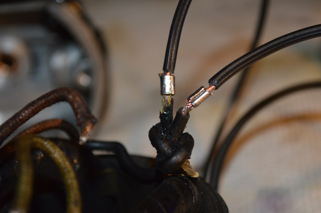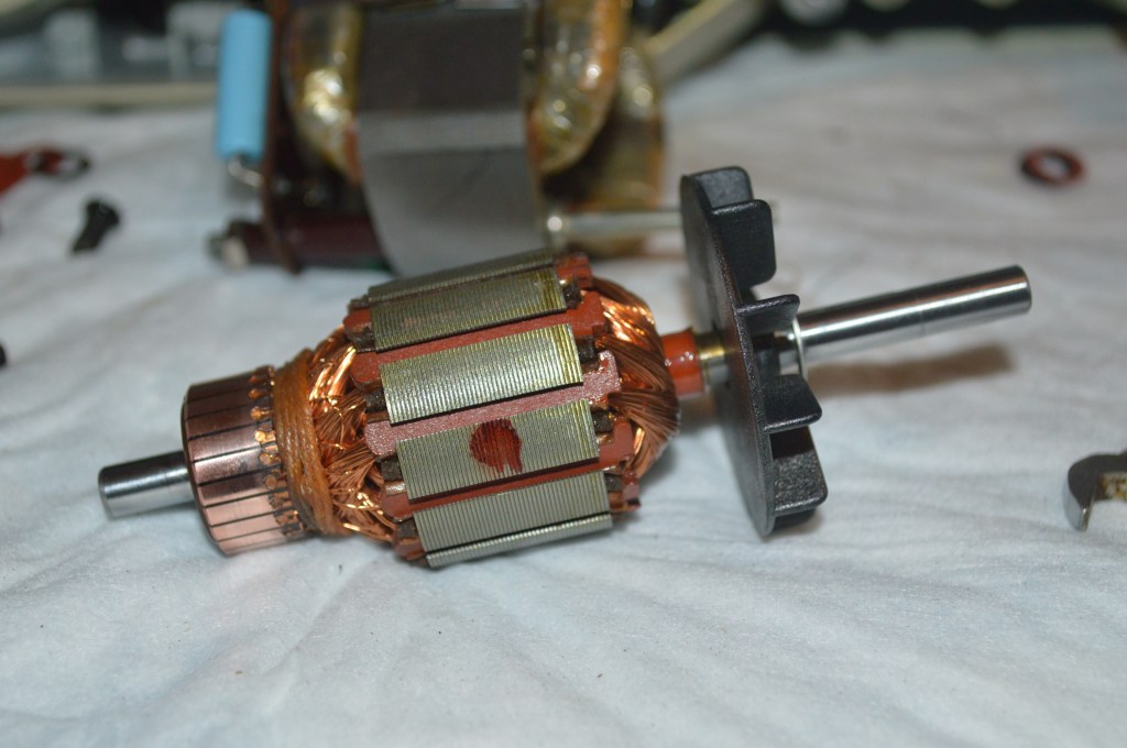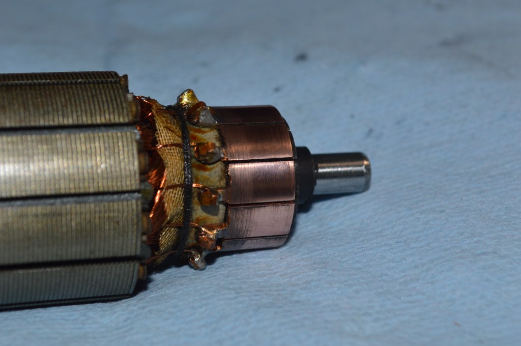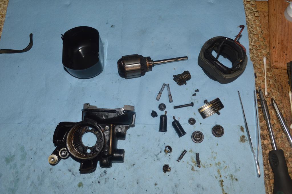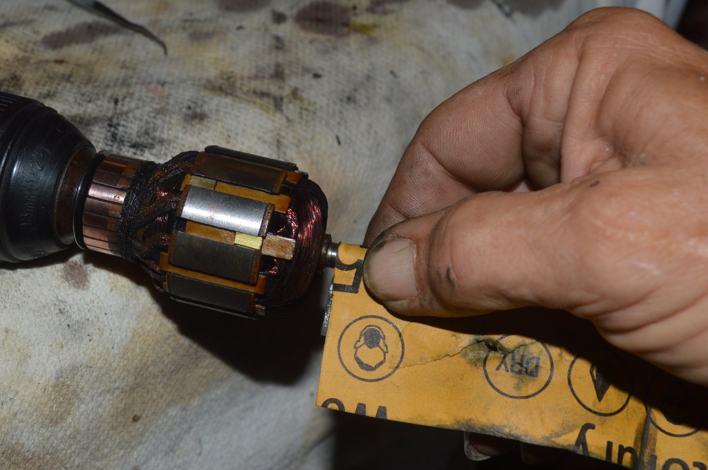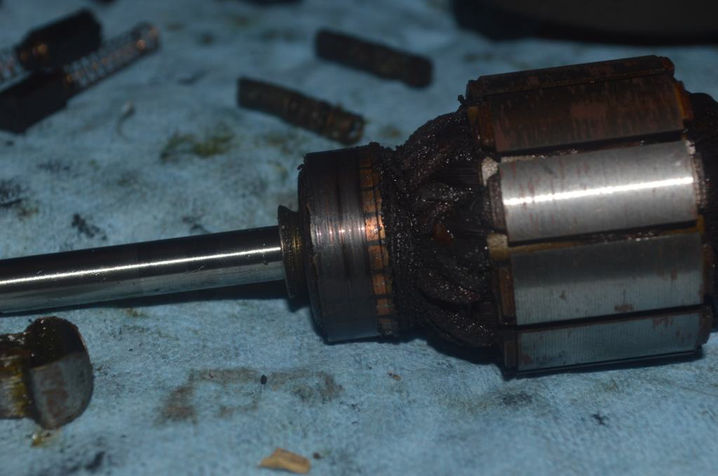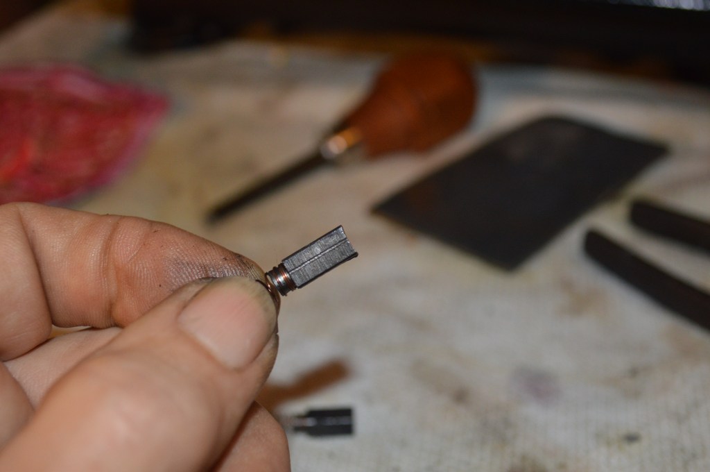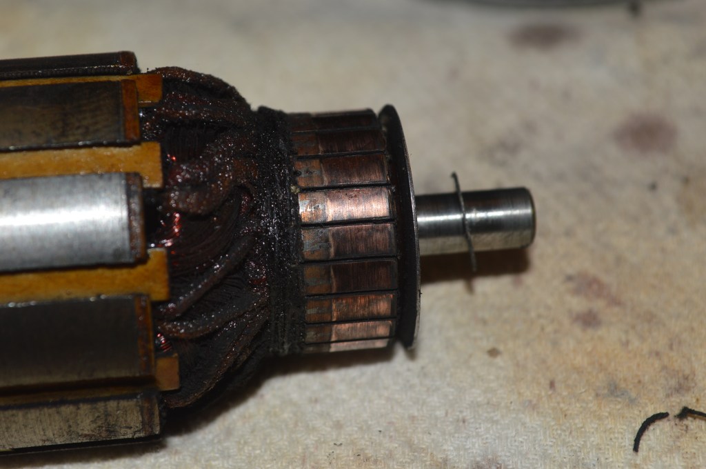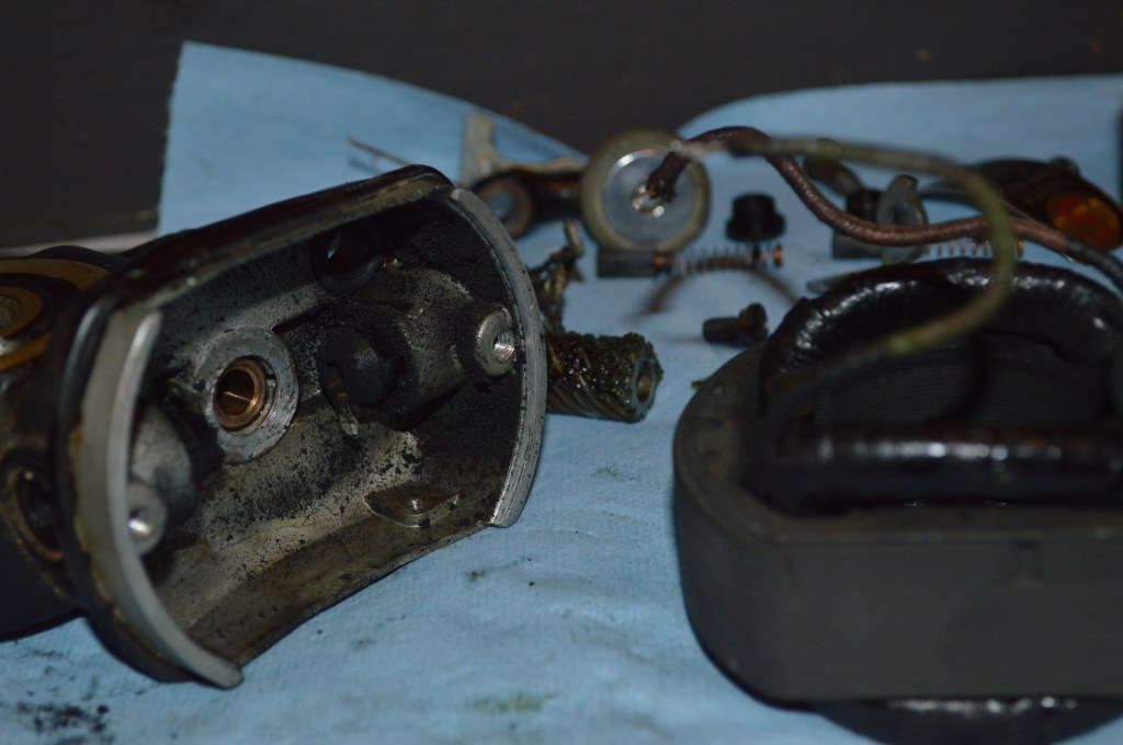 Before reassembly, the brushes are removed and cleaned, the armature and shafts are polished, the motor housings are cleaned on the inside and the oil wicks are recharged. The main wires are attached and soldered to the brush tubes. After reassembly, paint chips on the motor housing are corrected with paint match paint.
