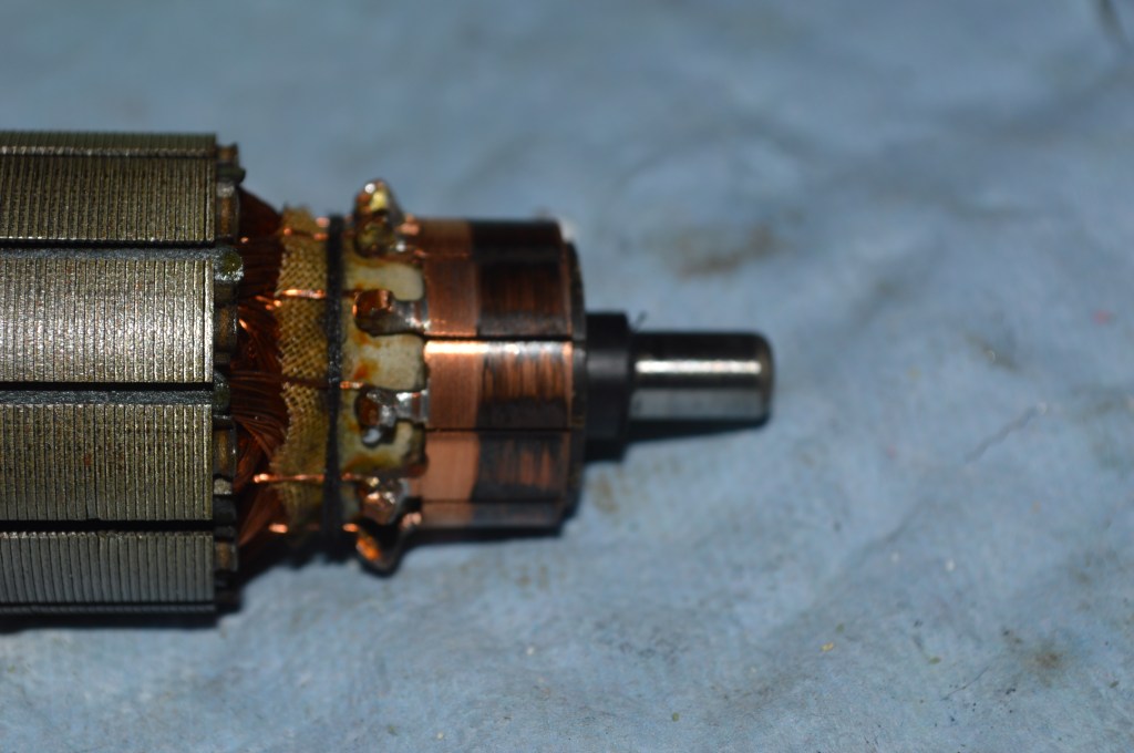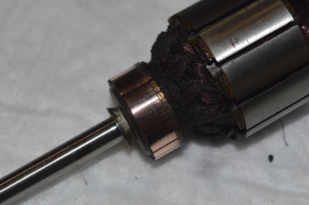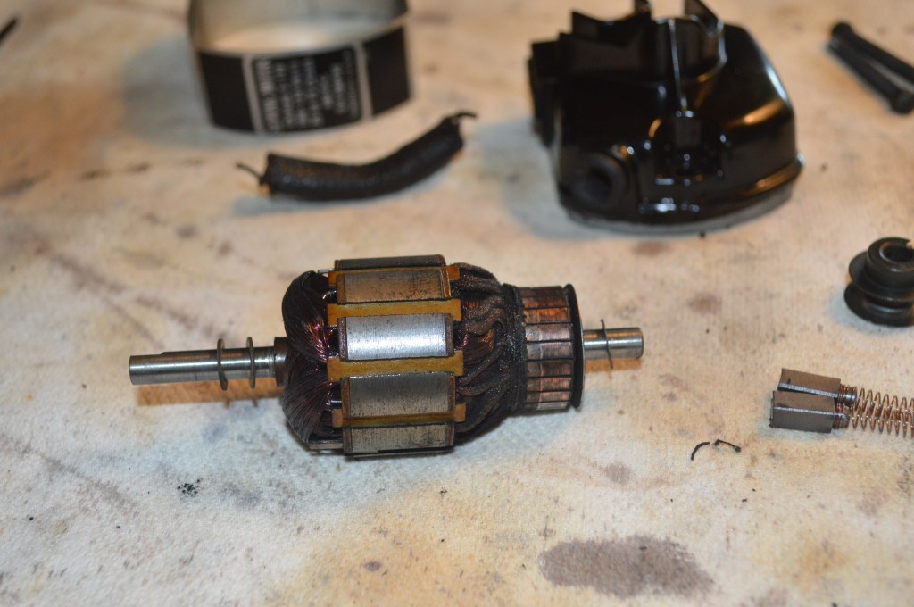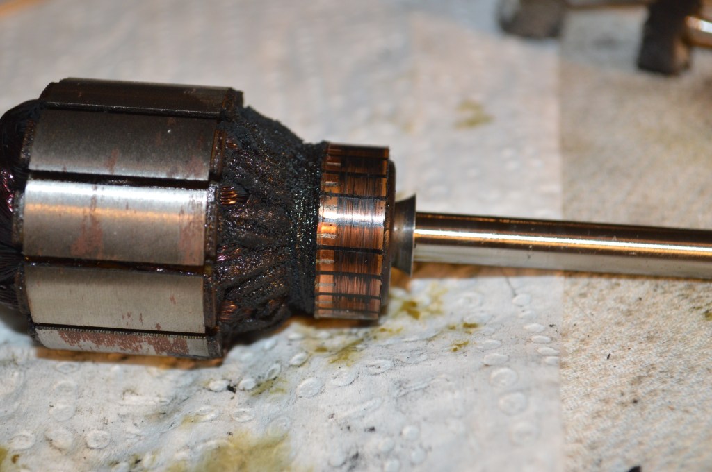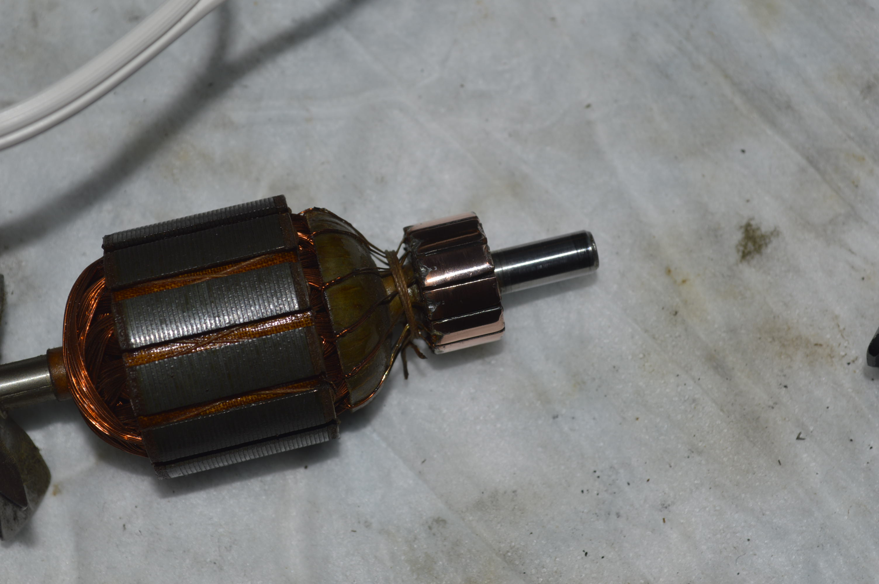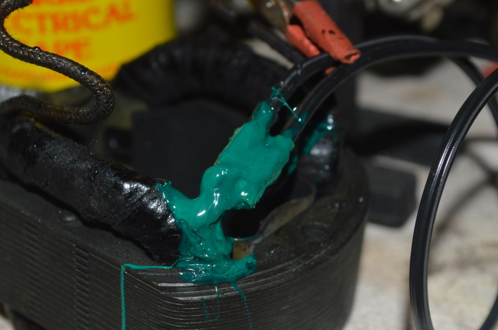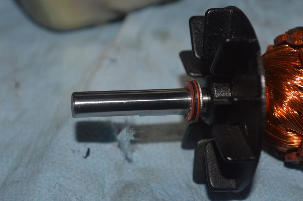 Before reassembly, the brushes are removed and cleaned, the armature and shafts are polished, the motor housings are cleaned on the inside and the oil wicks are recharged. The main wires are attached and soldered to the brush tubes. After reassembly, paint chips on the motor housing are corrected with paint match paint.