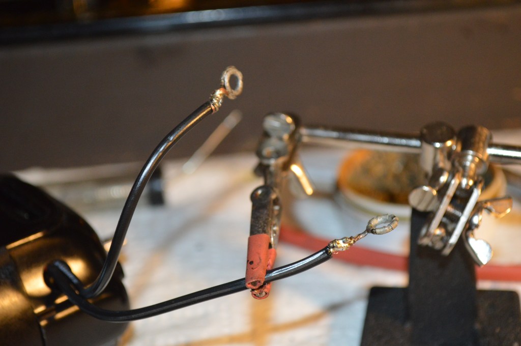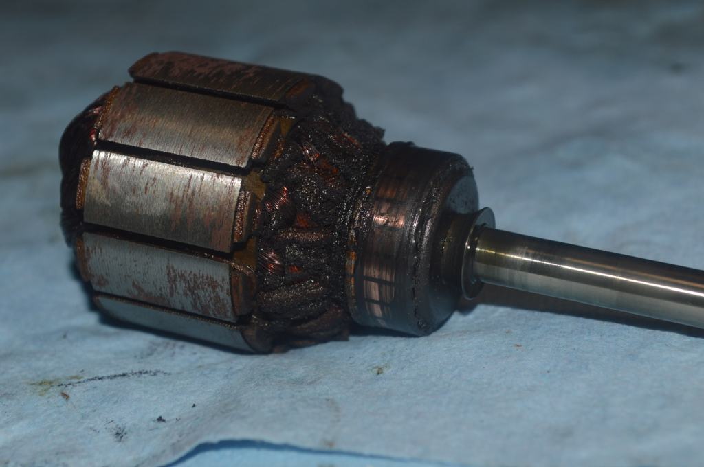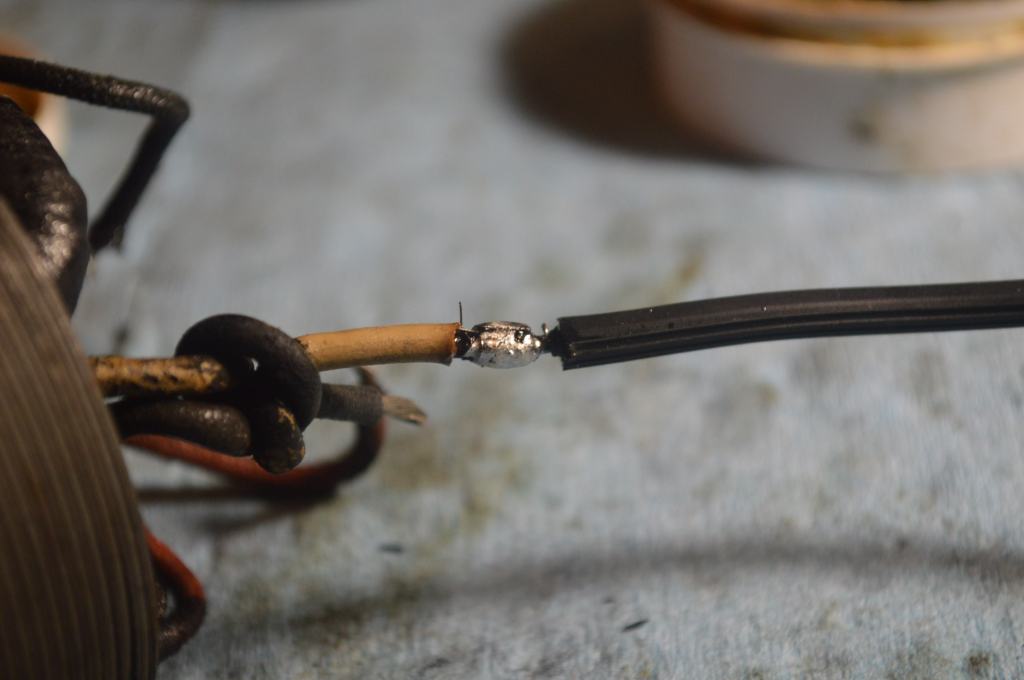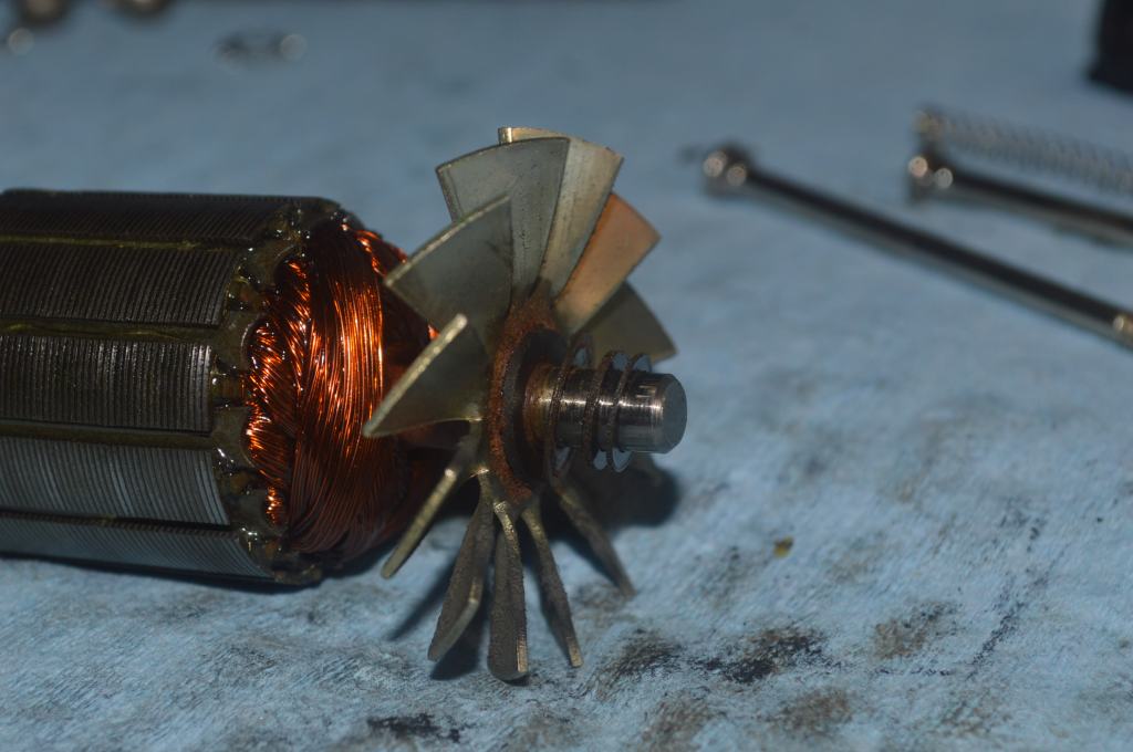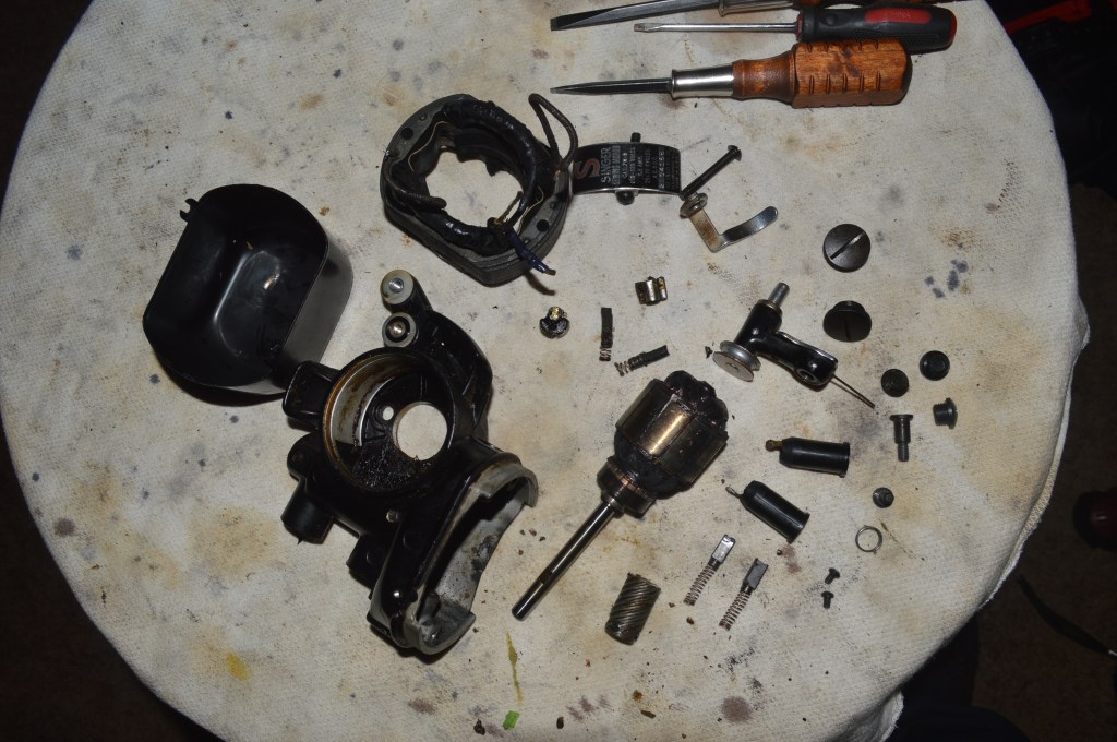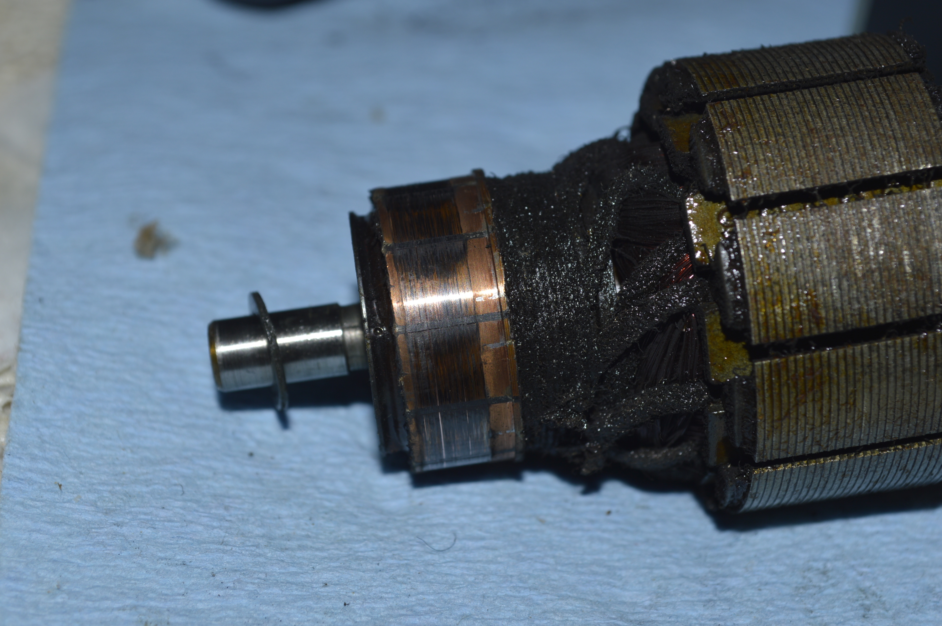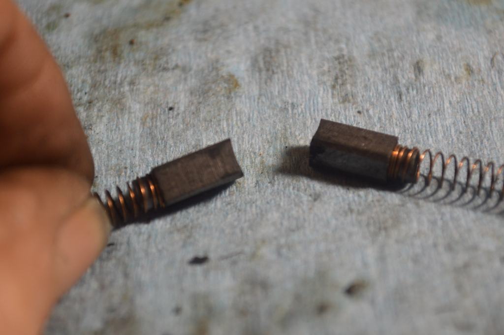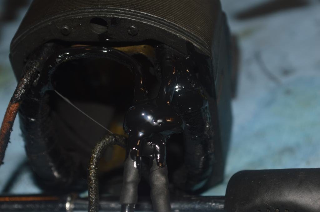 Before reassembly, the brushes are removed and cleaned, the armature and shafts are polished, the motor housings are cleaned on the inside and the oil wicks are recharged. The main wires are attached and soldered to the brush tubes. After reassembly, paint chips on the motor housing are corrected with paint match paint.