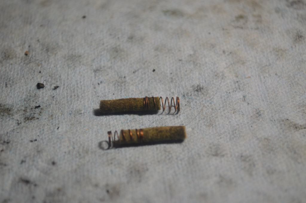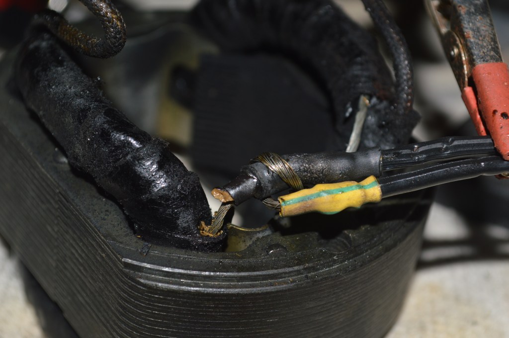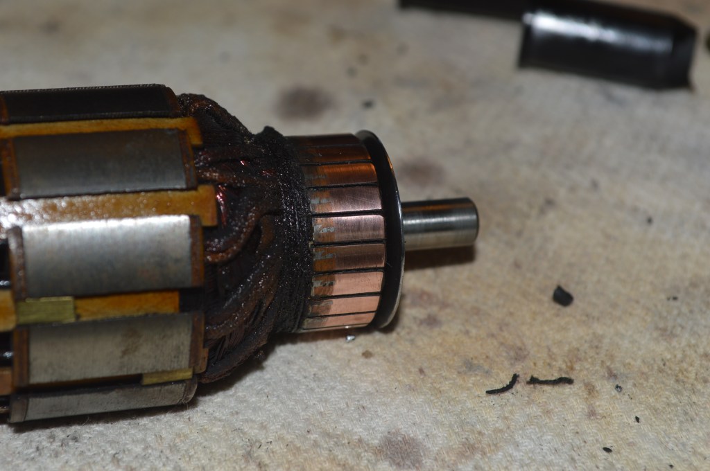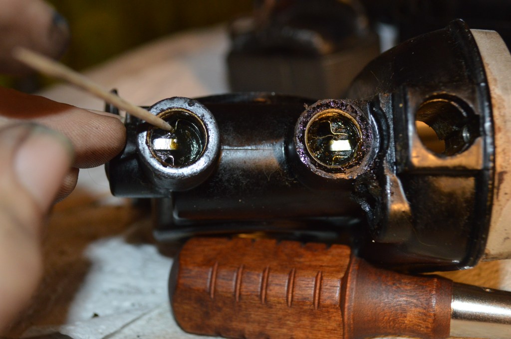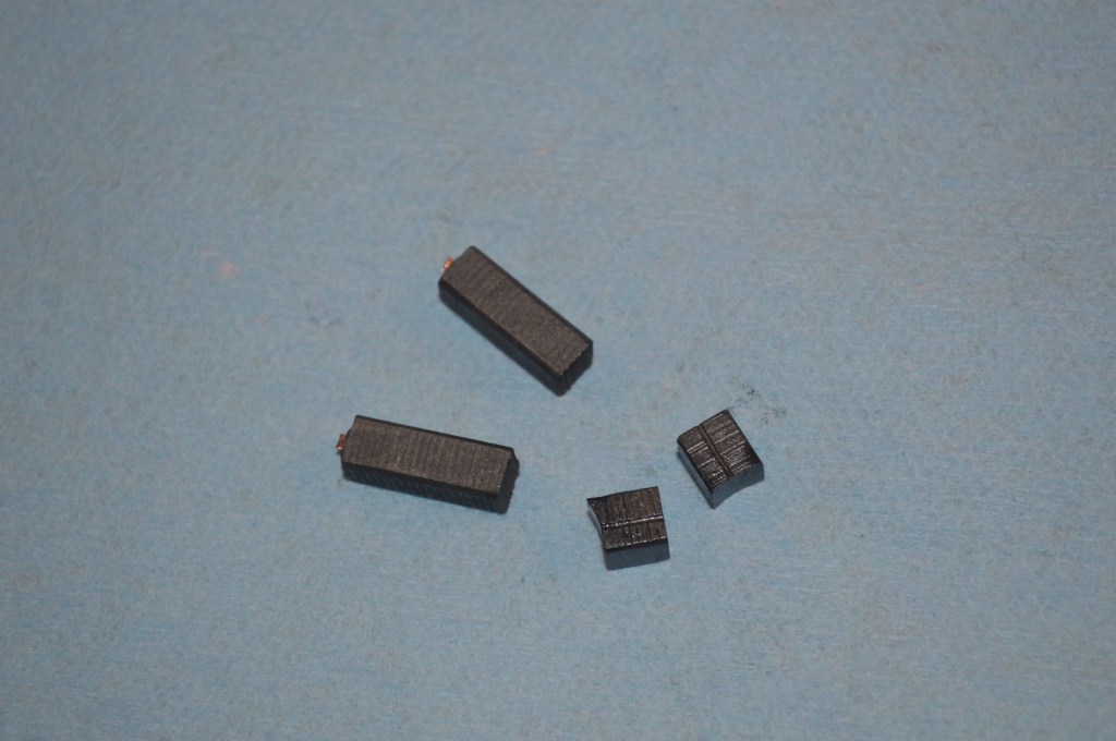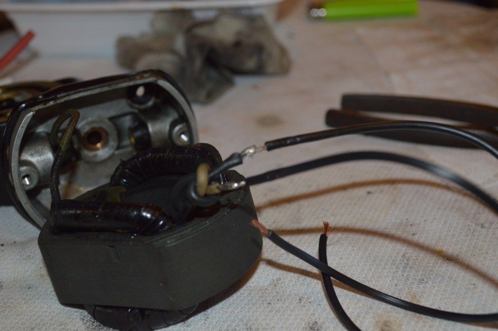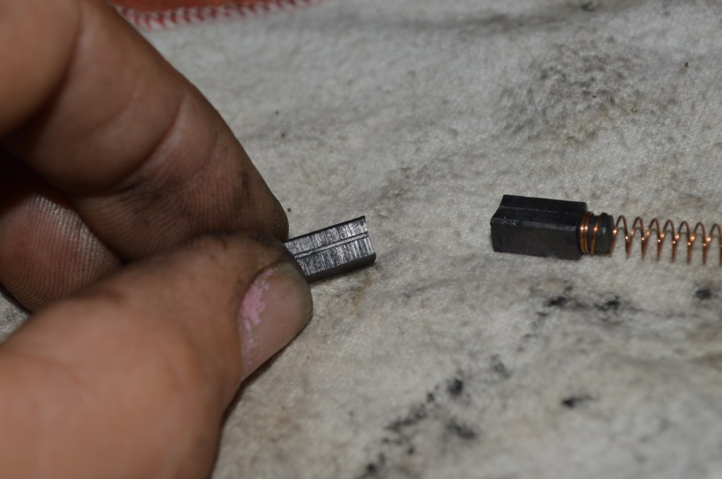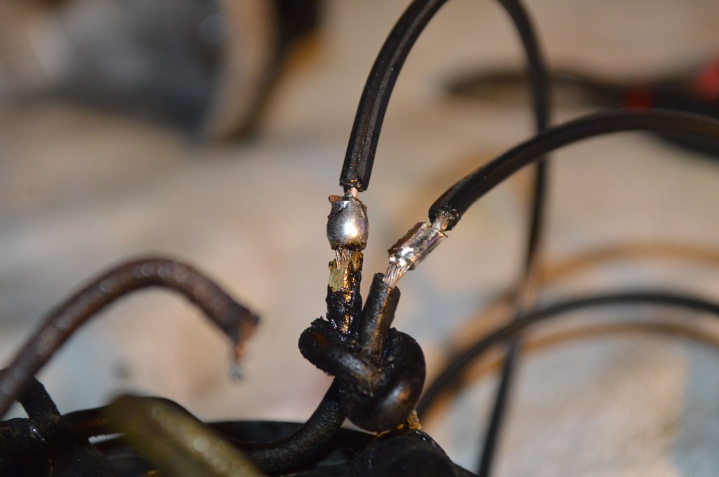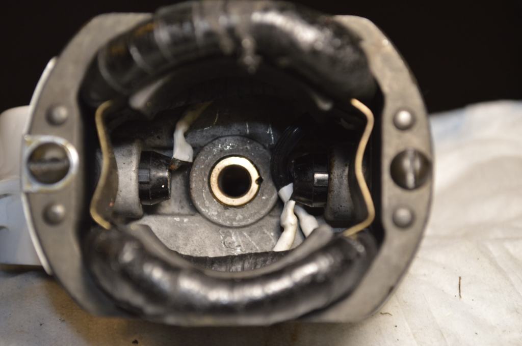 Before reassembly, the brushes are removed and cleaned, the armature and shafts are polished, the motor housings are cleaned on the inside and the oil wicks are recharged. The main wires are attached and soldered to the brush tubes. After reassembly, paint chips on the motor housing are corrected with paint match paint.