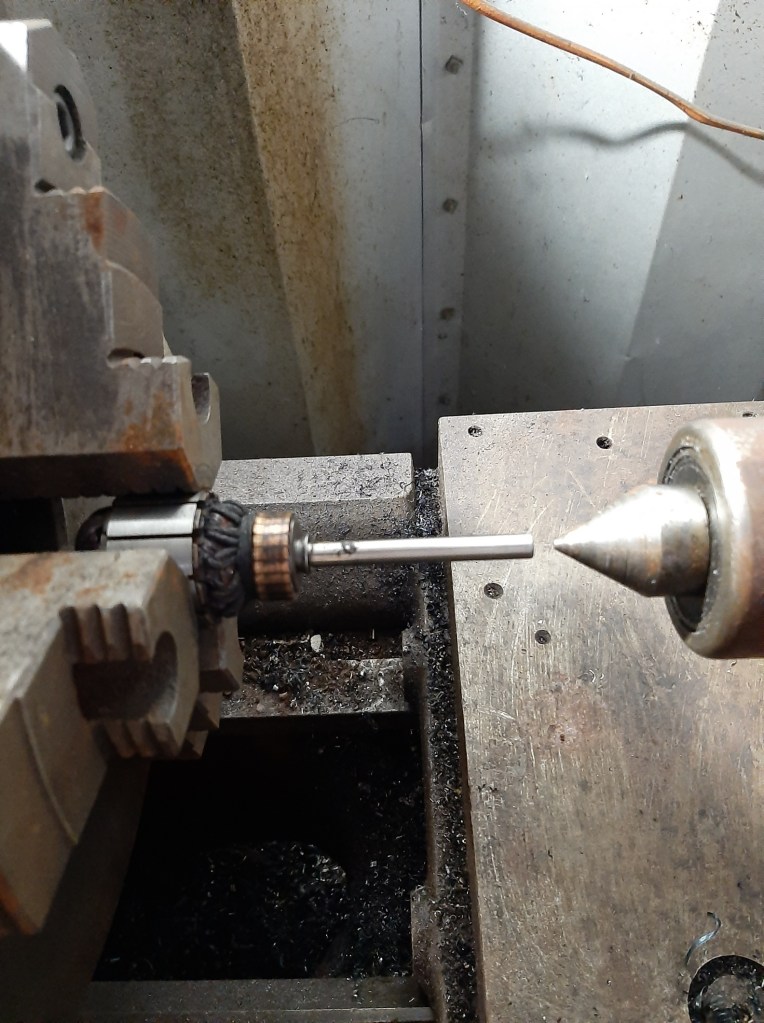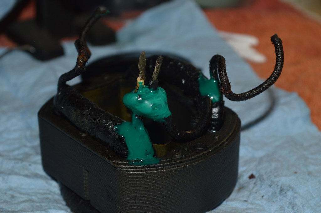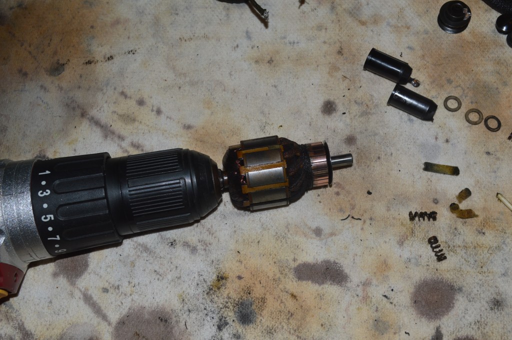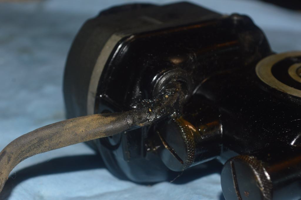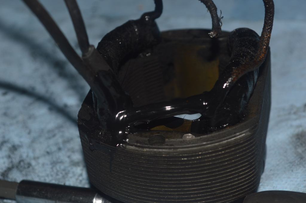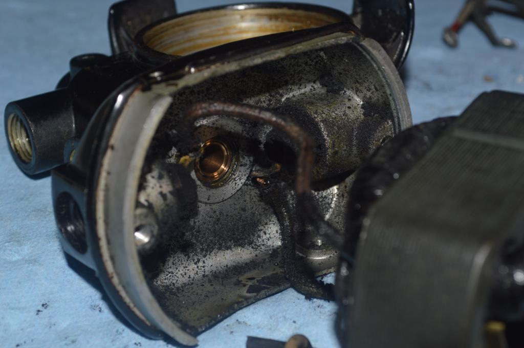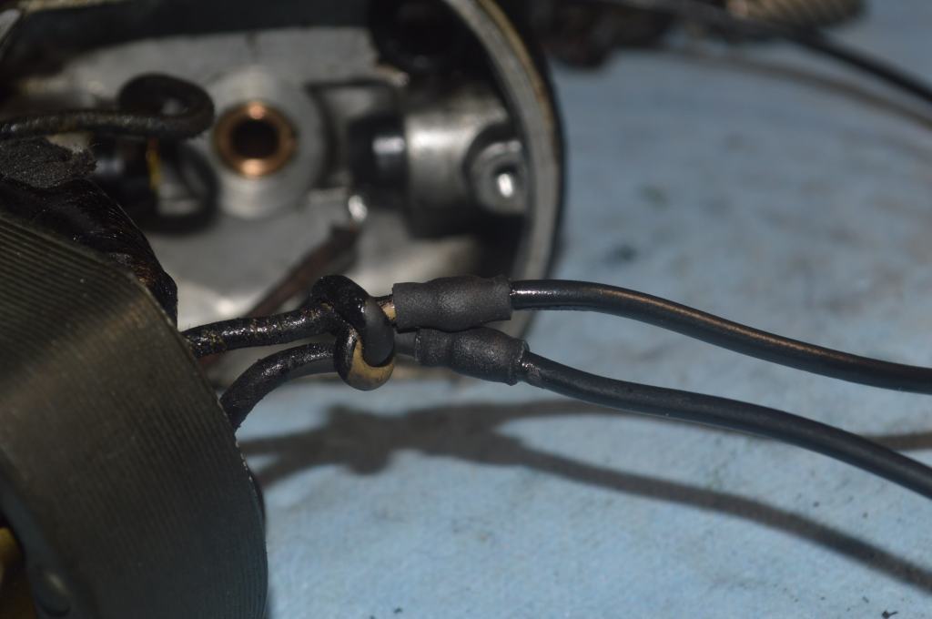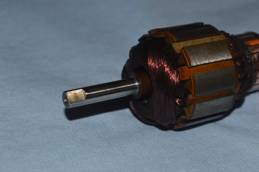 Before reassembly, the brushes are removed and cleaned, the armature and shafts are polished, the motor housings are cleaned on the inside and the oil wicks are recharged. The main wires are attached and soldered to the brush tubes. After reassembly, paint chips on the motor housing are corrected with paint match paint.