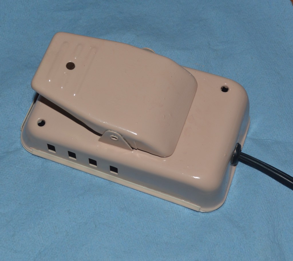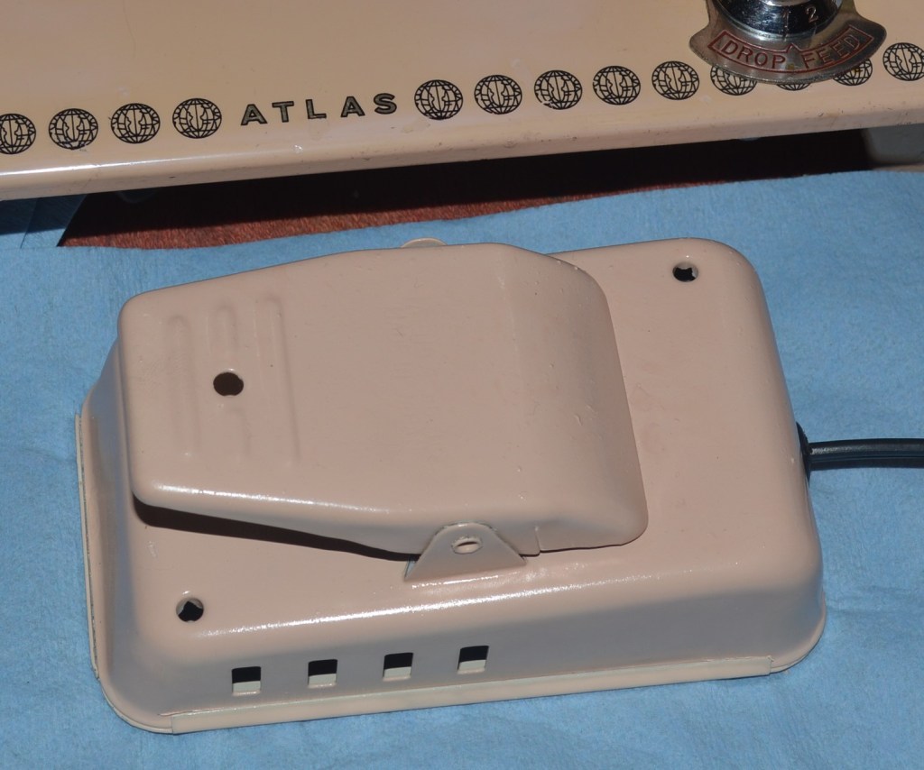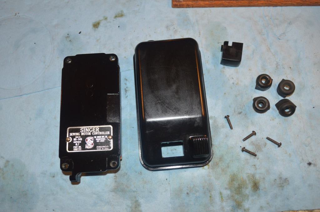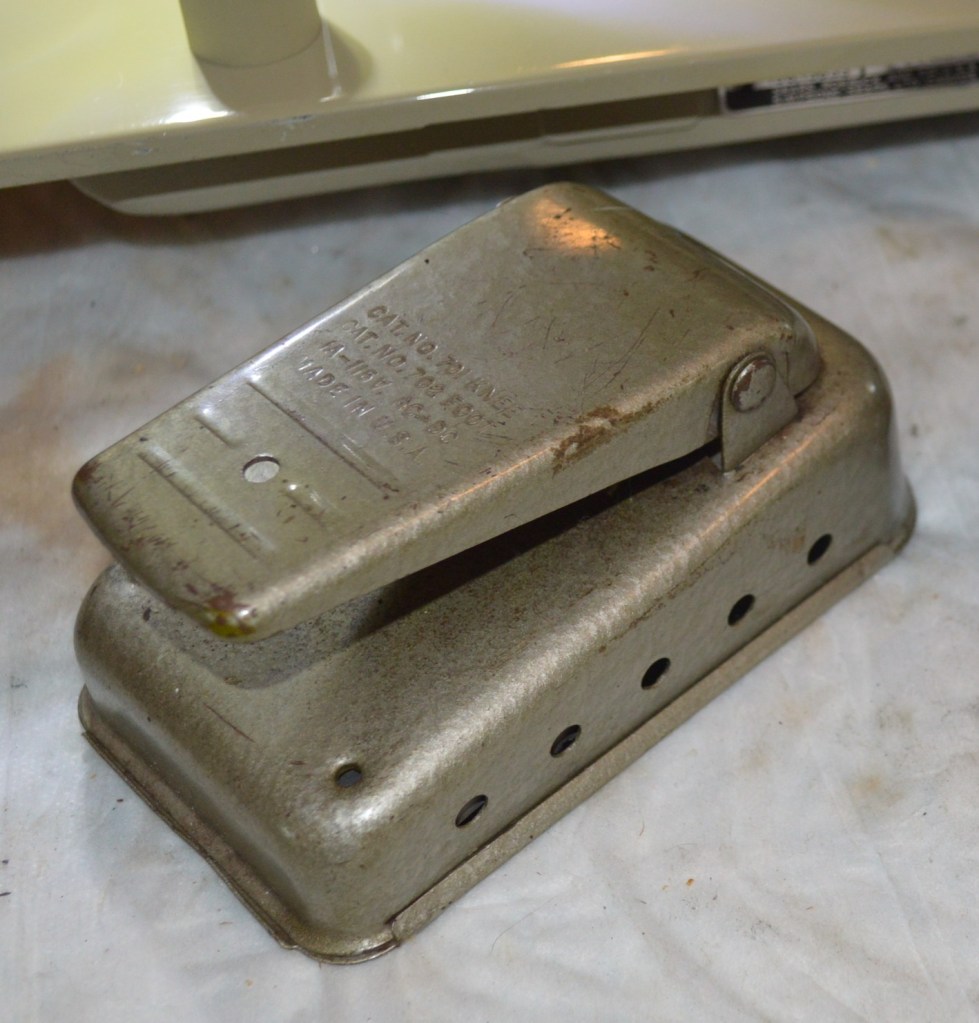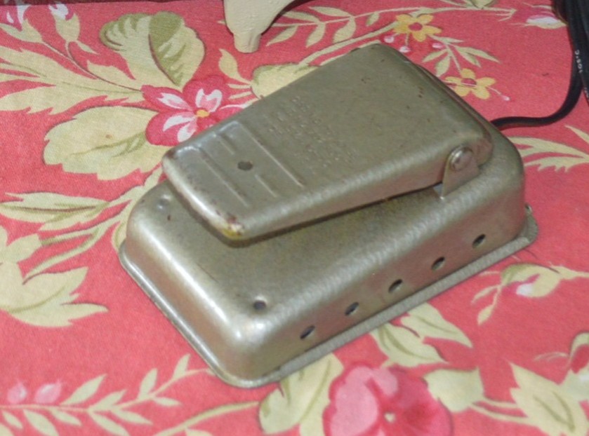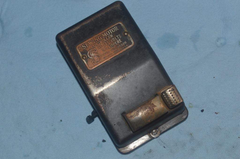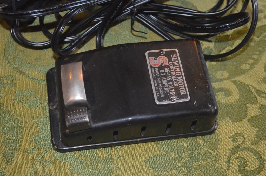 Notice the name on the controller? Its a vintage Kenmore foot controller. The more I use these, the better I like them. Thet are just the right size, have a great heft and feel, operate smoothly, and have very good motor speed control. They are a carbon pile controller and they run much cooler than resistance style foot controllers (the type of controller the machine came with).