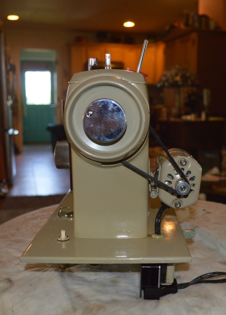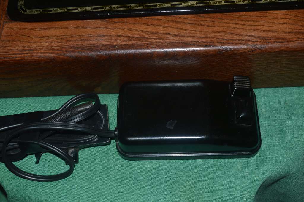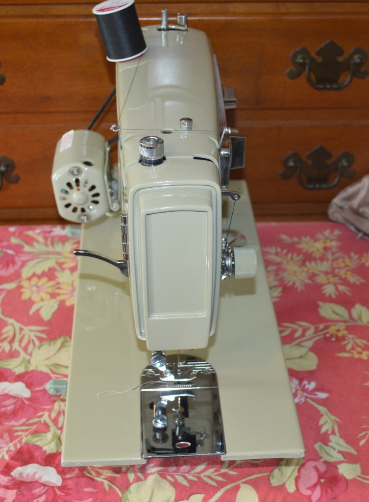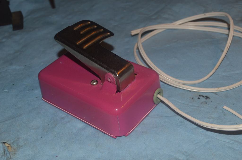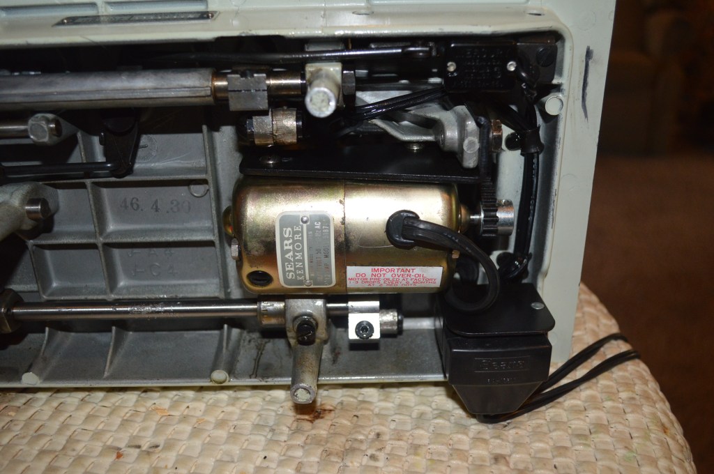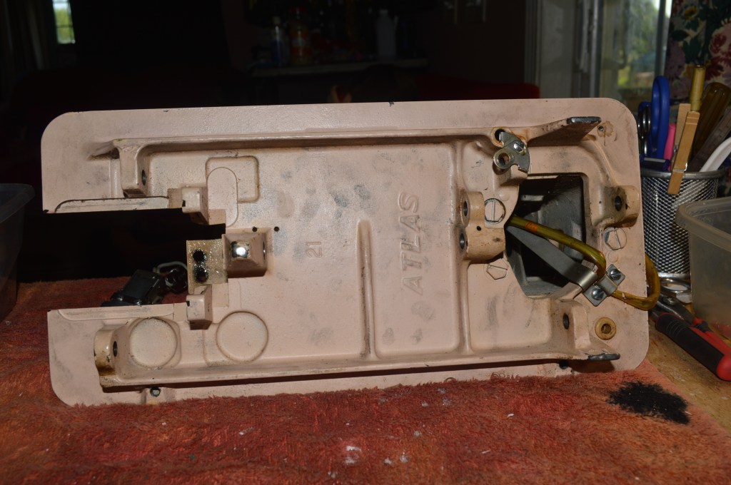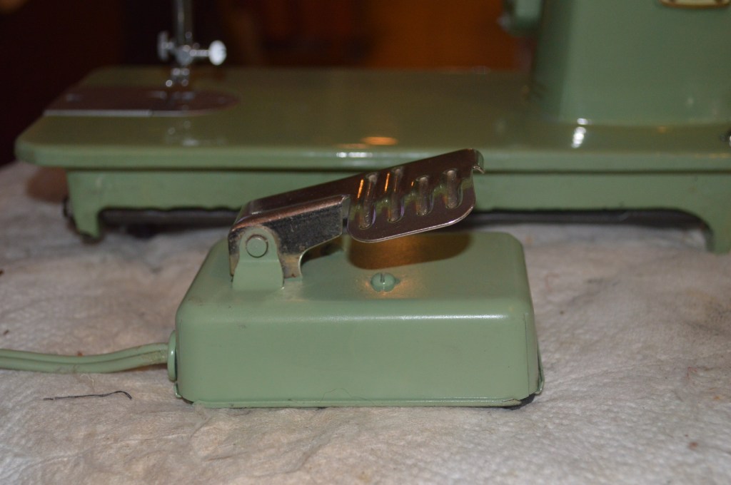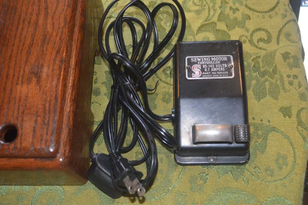 Notice the name on the controller? Its a vintage Kenmore foot controller. The more I use these, the better I like them. Thet are just the right size, have a great heft and feel, operate smoothly, and have very good motor speed control. They are a carbon pile controller and they run much cooler than resistance style foot controllers (the type of controller the machine came with).