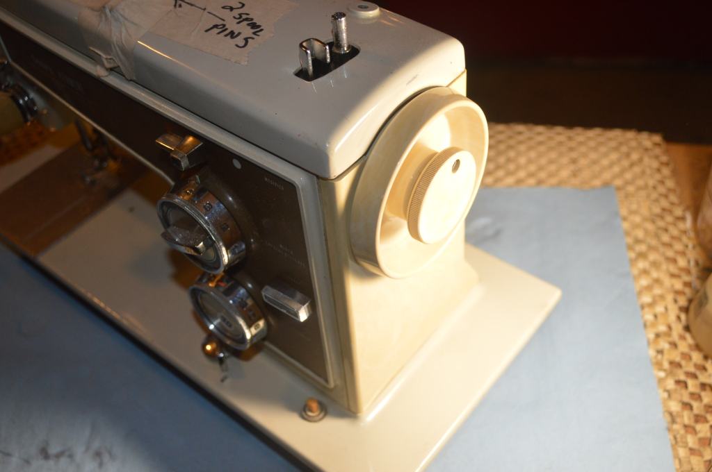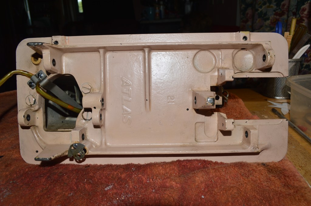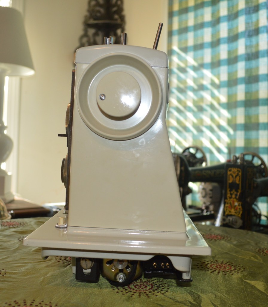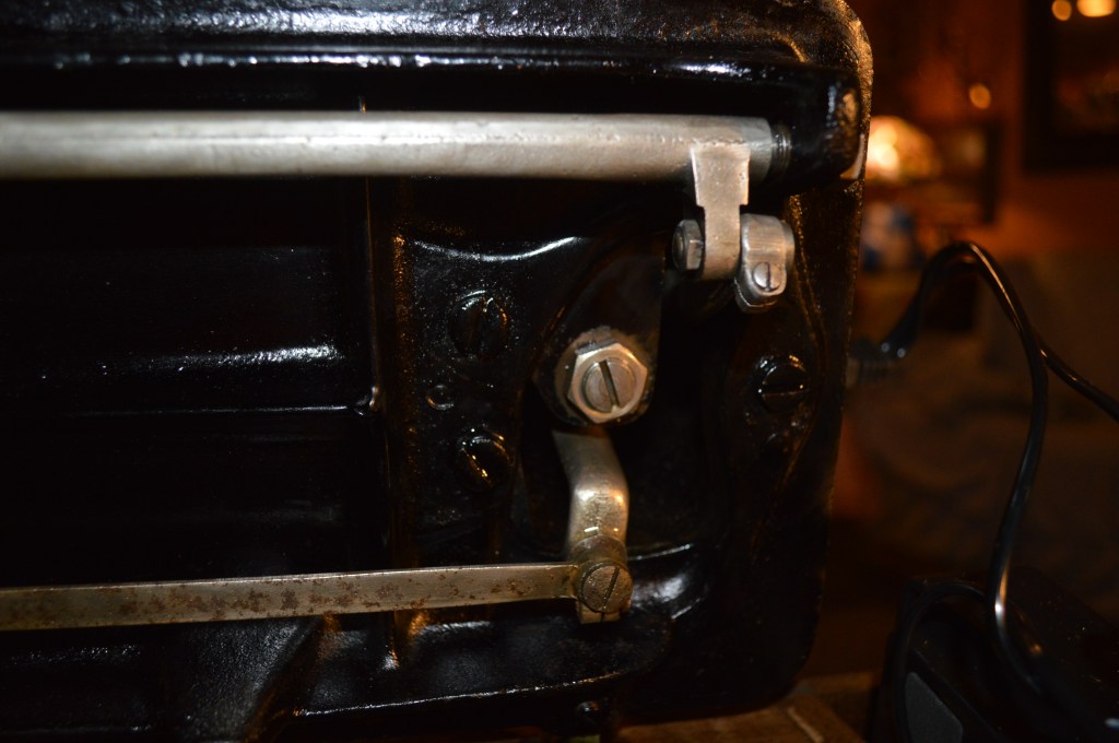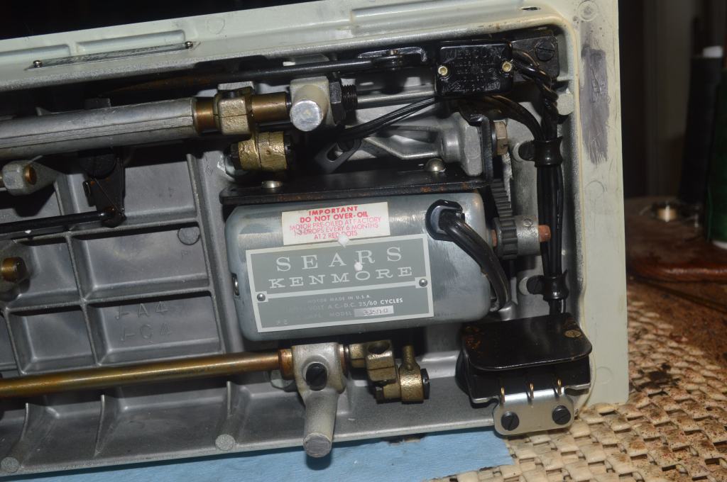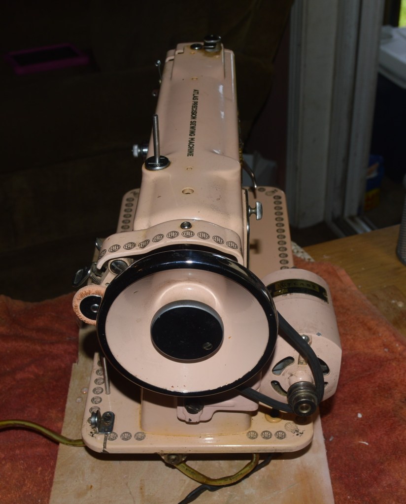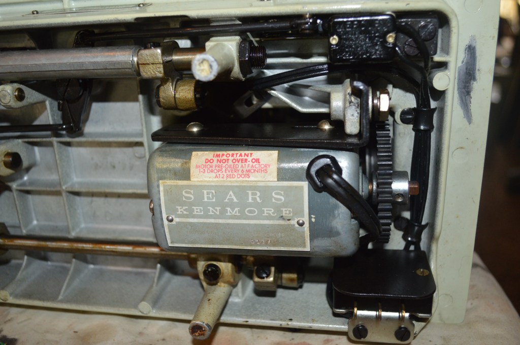 Notice the name on the controller? Its a vintage Kenmore foot controller. The more I use these, the better I like them. Thet are just the right size, have a great heft and feel, operate smoothly, and have very good motor speed control. They are a carbon pile controller and they run much cooler than resistance style foot controllers (the type of controller the machine came with).