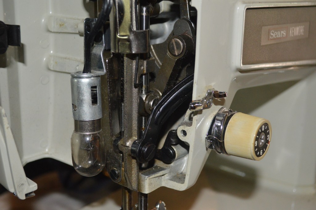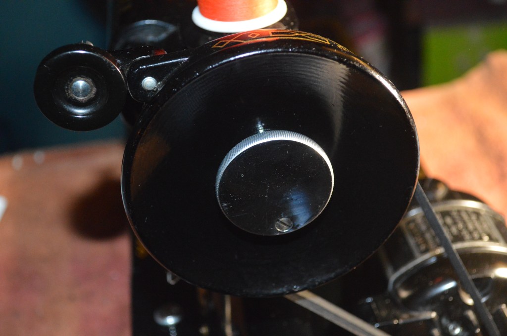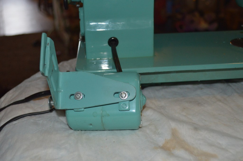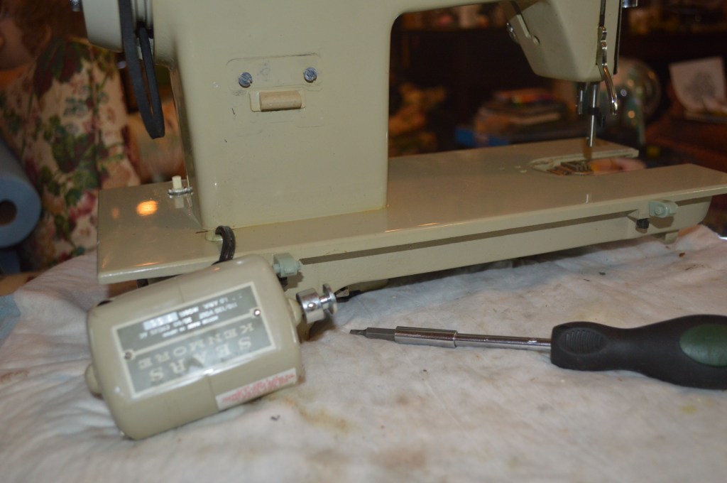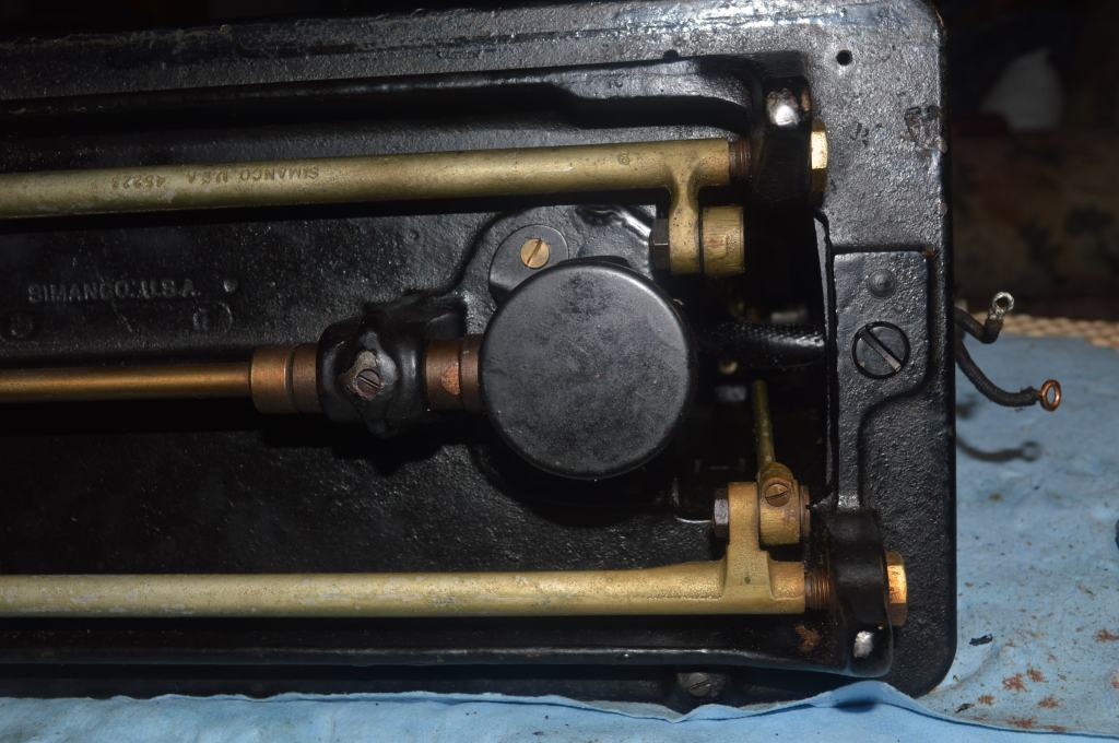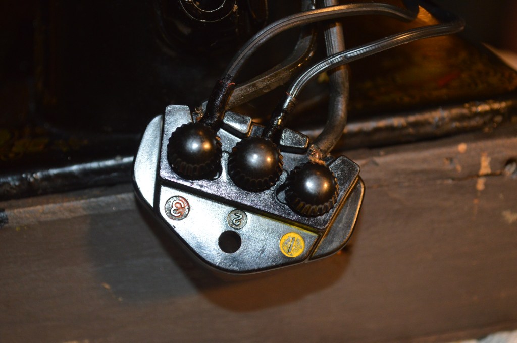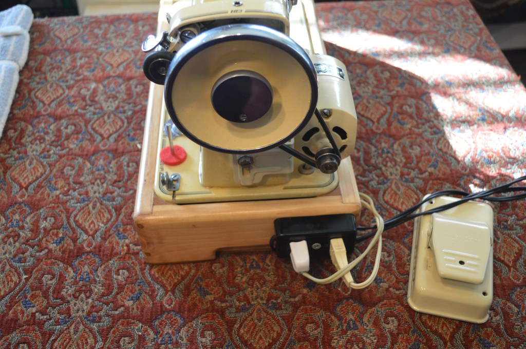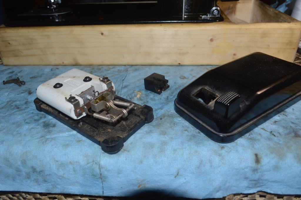 Notice the name on the controller? Its a vintage Kenmore foot controller. The more I use these, the better I like them. Thet are just the right size, have a great heft and feel, operate smoothly, and have very good motor speed control. They are a carbon pile controller and they run much cooler than resistance style foot controllers (the type of controller the machine came with).