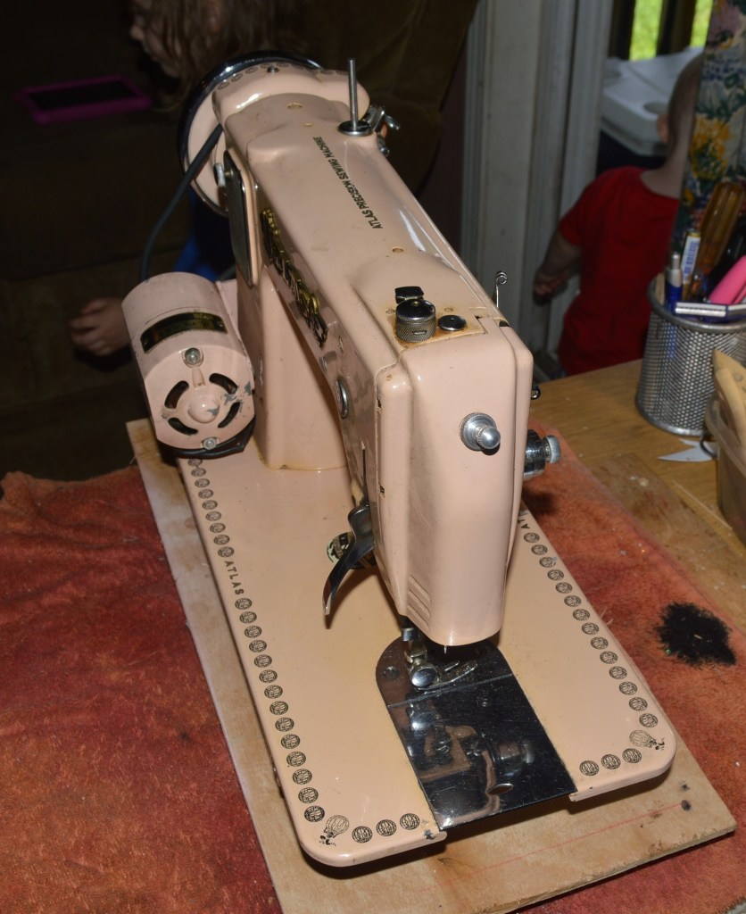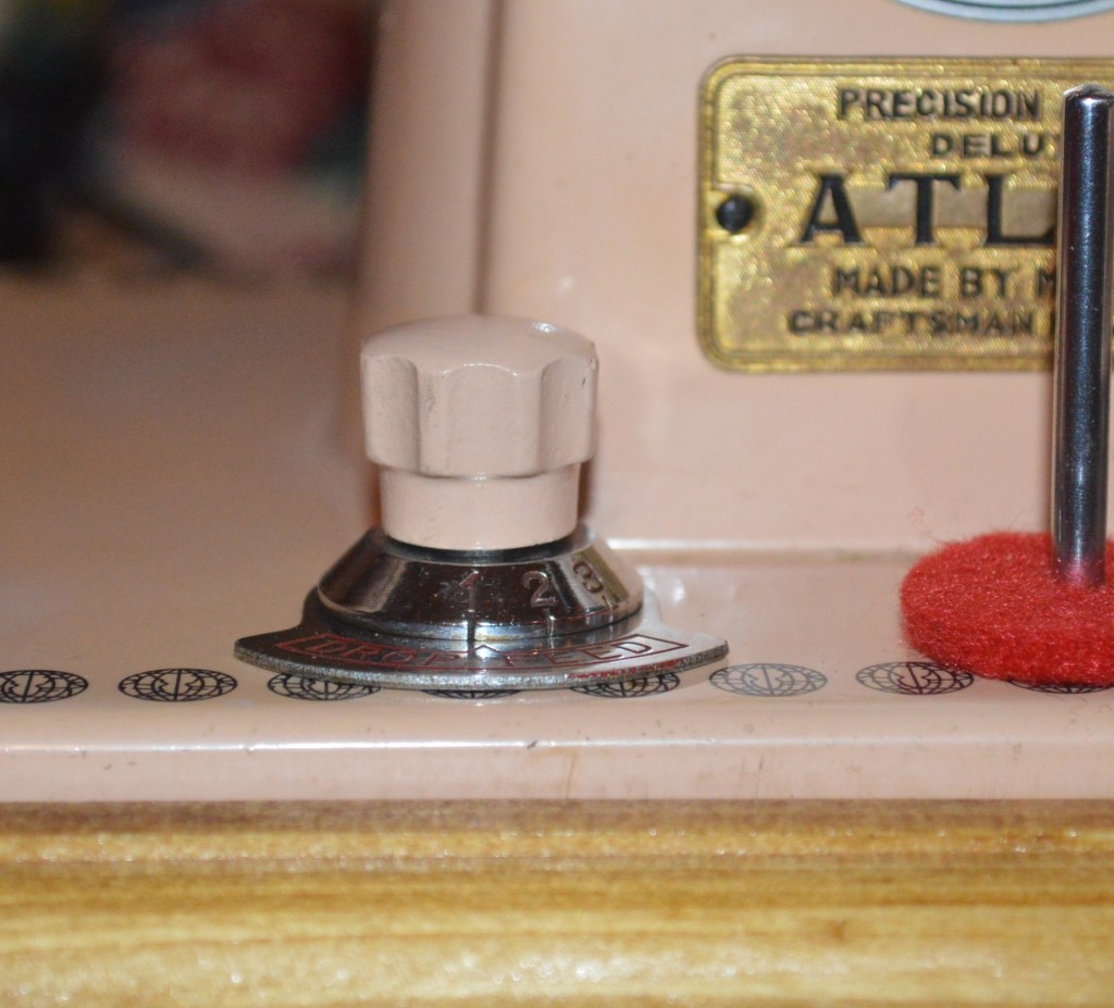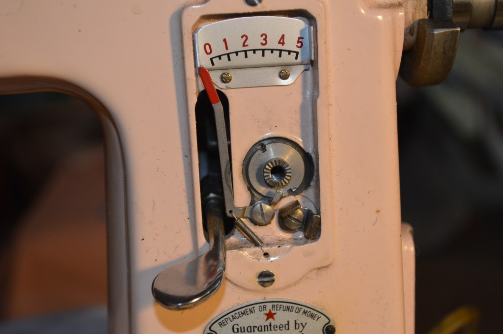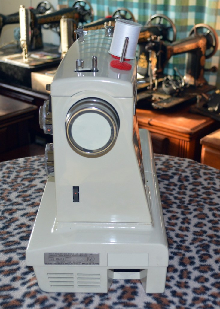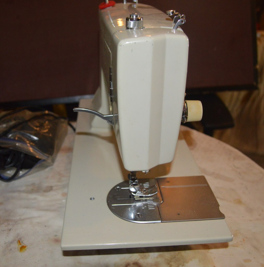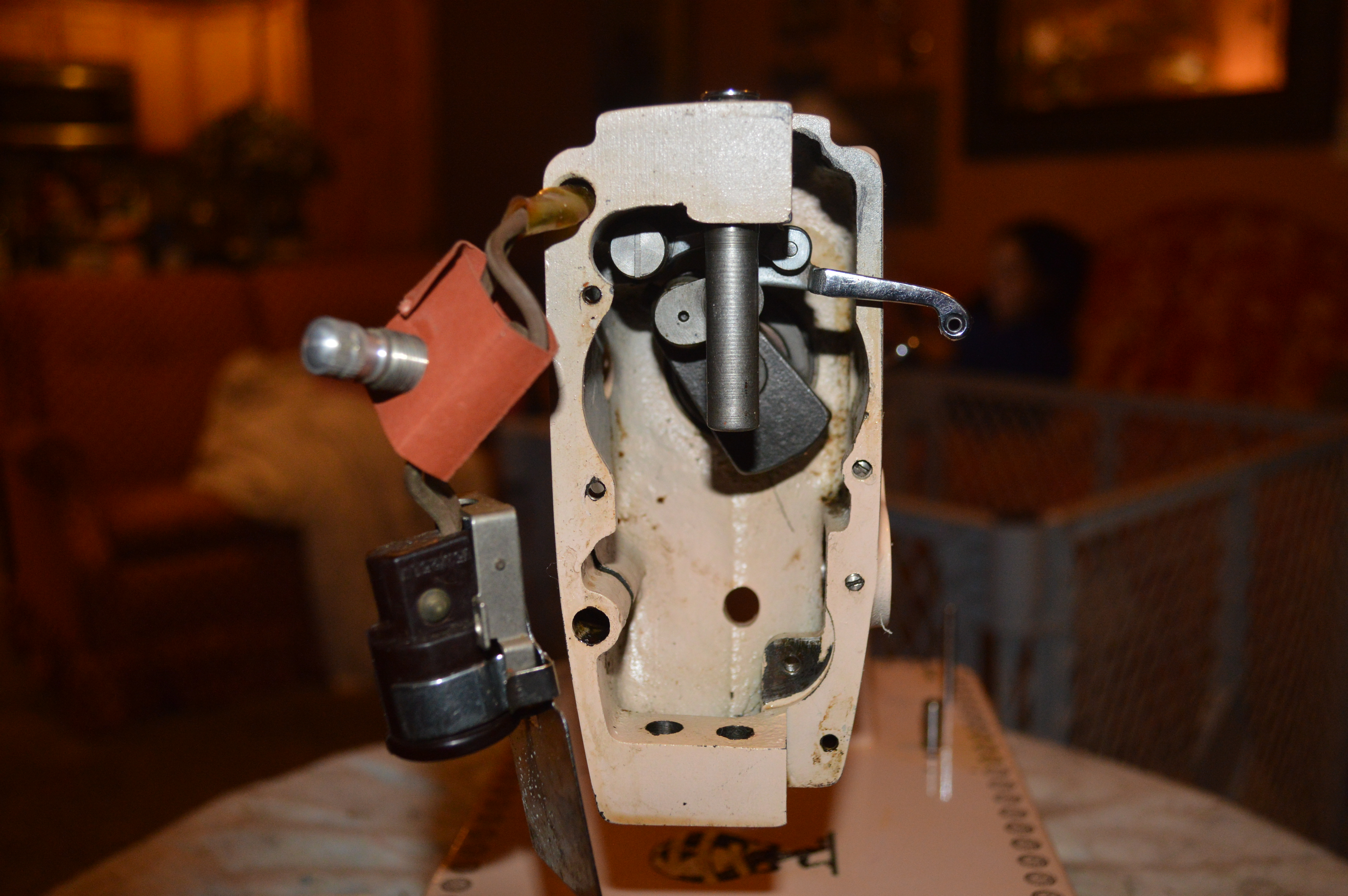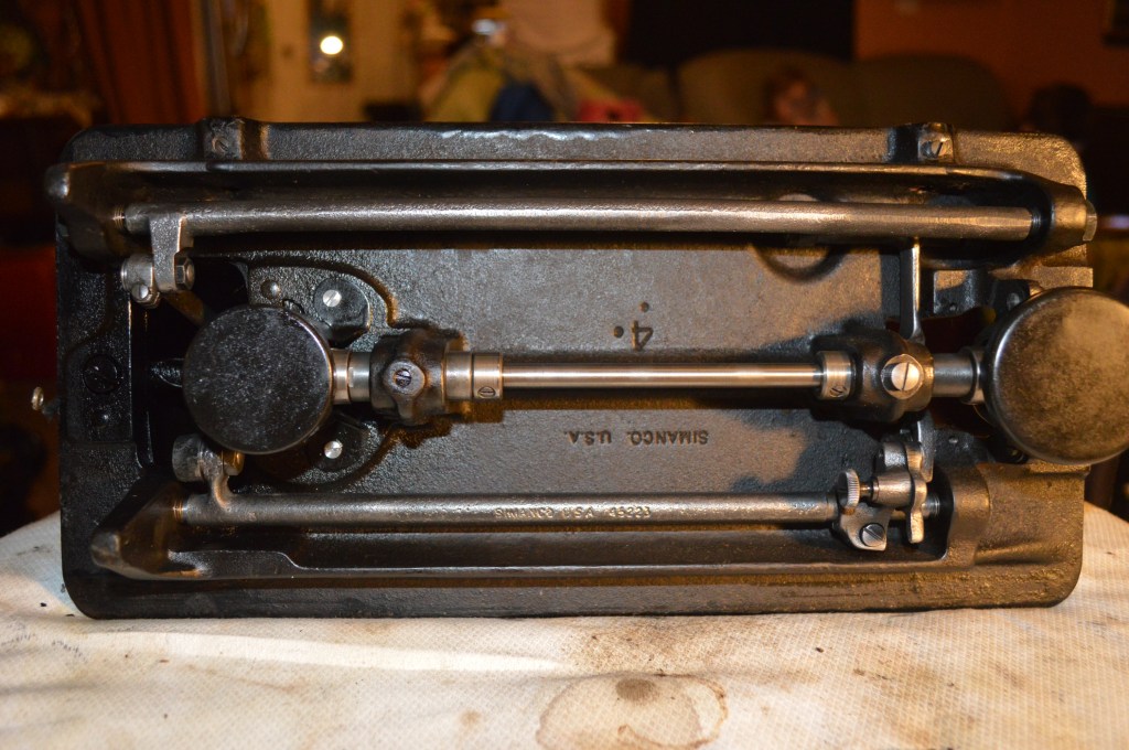 Notice the name on the controller? Its a vintage Kenmore foot controller. The more I use these, the better I like them. Thet are just the right size, have a great heft and feel, operate smoothly, and have very good motor speed control. They are a carbon pile controller and they run much cooler than resistance style foot controllers (the type of controller the machine came with).