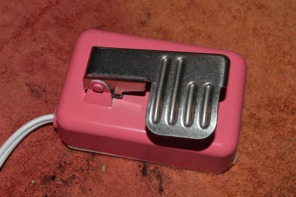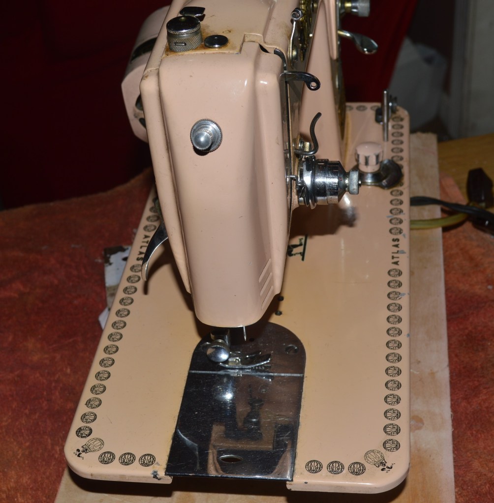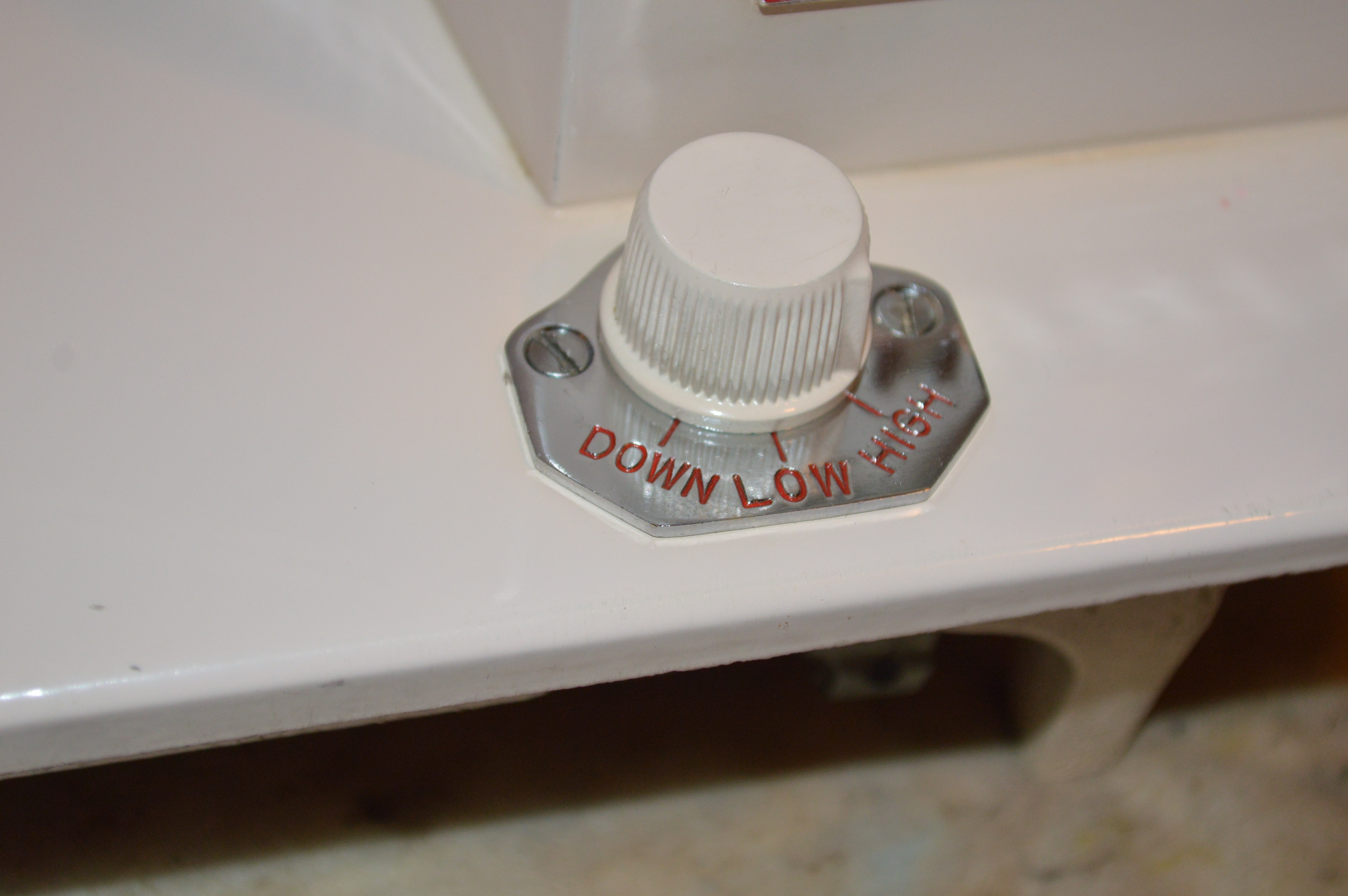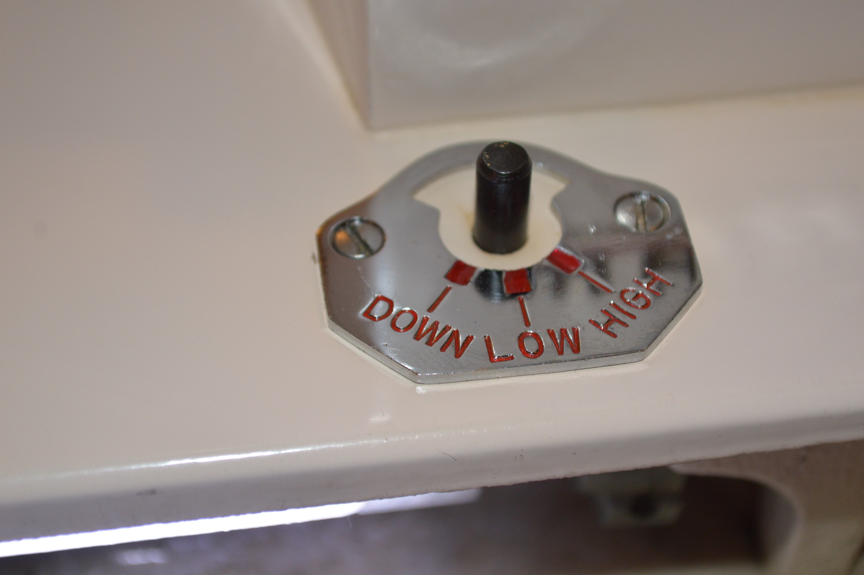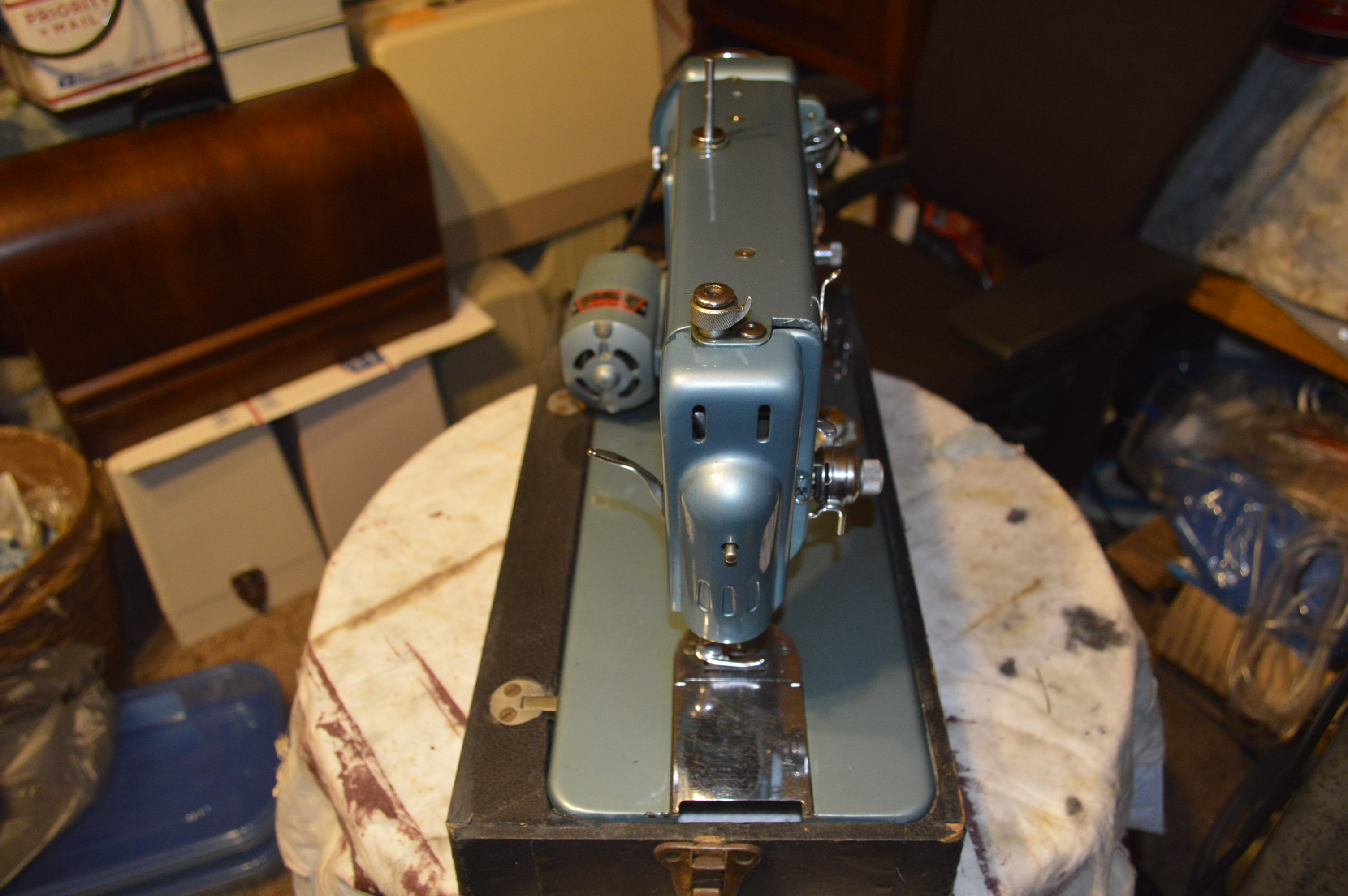 Notice the name on the controller? Its a vintage Kenmore foot controller. The more I use these, the better I like them. Thet are just the right size, have a great heft and feel, operate smoothly, and have very good motor speed control. They are a carbon pile controller and they run much cooler than resistance style foot controllers (the type of controller the machine came with).