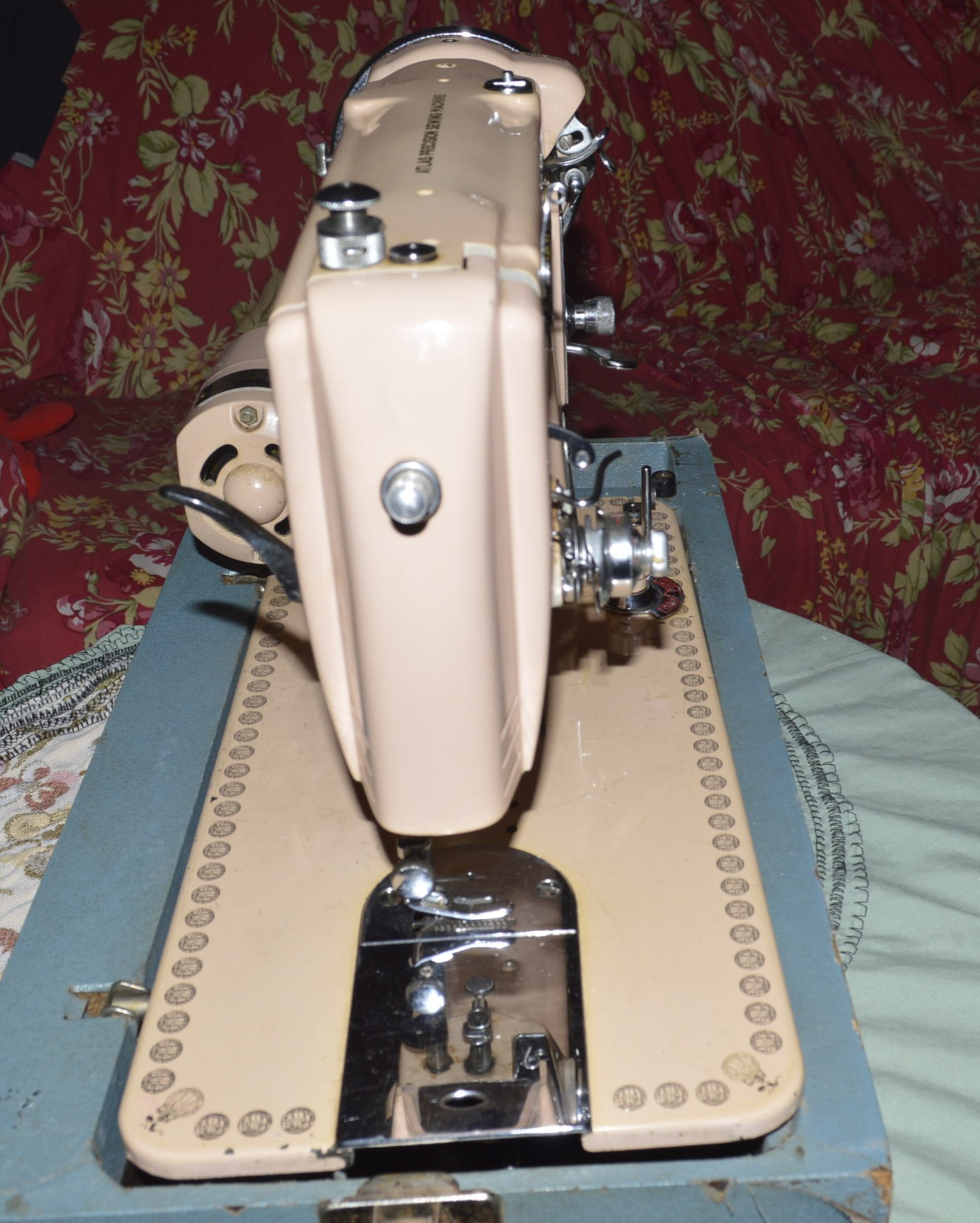 Unfortunately, this was the case when my customer got her machine. Please don’t take my experiences as a discourgement to purchase a machine from them, but do consider the possibility it may arrive with some damage. The machine listed was in beautiful condition, but because it was poorly packed with the metal foot controller in the box, the machines paint was severly scratched and gouged and the case was smashed. It arrived in quite a contrast to the picture of the machine listed where it was in beautiful condition.