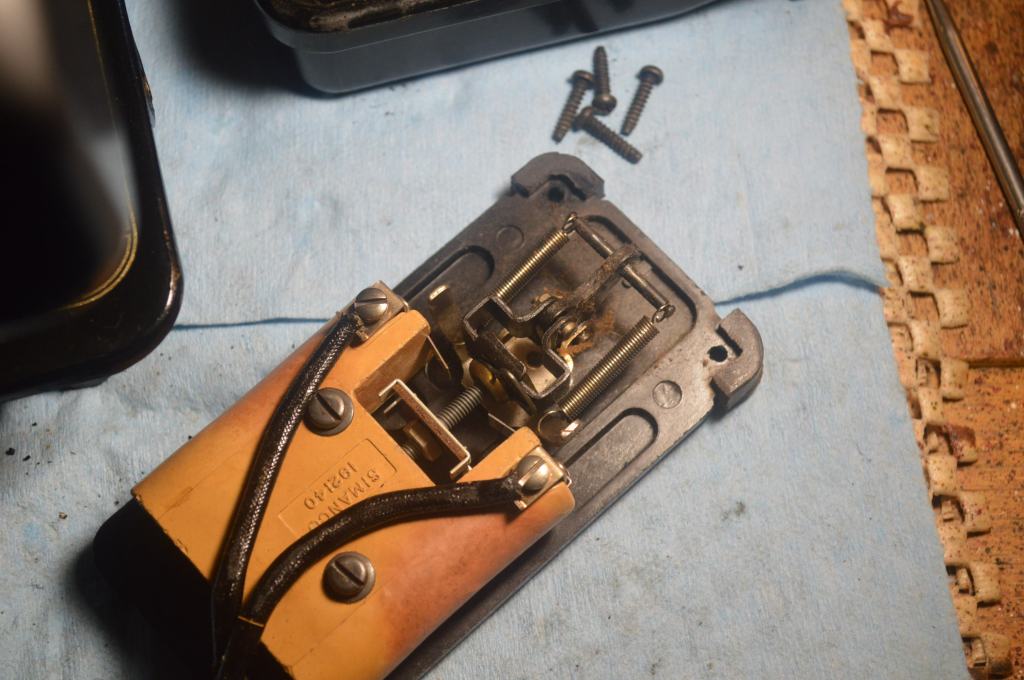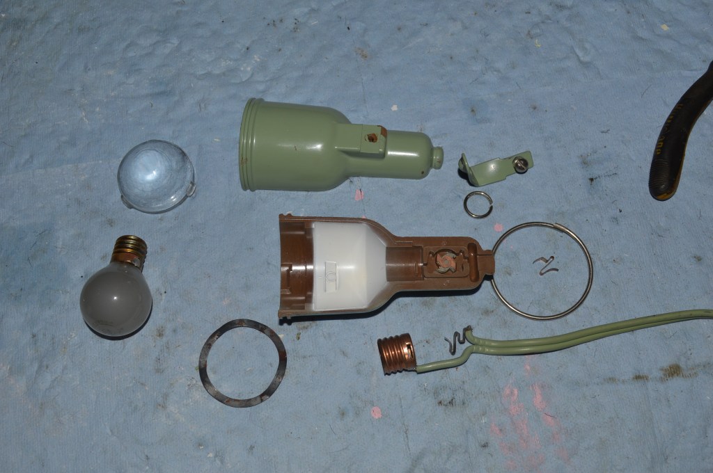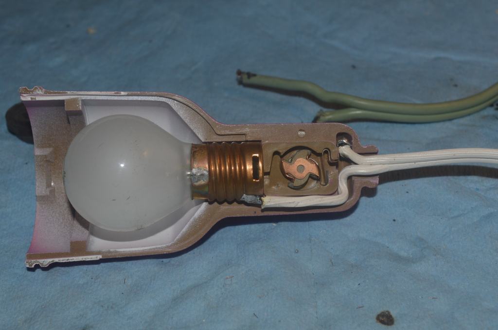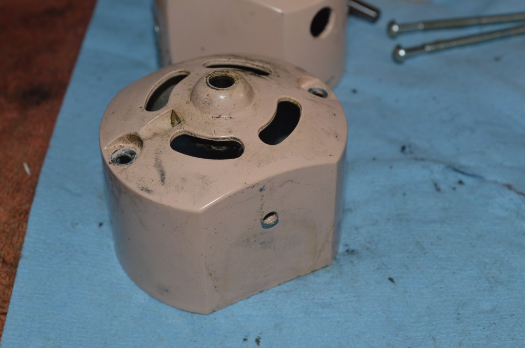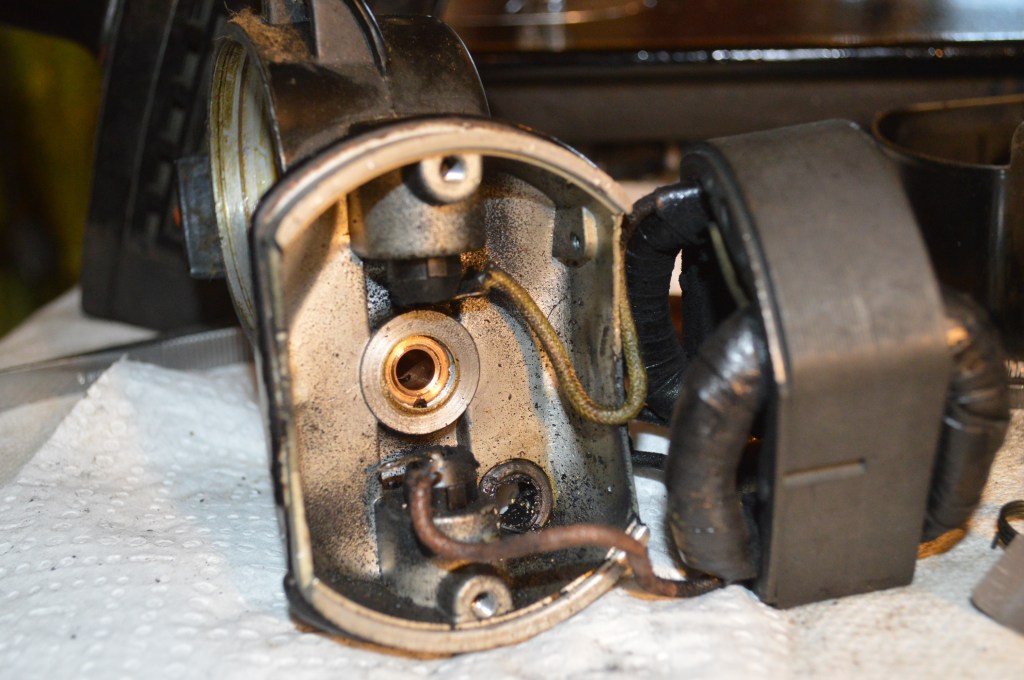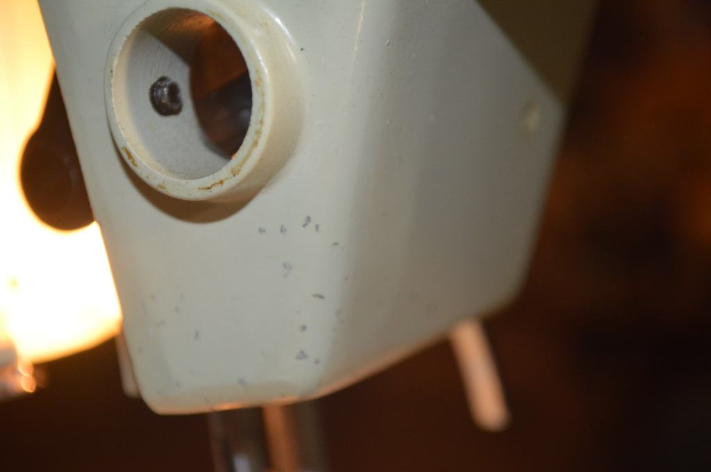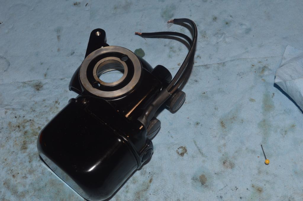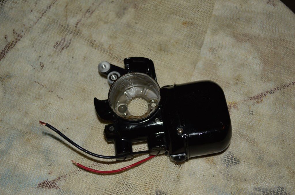 Next, the light fixture is restored. This machine has an aftermarket light attachment that is very likely the same (or slightly later) vintage as the machine. The wires need to be replaced, and I think I can improve the cosmetic appearance by polishing the light shroud.