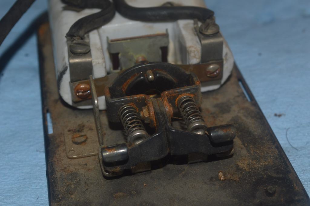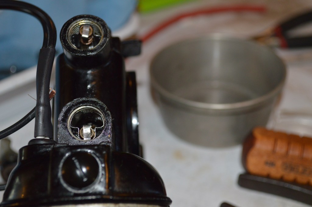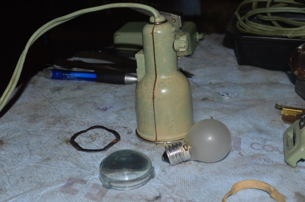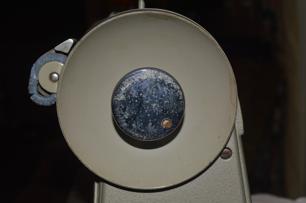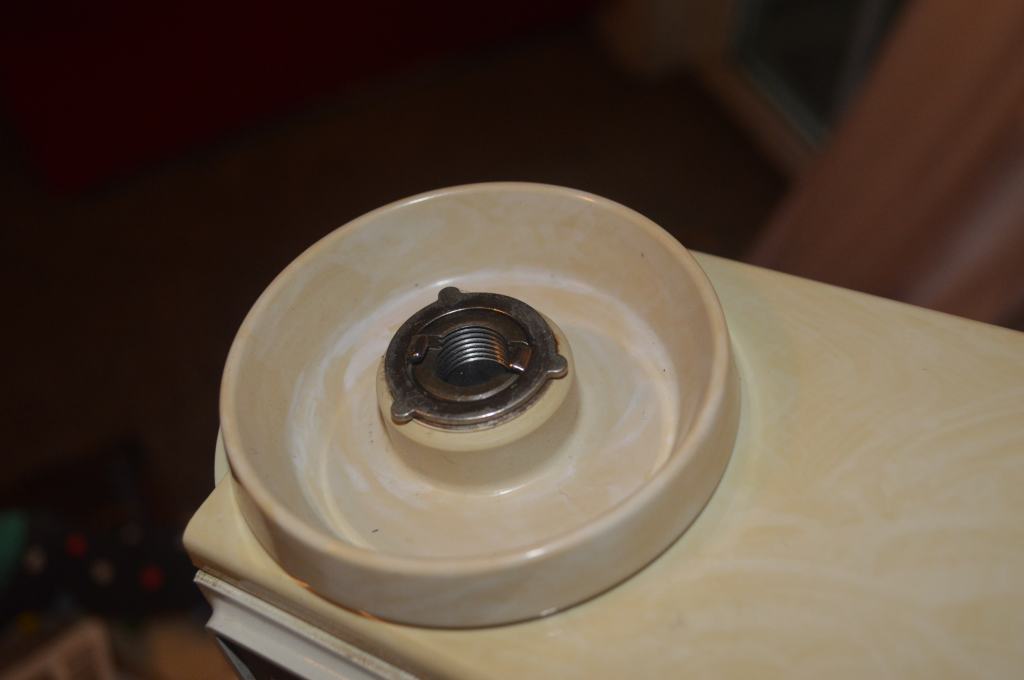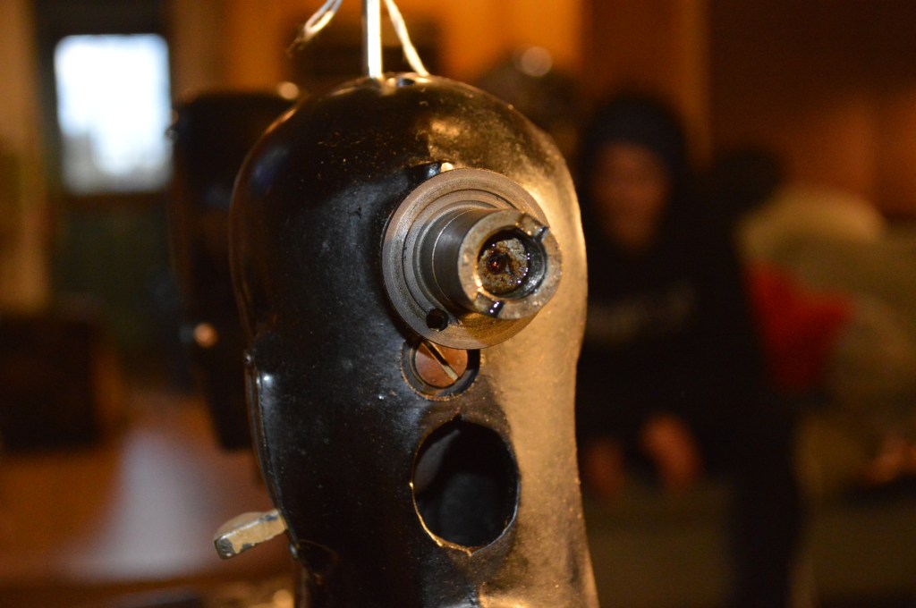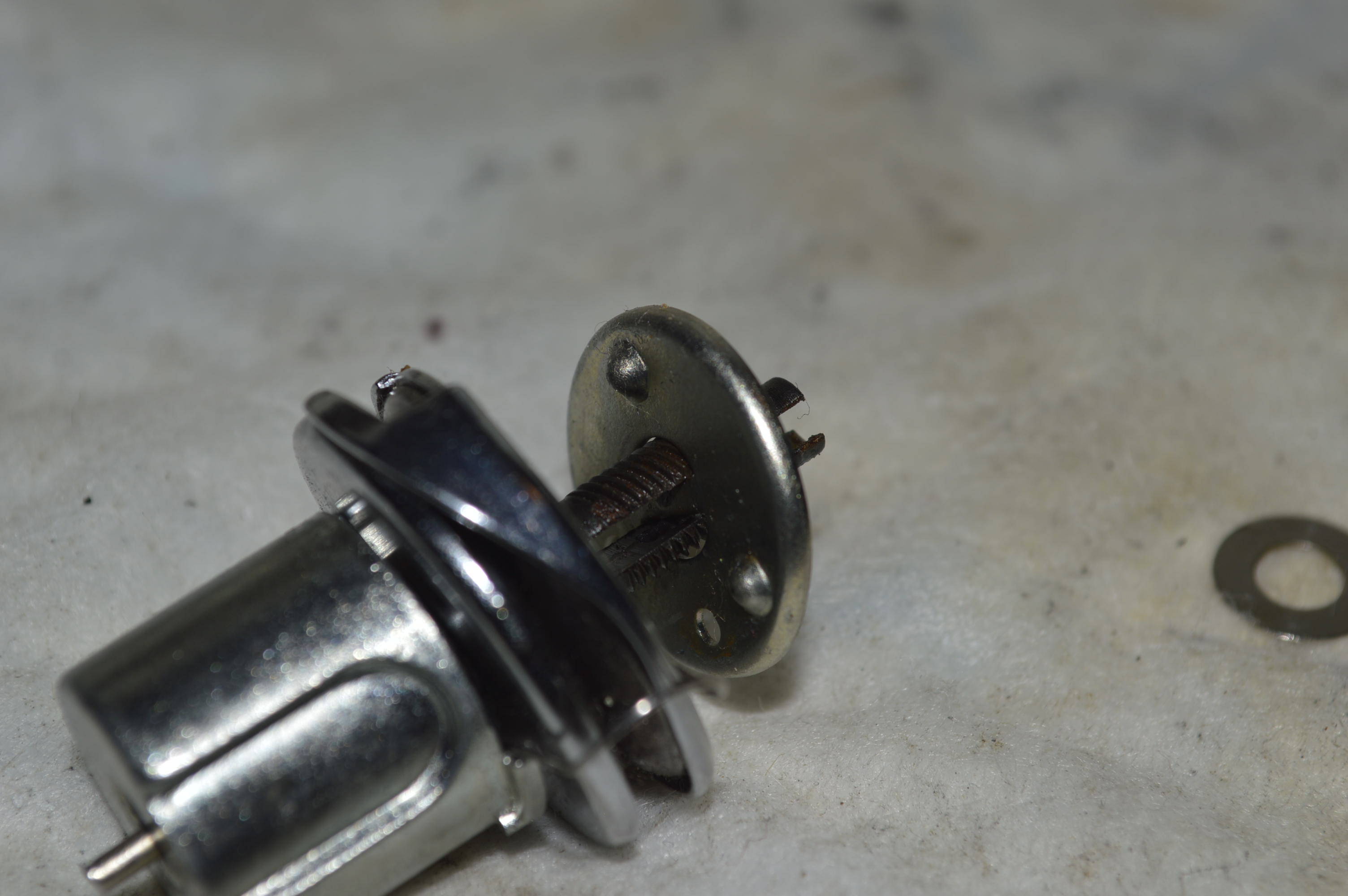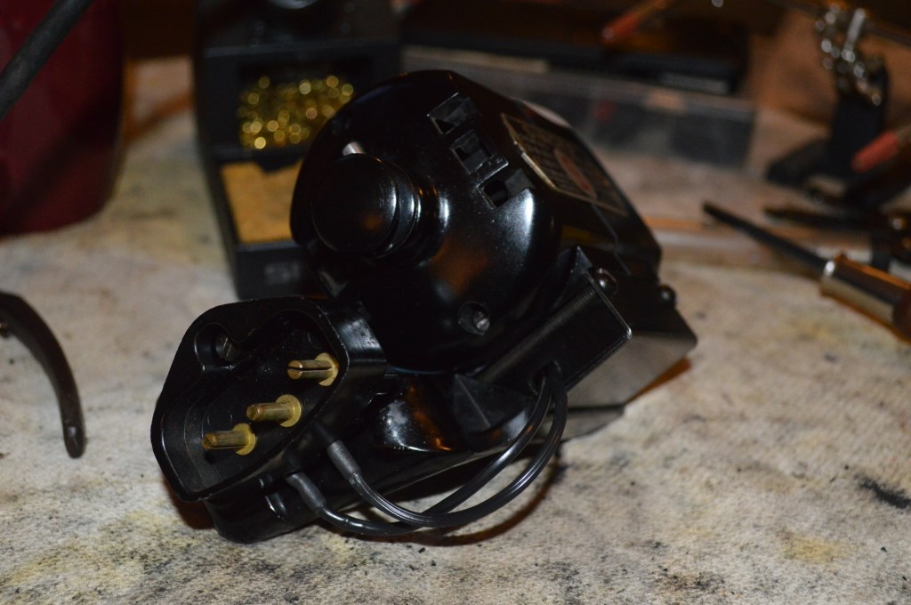 Next, the light fixture is restored. This machine has an aftermarket light attachment that is very likely the same (or slightly later) vintage as the machine. The wires need to be replaced, and I think I can improve the cosmetic appearance by polishing the light shroud.
