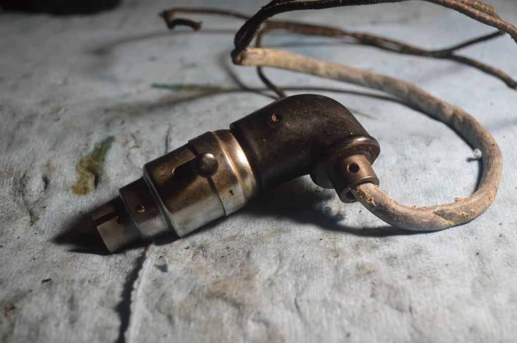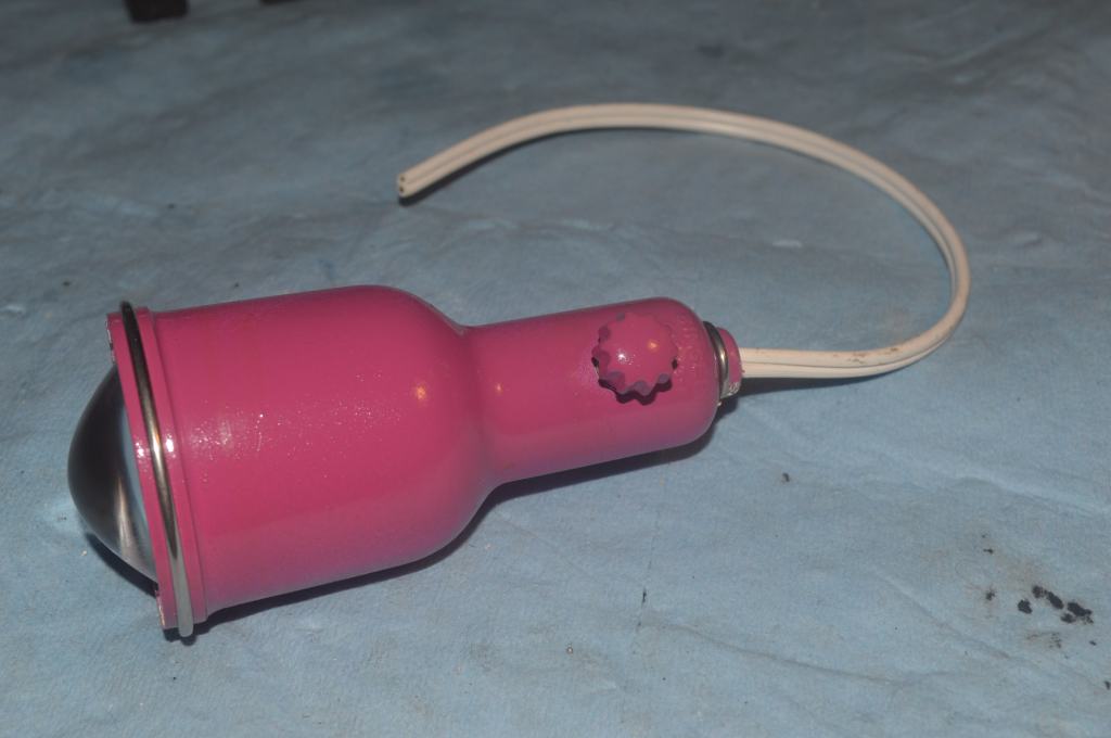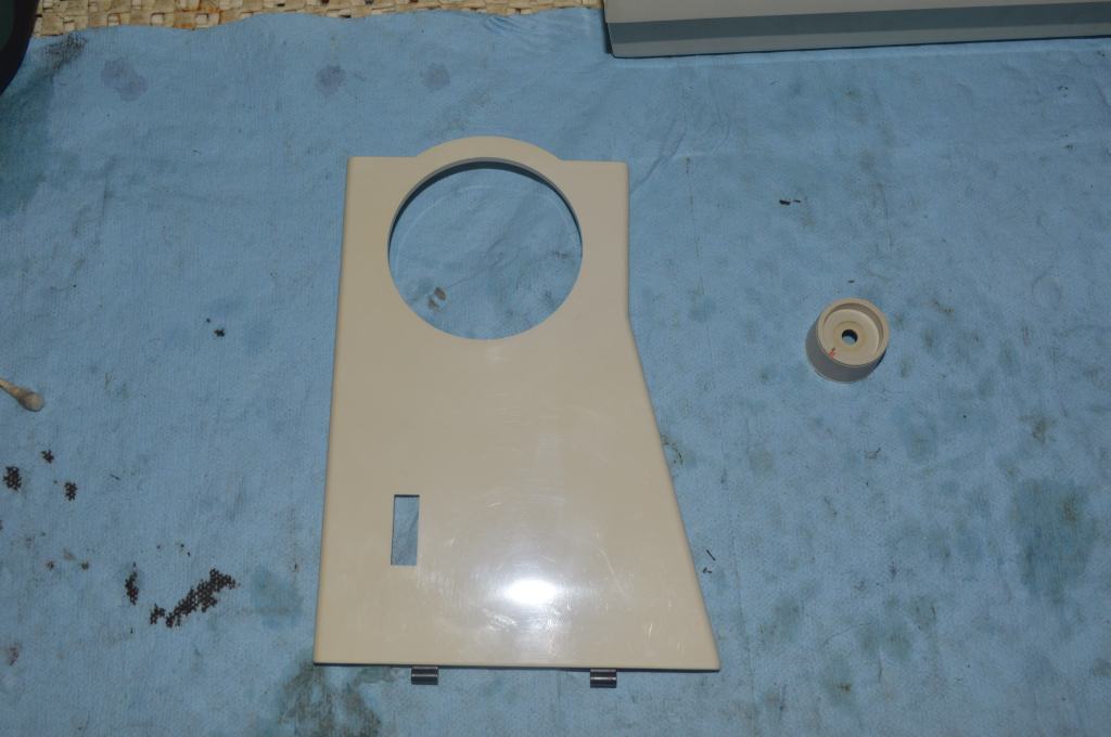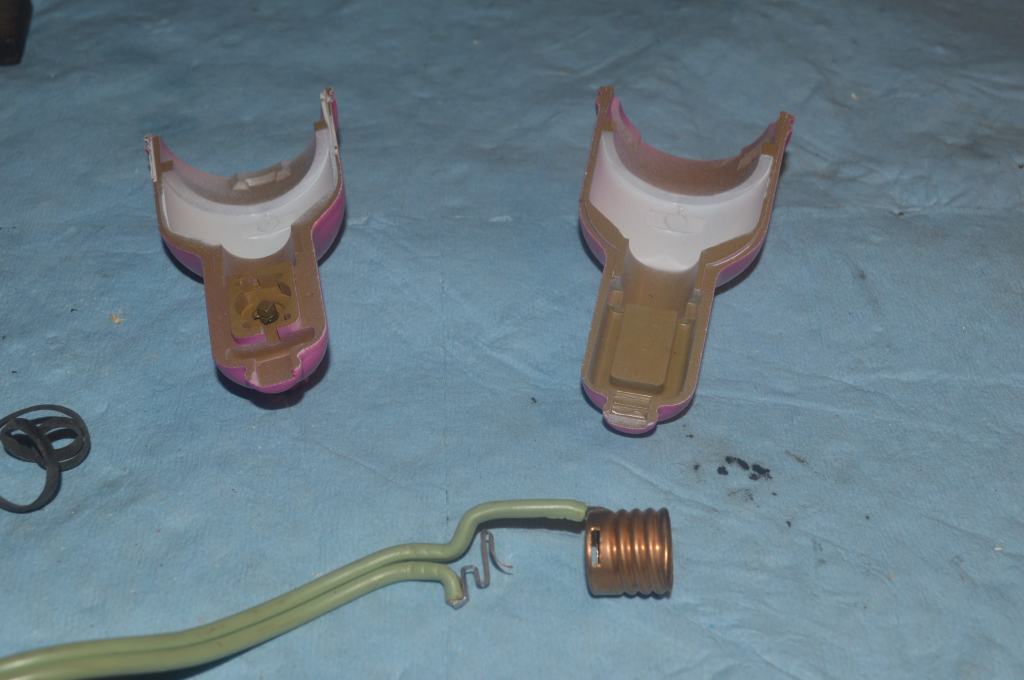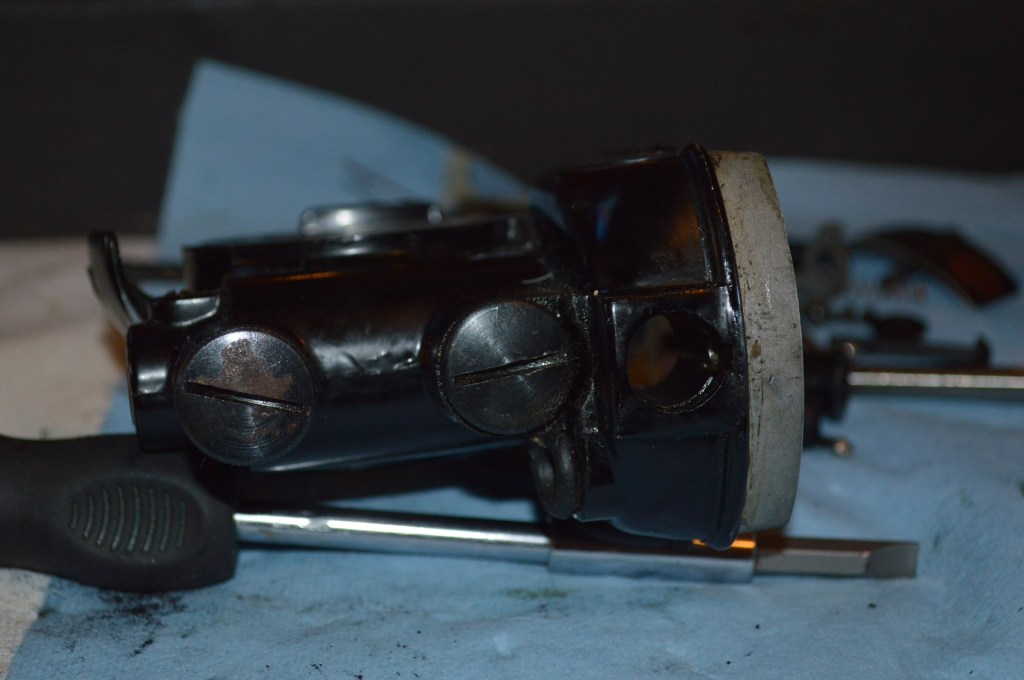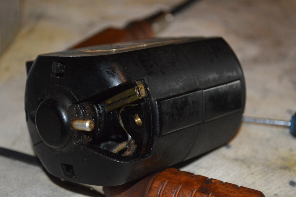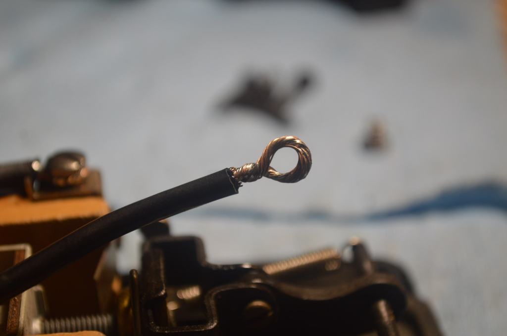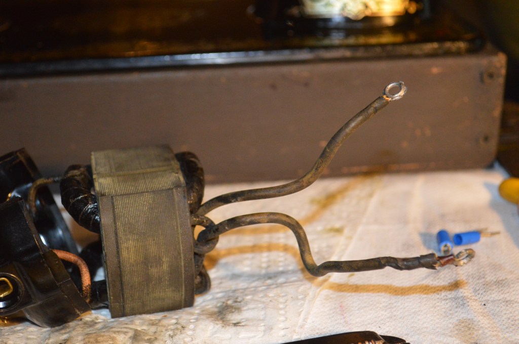 Next, the light fixture is restored. This machine has an aftermarket light attachment that is very likely the same (or slightly later) vintage as the machine. The wires need to be replaced, and I think I can improve the cosmetic appearance by polishing the light shroud.