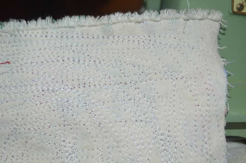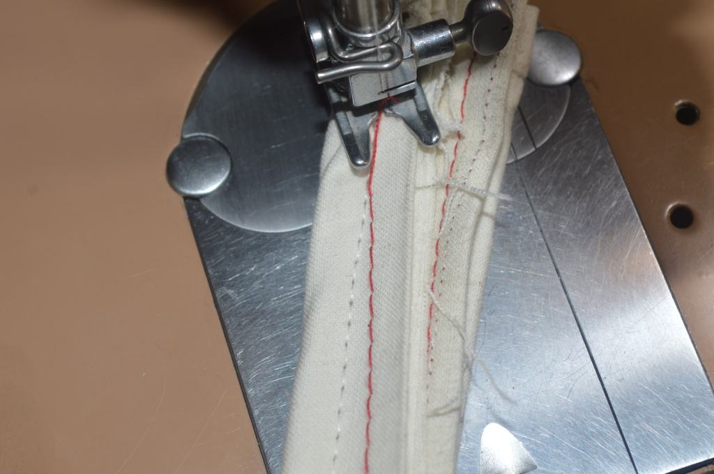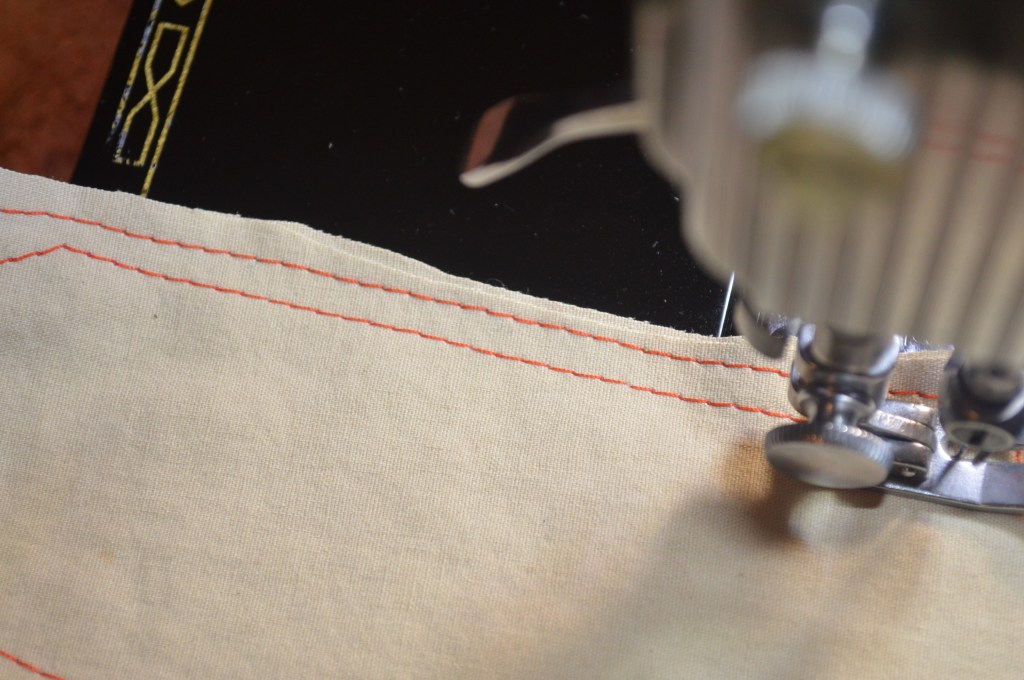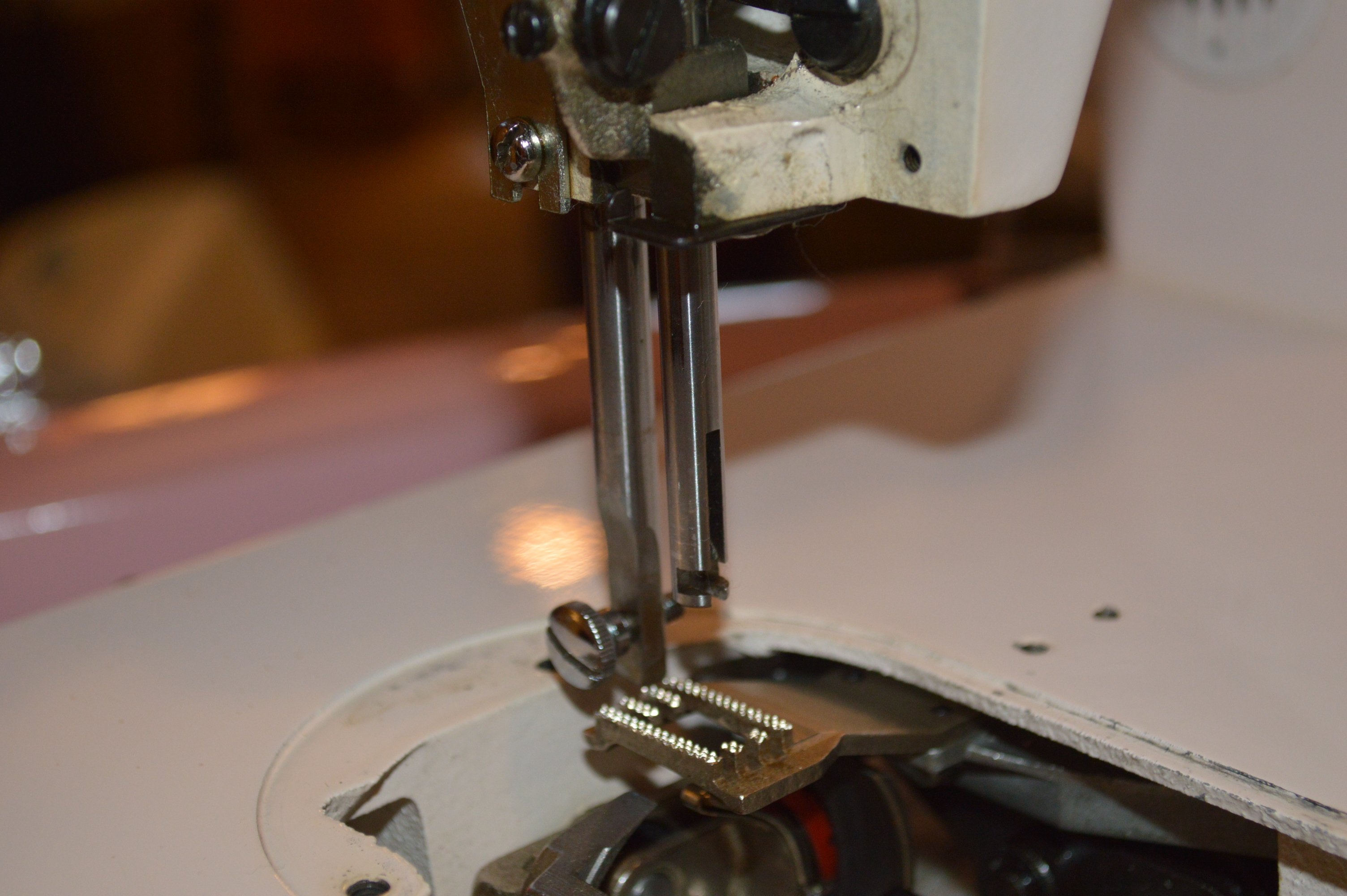 At this point, the machine is threaded, tensions are set, and the machine is tested to see how she sews! After noodling with the needle depth, top and bottom tensions, and presser foot pressure, I’d say it lays down a very nice stitch. I didn’t clock the machine speed, but I would guess it is 1000 spm or better. The machine has a very solid sound and the motor is very strong. I’m very happy with the outcome!