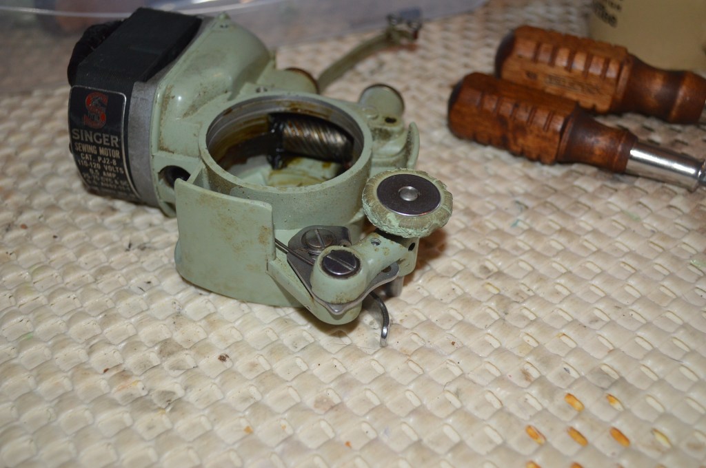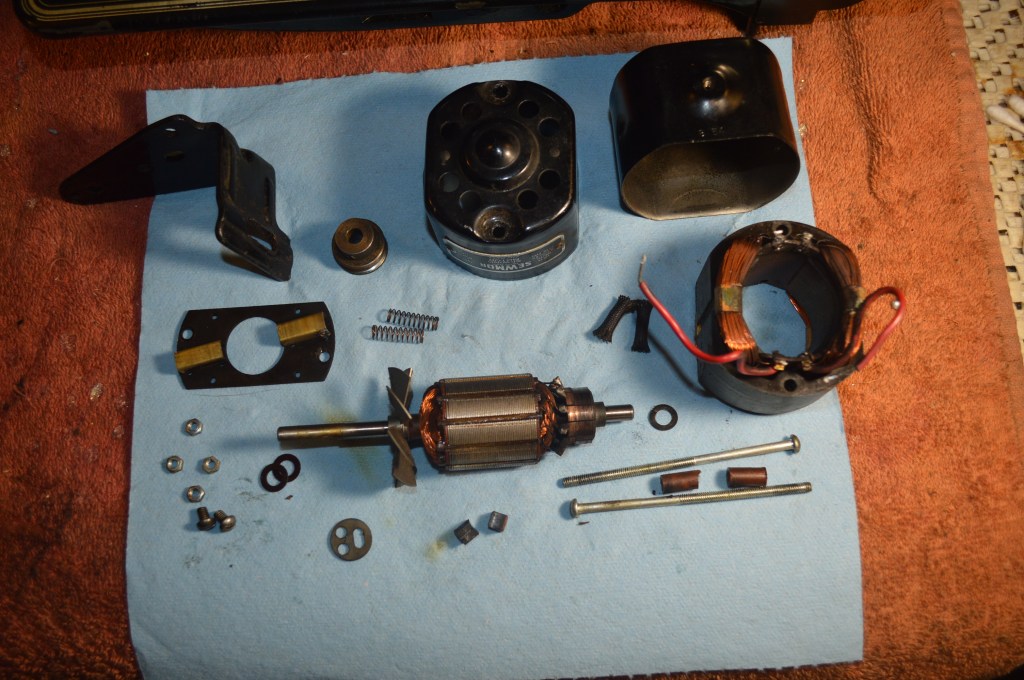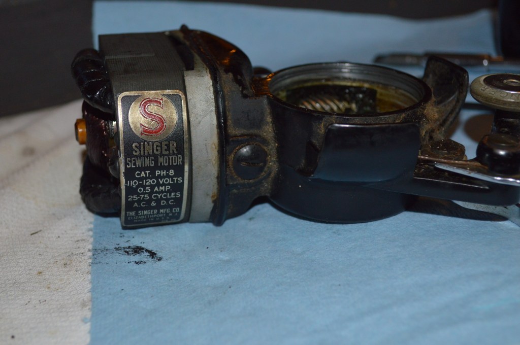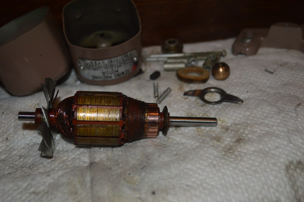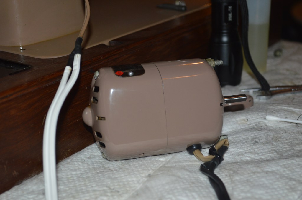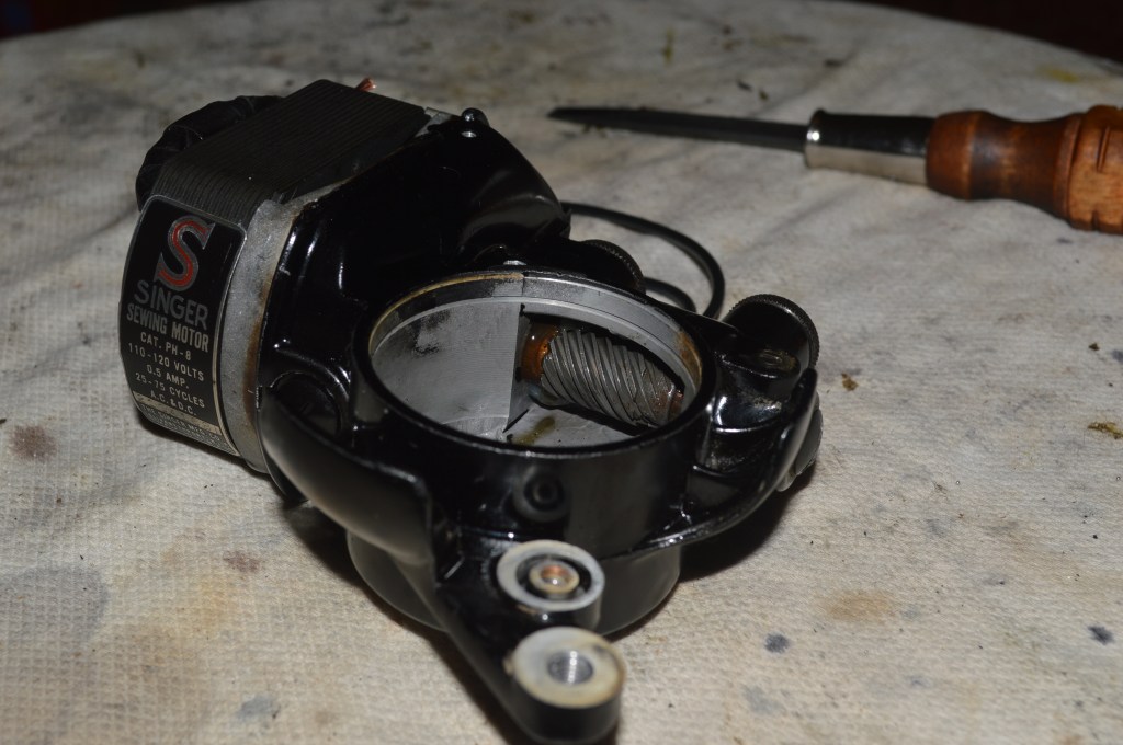 Now its time to restore the motor. The motor on the machine is a Morse motor and it is rated at 1.0 amps. This is a lot of power for a straight stitch machine. I don’t know the condition of the motor because I never run a motor before it is restored. I just feel it is better to do the restoration first. If there is an apparant problem (like shorted wires), I have a chance to see it before it burns up and ruins the motor. Always better safe than sorry!