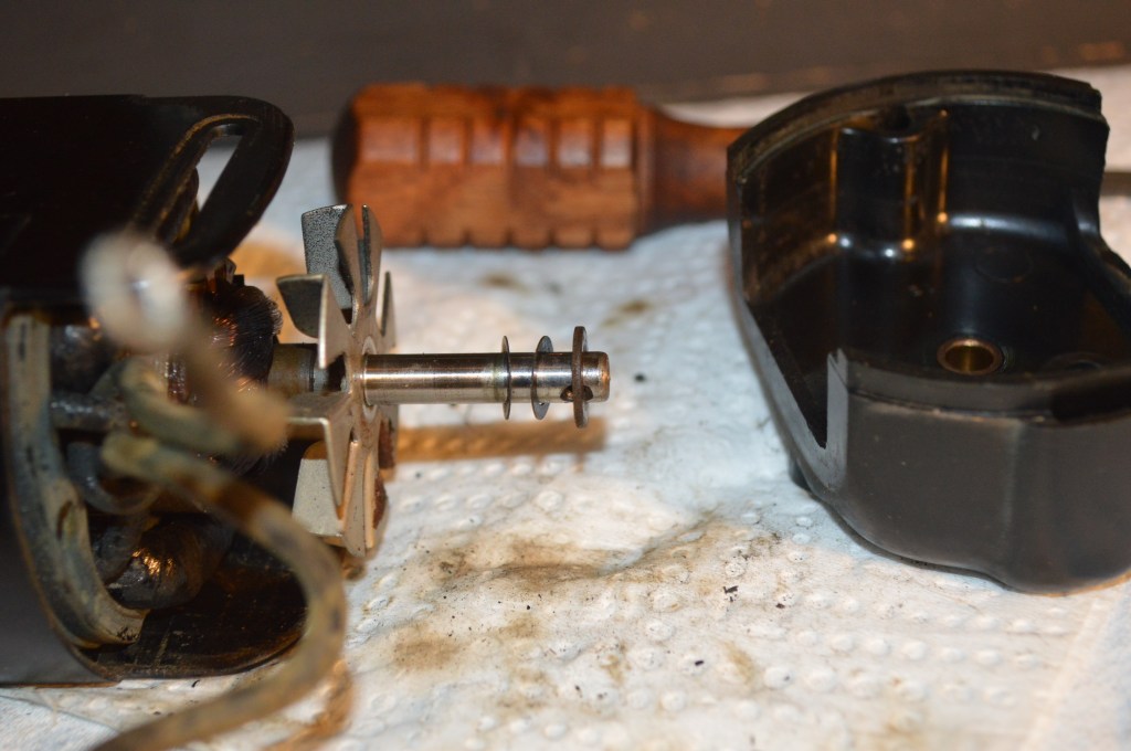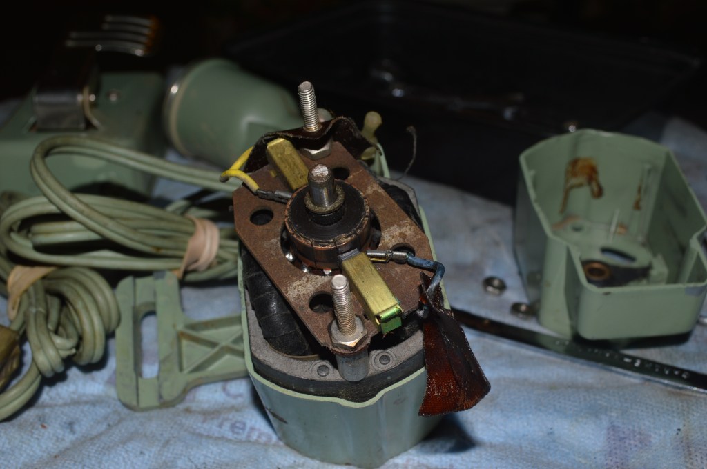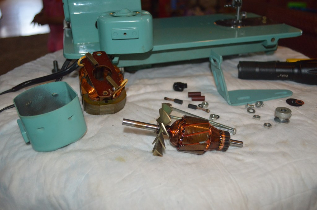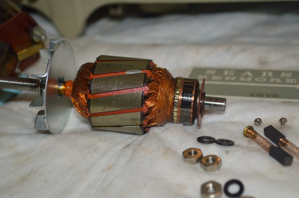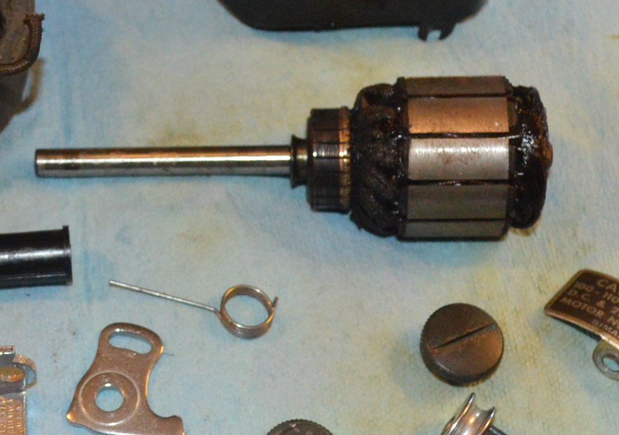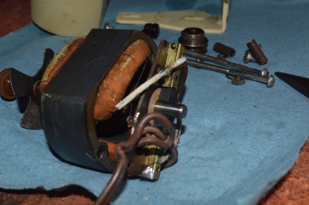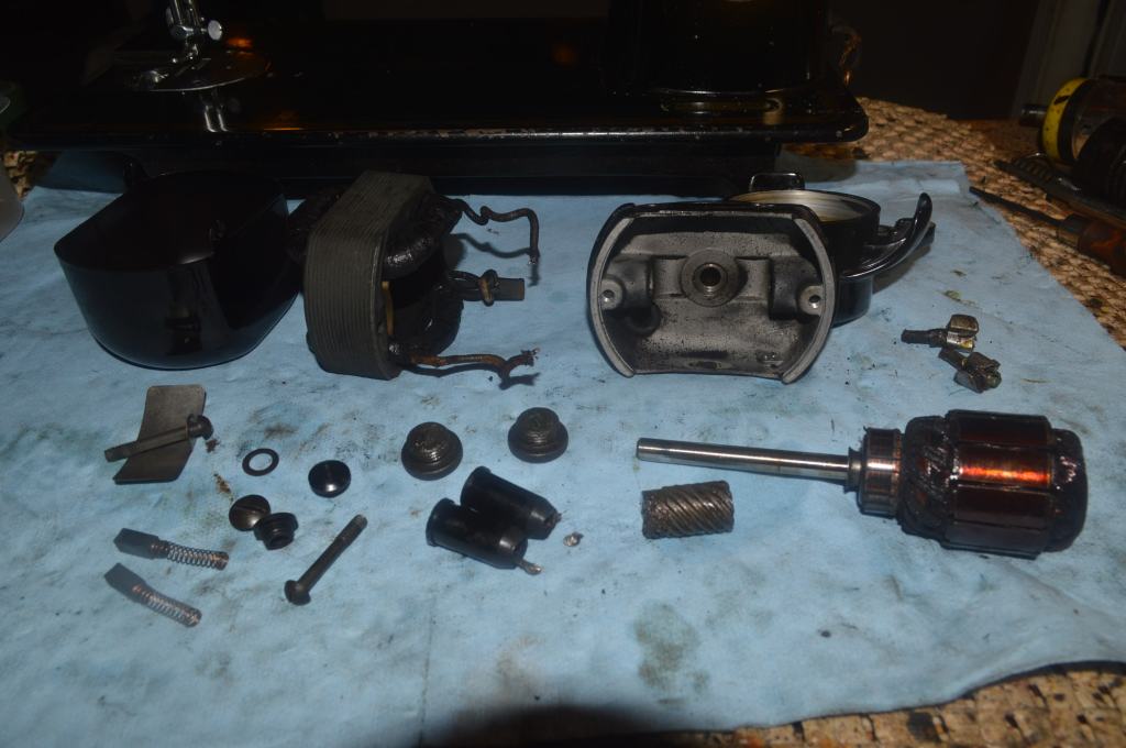 Now its time to restore the motor. The motor on the machine is a Morse motor and it is rated at 1.0 amps. This is a lot of power for a straight stitch machine. I don’t know the condition of the motor because I never run a motor before it is restored. I just feel it is better to do the restoration first. If there is an apparant problem (like shorted wires), I have a chance to see it before it burns up and ruins the motor. Always better safe than sorry!