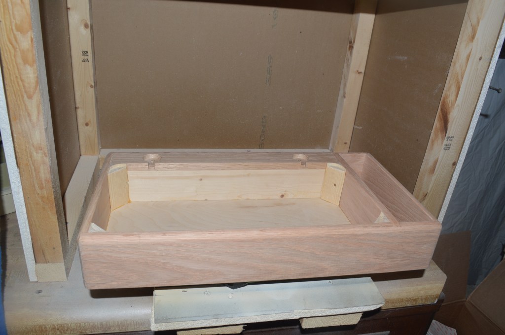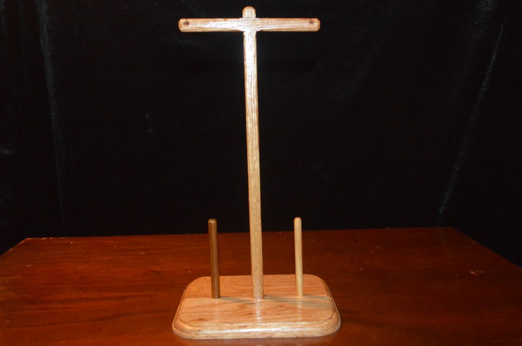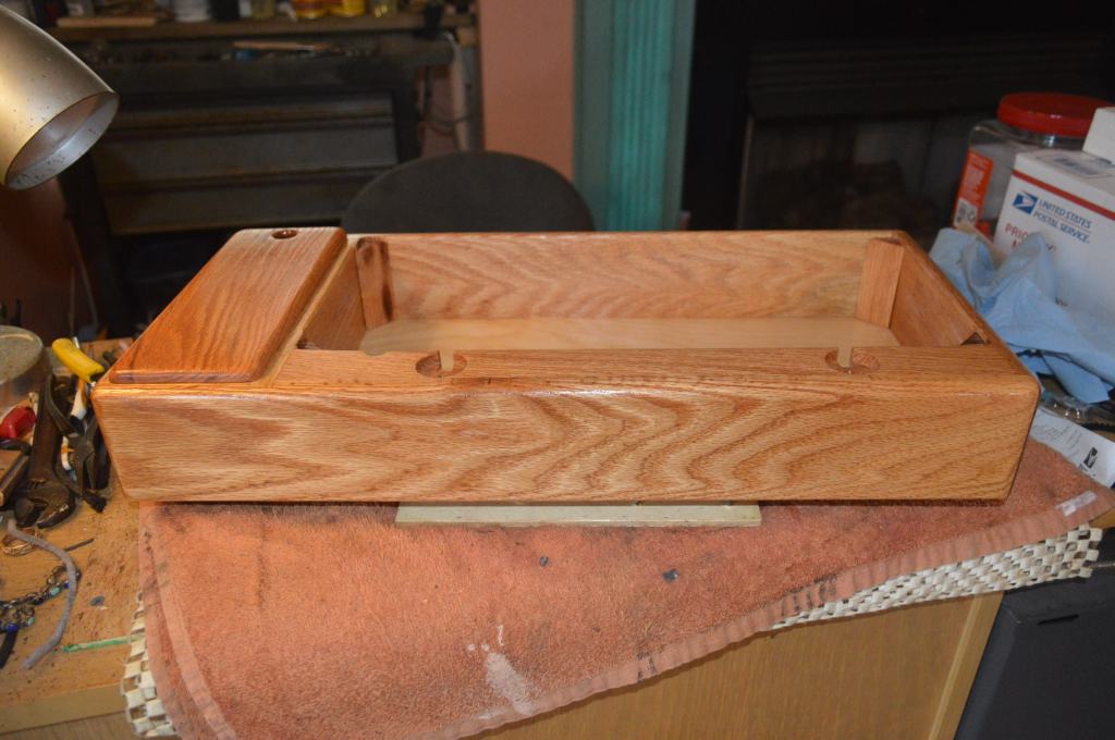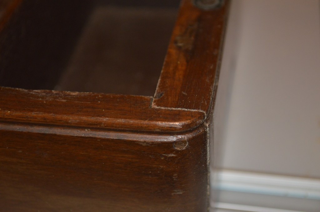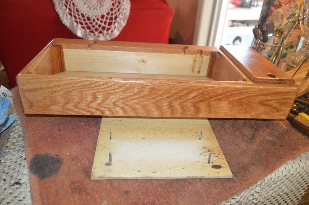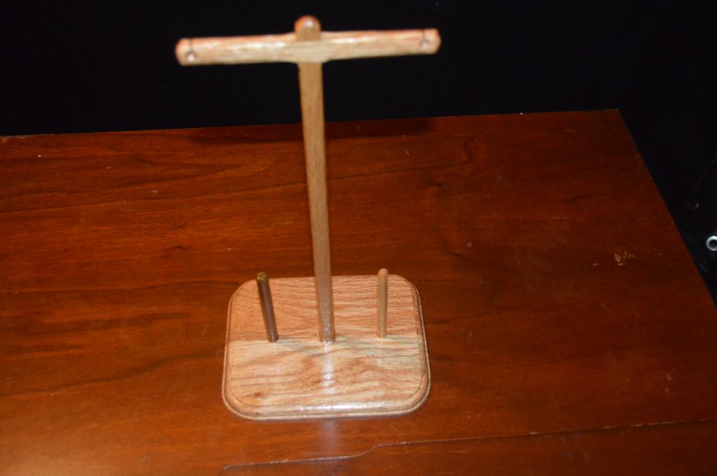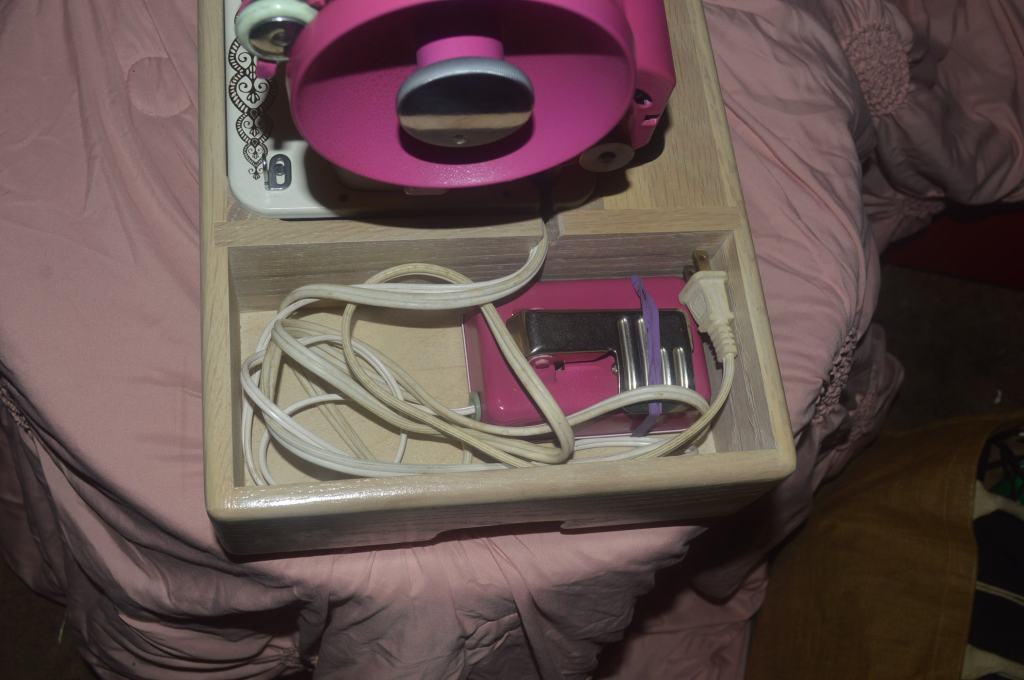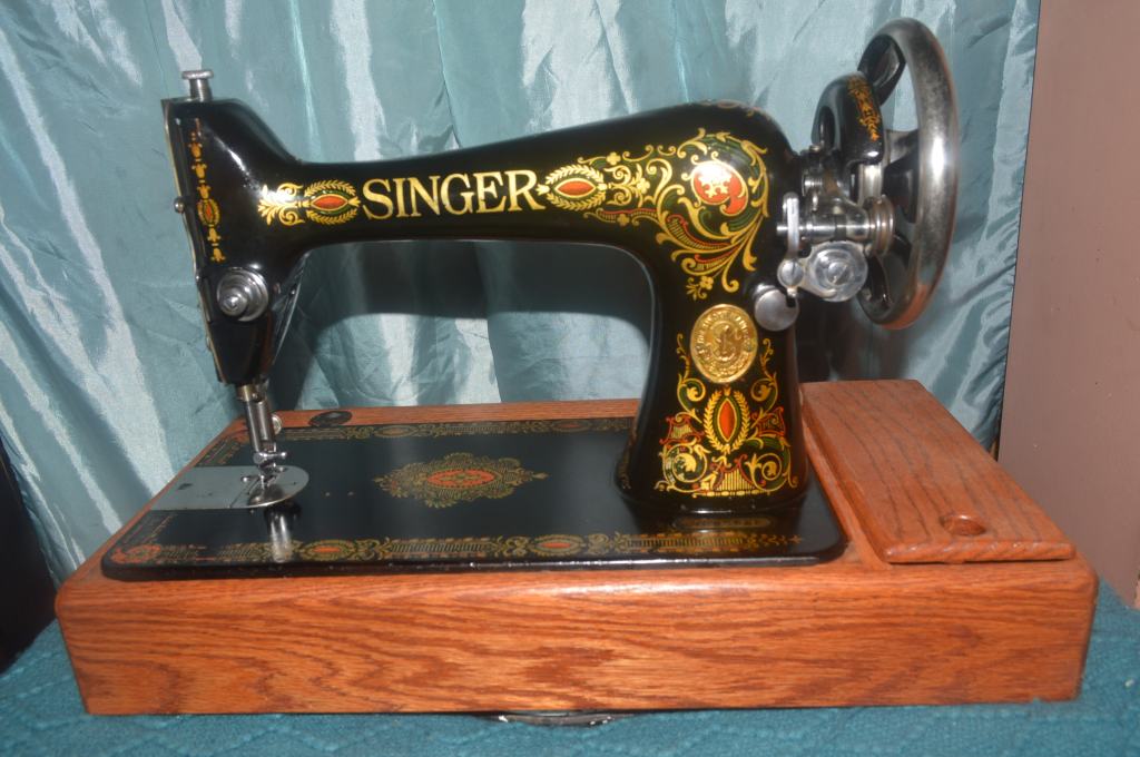 So, that’s it! The paint repairs turned out very nicely, and are hardly noticeable unless you know where to look. The machine turns smoothly and there is no perceptable slip or play in the assemblies. The parts are completely clean and the adjustments are just right for this machine. Finally, the pictures below show the final outcome. The customer ordered a custom made base in a Mocha stain, and this is base the machine is set into. All in all I think it is a very nice package, and I hope the customer is not only pleased, but uses her “new” Gimbels “Regular” machine for many years to come!