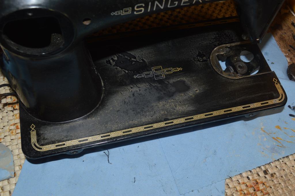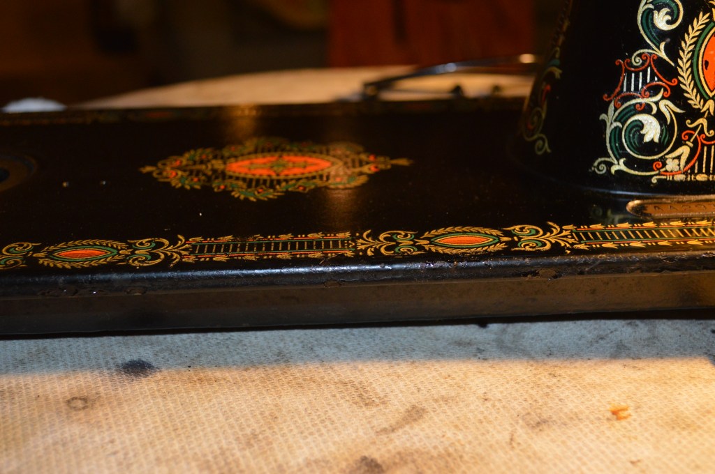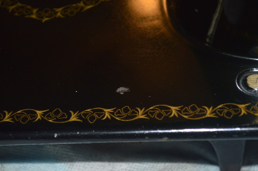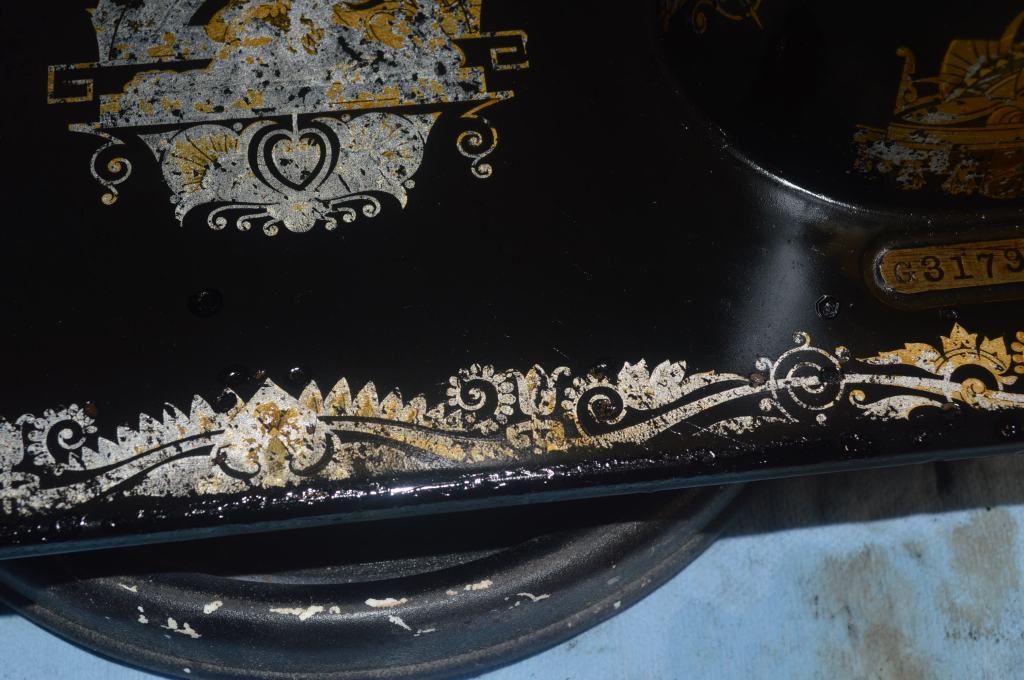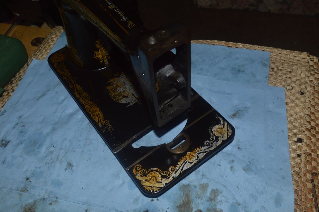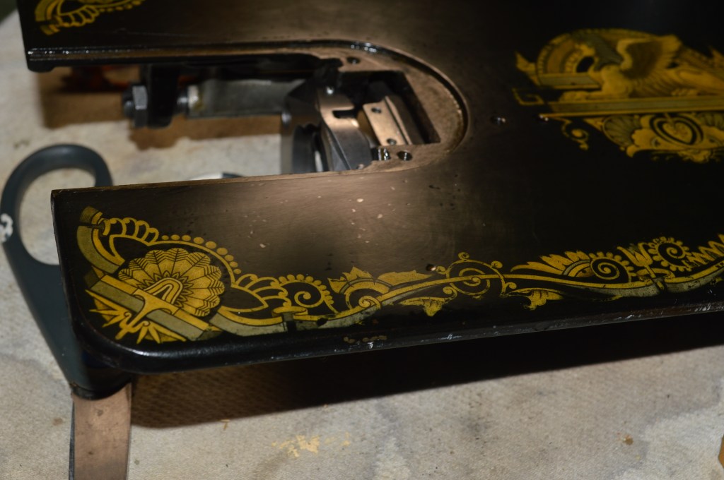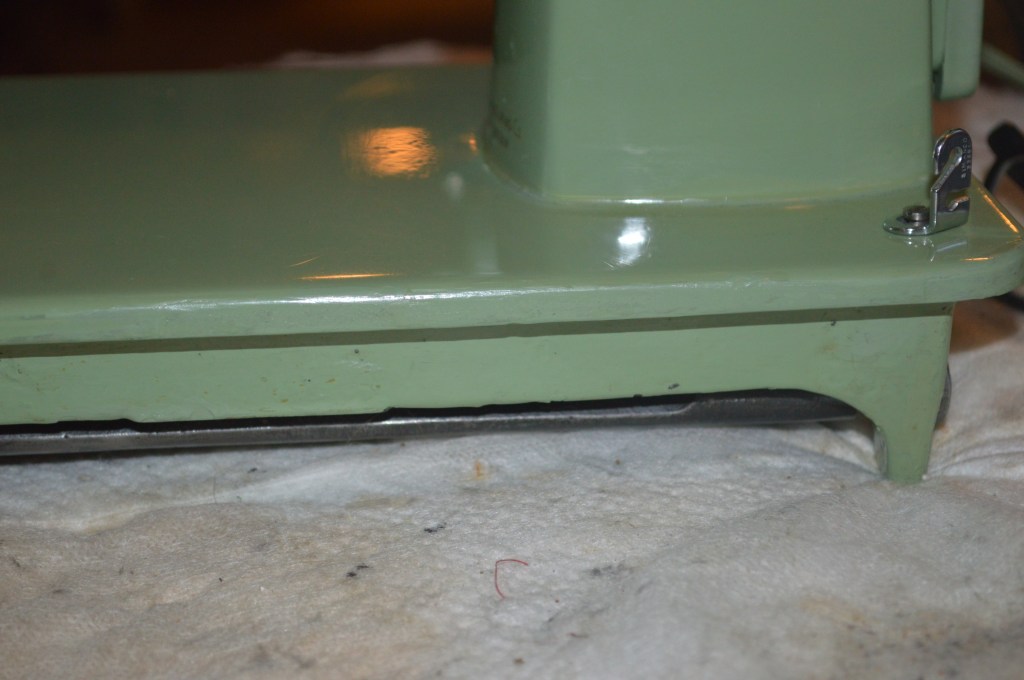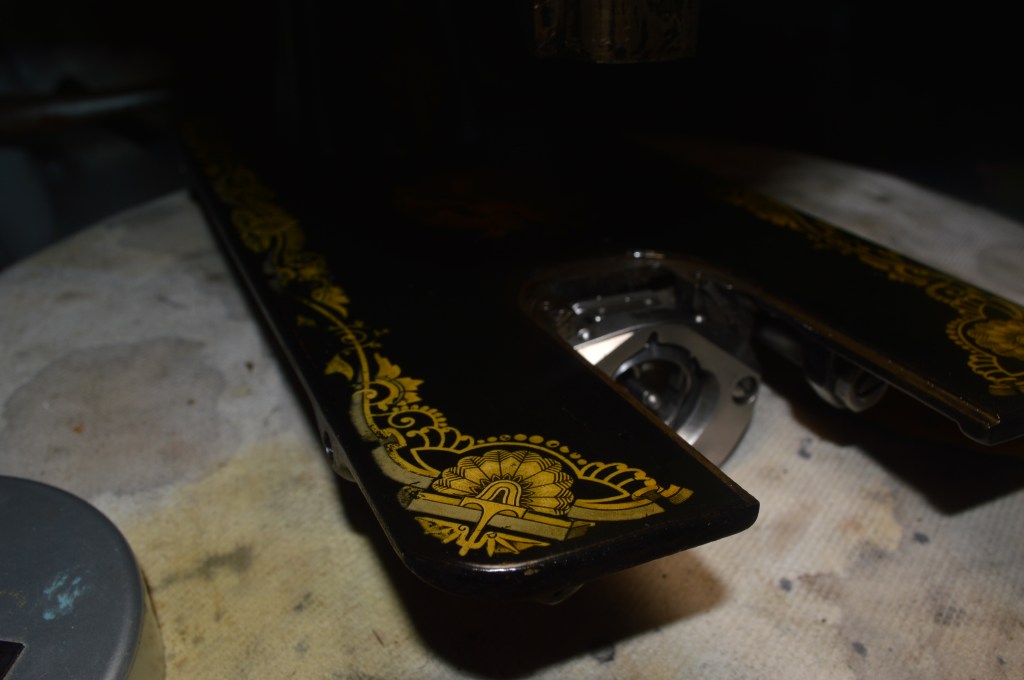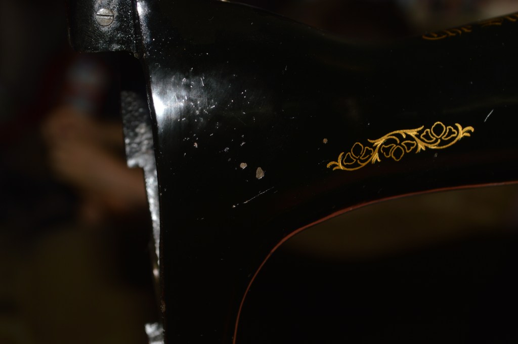 Anyway, she wanted a base for her machine, and asked me if the paint scars could be repaired in a restoration. I explained that it could be made much less obvious with paint matching and she decided she wanted the machine to sew well and look good as well. A mechanical restoration was in order and I promised to do the best I could with the paint repair. Not normally included in a mechanical restoration, I don’t atempt extensive paint repairs, but it was important to make the most of the cosmetic repair for the best outcome.