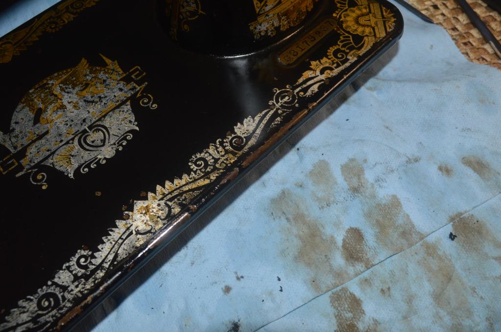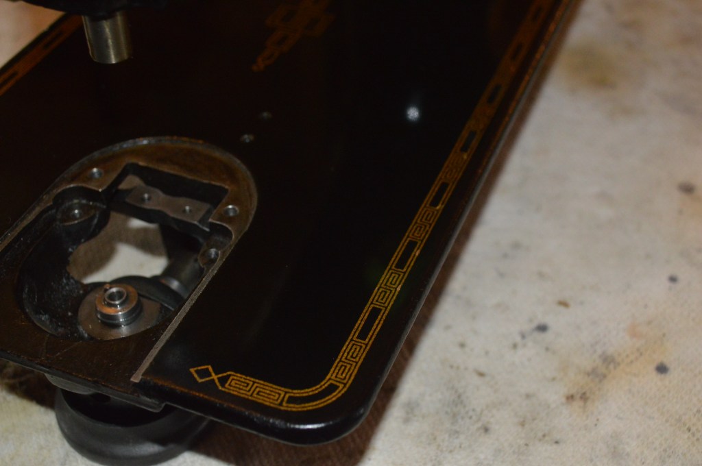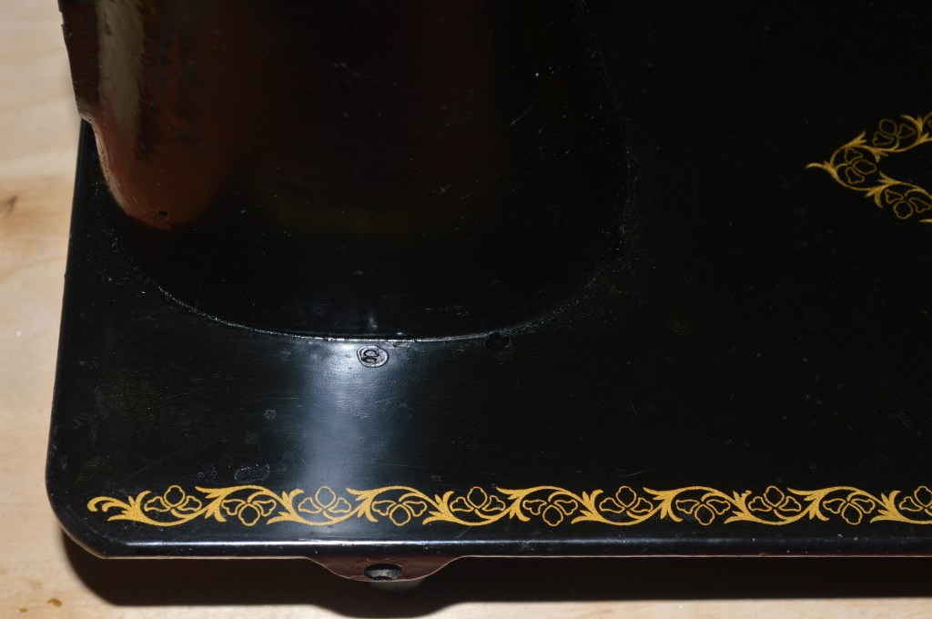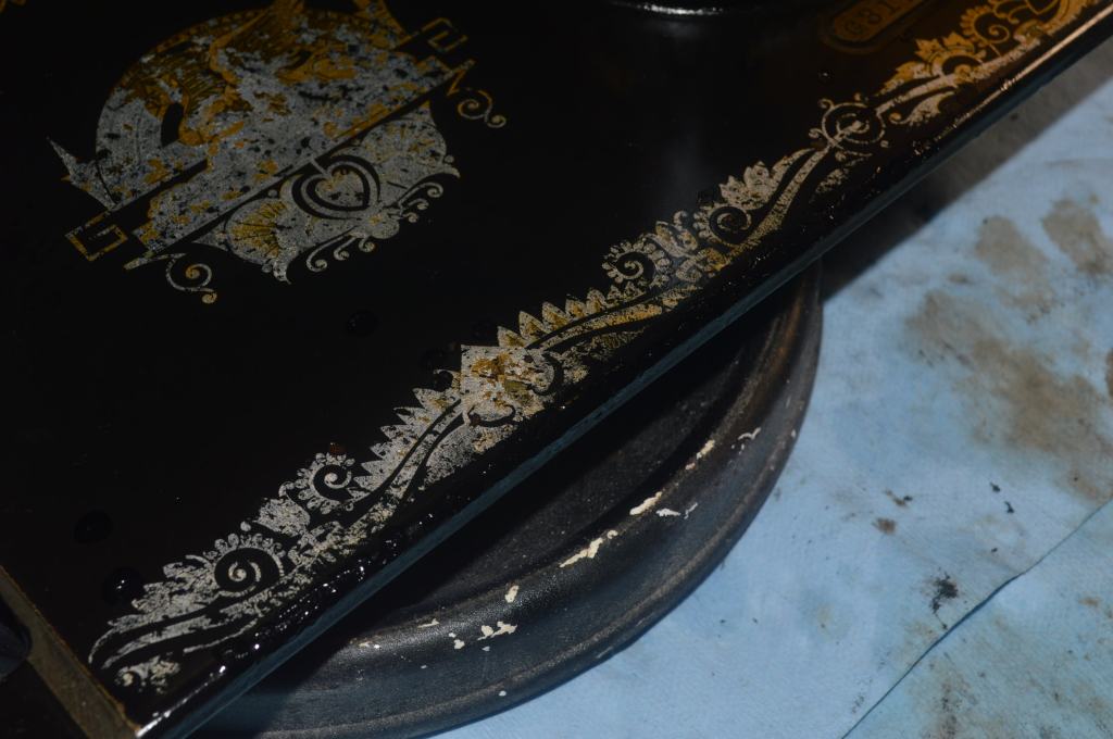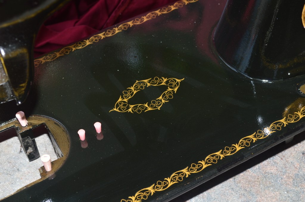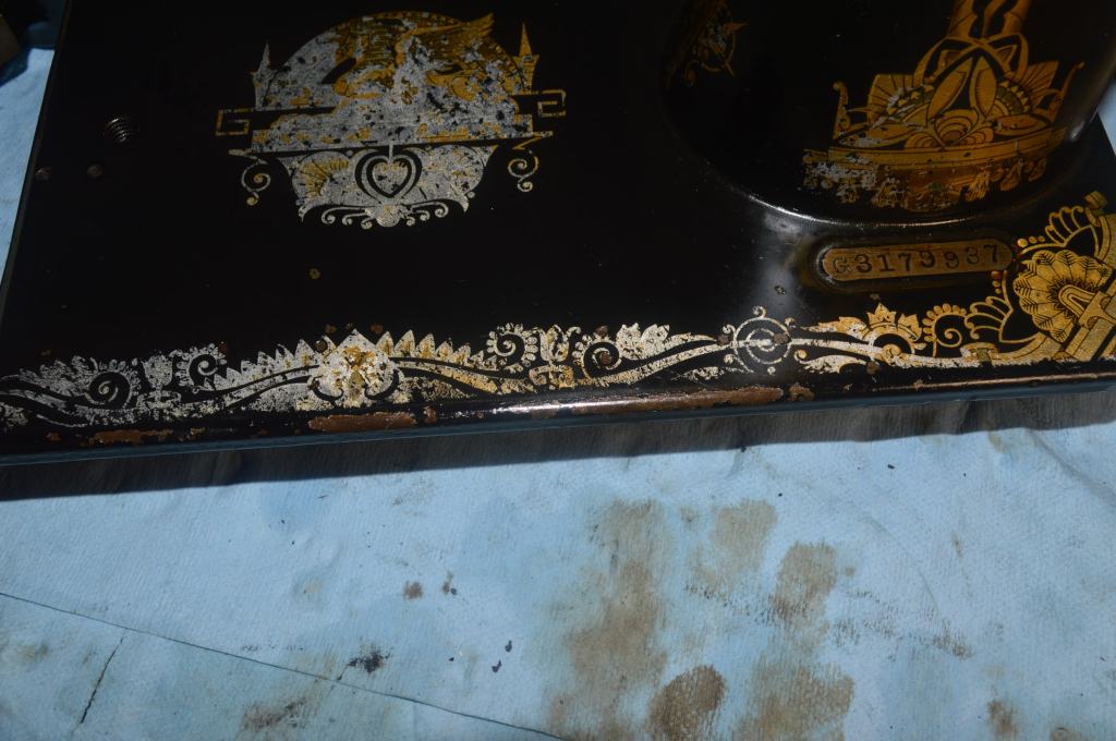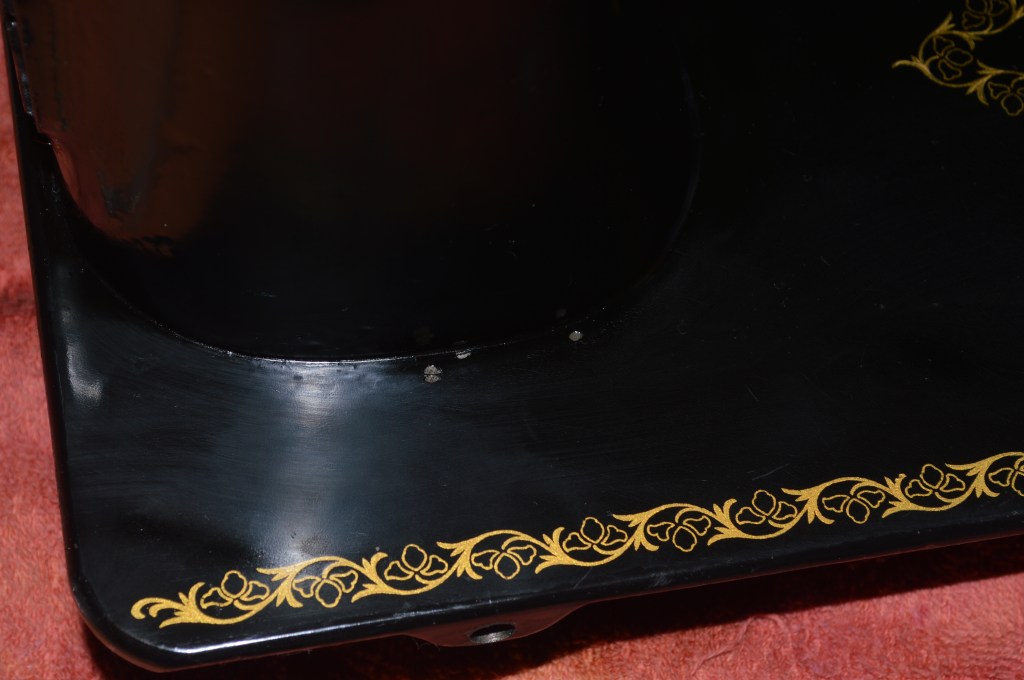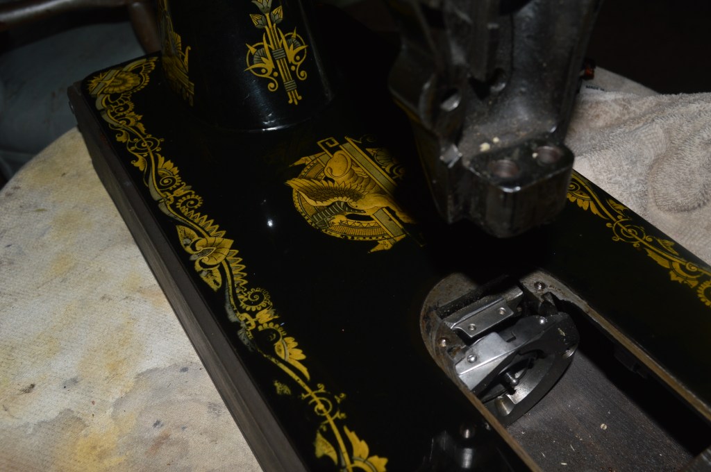 Anyway, she wanted a base for her machine, and asked me if the paint scars could be repaired in a restoration. I explained that it could be made much less obvious with paint matching and she decided she wanted the machine to sew well and look good as well. A mechanical restoration was in order and I promised to do the best I could with the paint repair. Not normally included in a mechanical restoration, I don’t atempt extensive paint repairs, but it was important to make the most of the cosmetic repair for the best outcome.