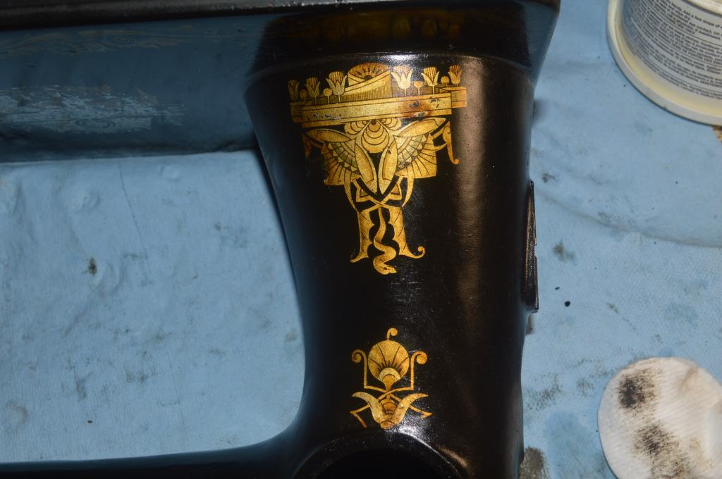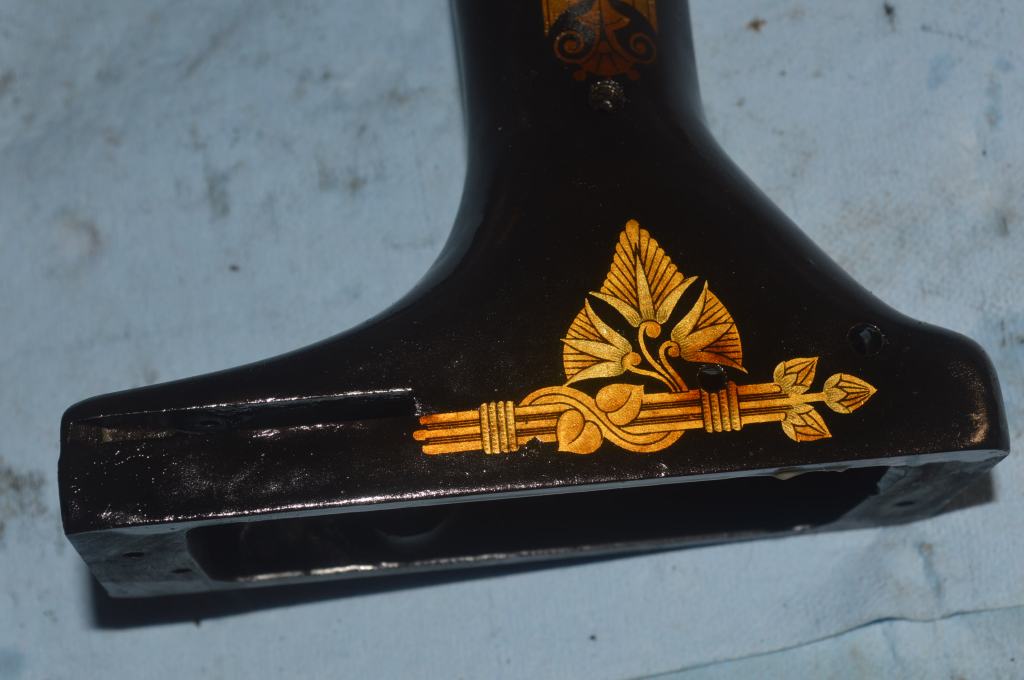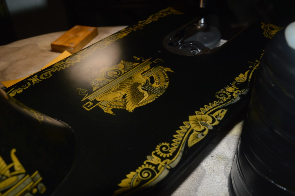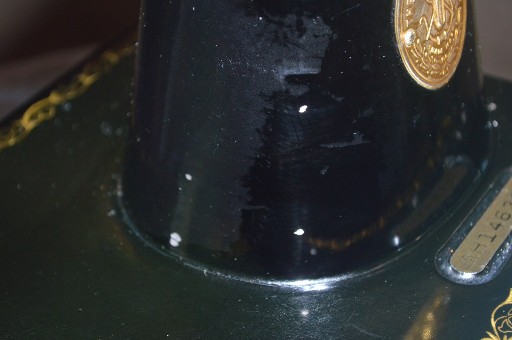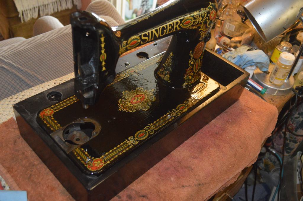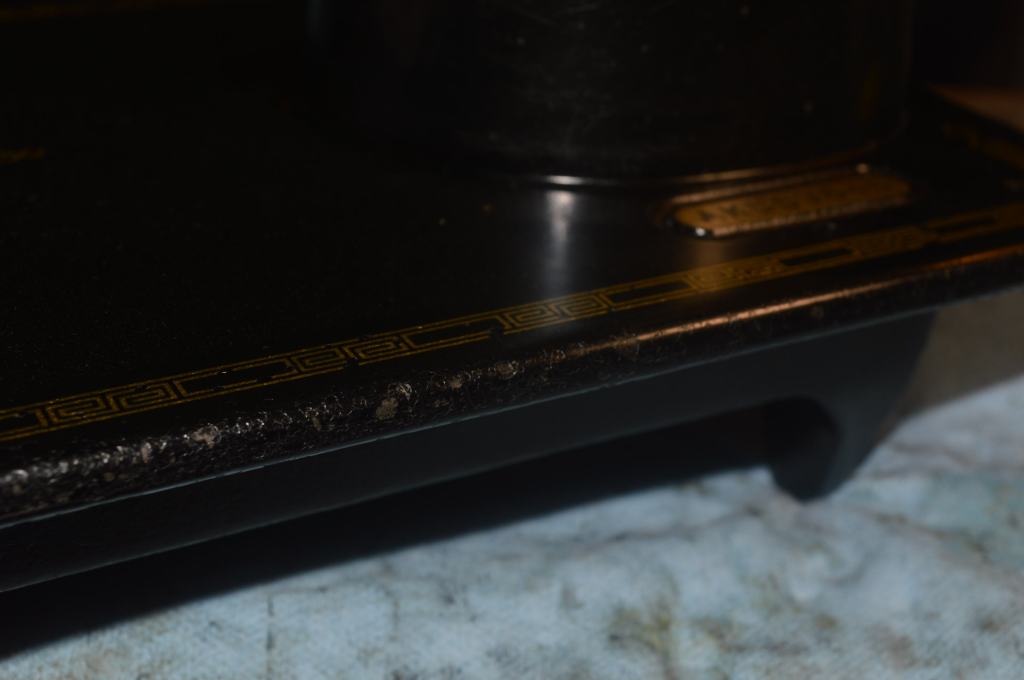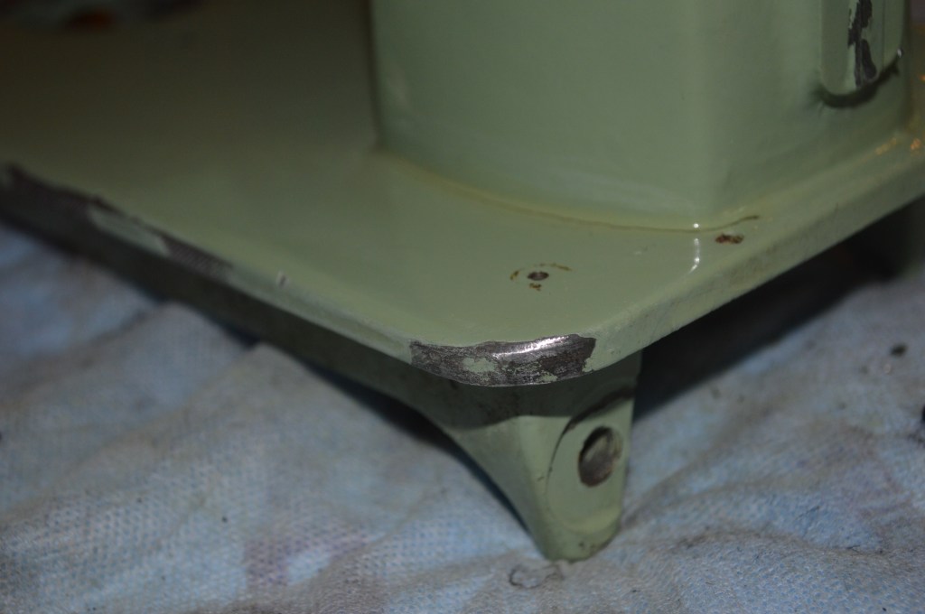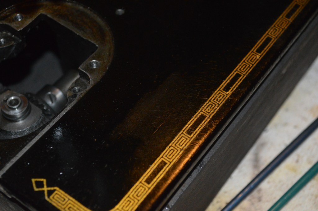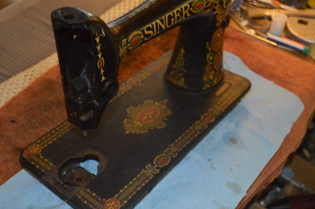Anyway, she wanted a base for her machine, and asked me if the paint scars could be repaired in a restoration. I explained that it could be made much less obvious with paint matching and she decided she wanted the machine to sew well and look good as well. A mechanical restoration was in order and I promised to do the best I could with the paint repair. Not normally included in a mechanical restoration, I don’t atempt extensive paint repairs, but it was important to make the most of the cosmetic repair for the best outcome.