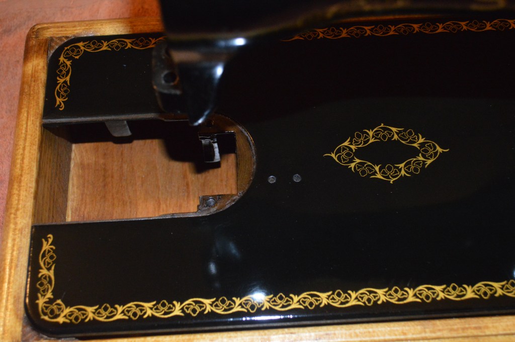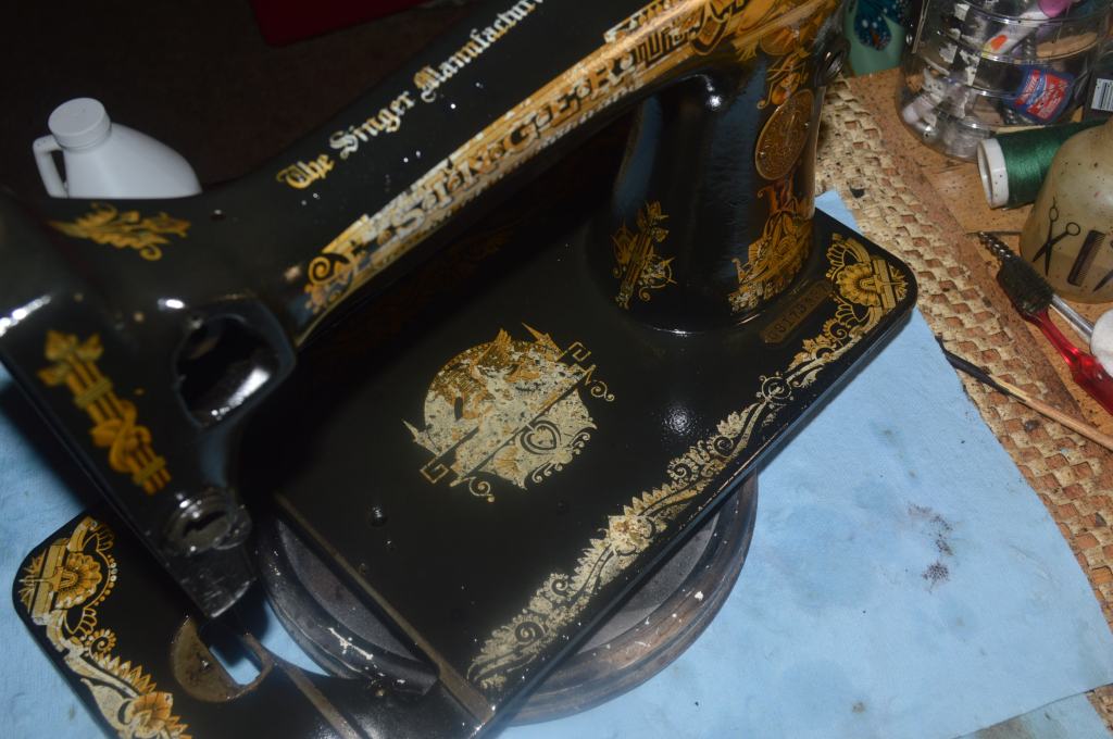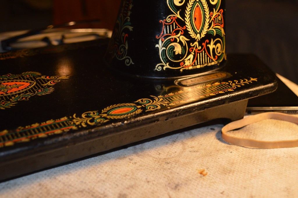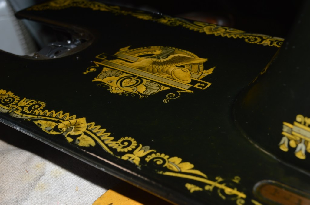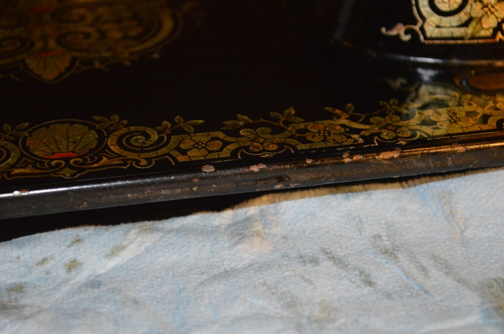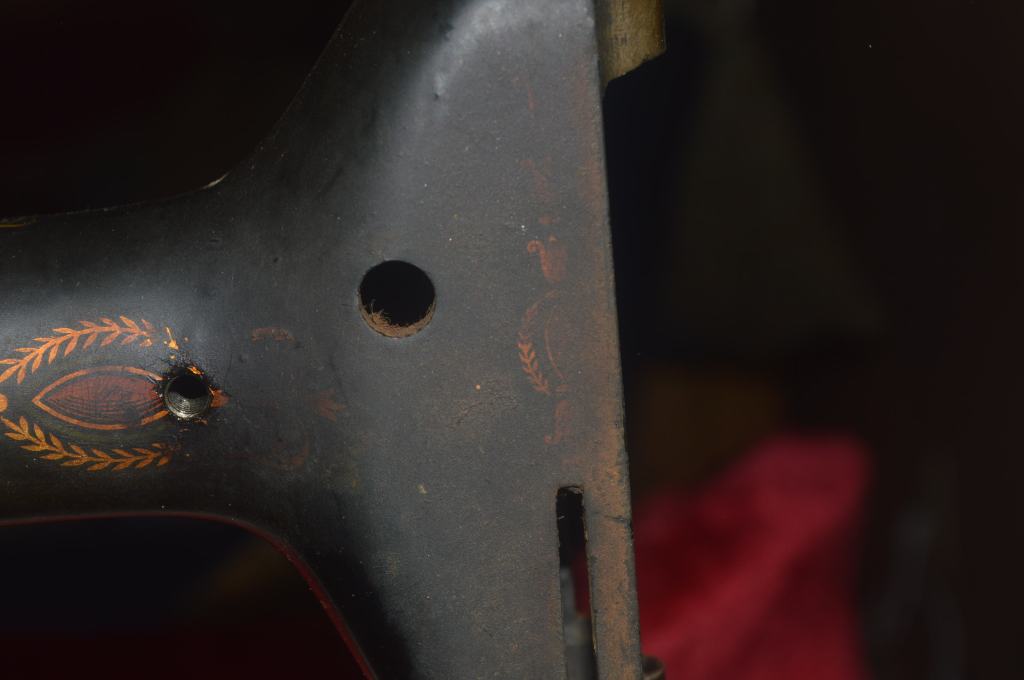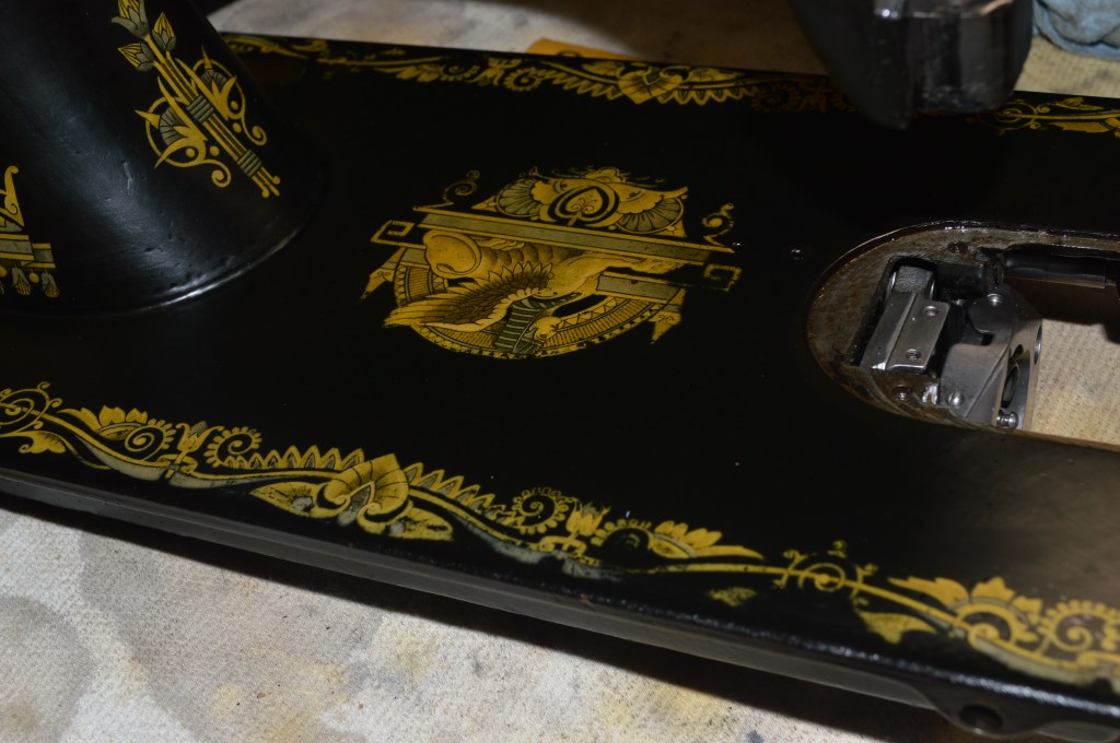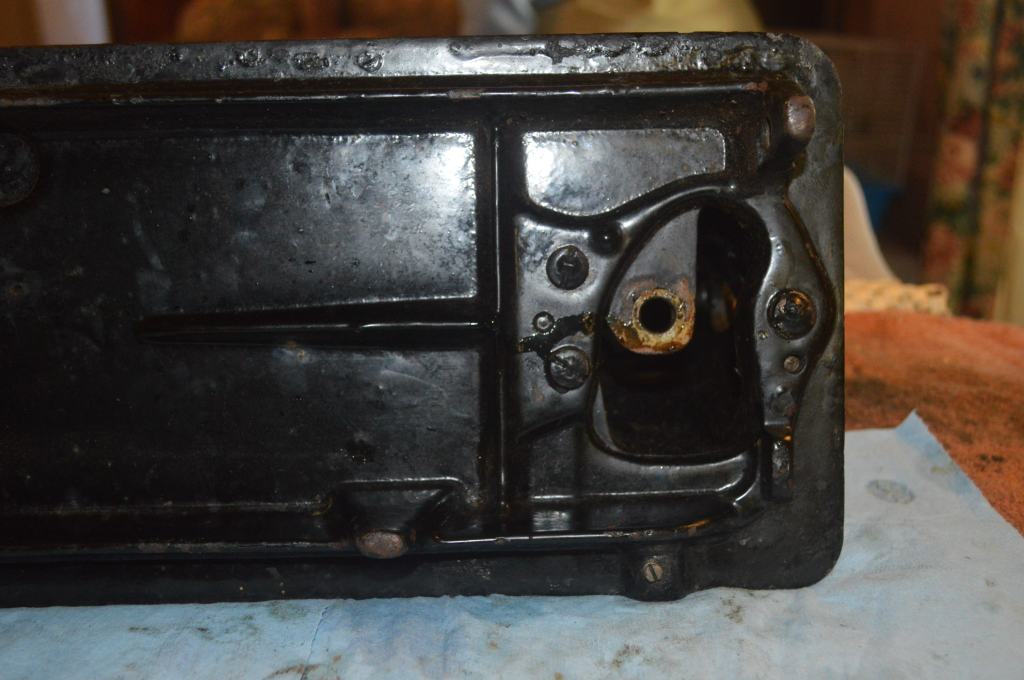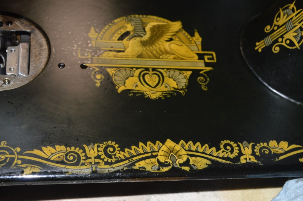 Anyway, she wanted a base for her machine, and asked me if the paint scars could be repaired in a restoration. I explained that it could be made much less obvious with paint matching and she decided she wanted the machine to sew well and look good as well. A mechanical restoration was in order and I promised to do the best I could with the paint repair. Not normally included in a mechanical restoration, I don’t atempt extensive paint repairs, but it was important to make the most of the cosmetic repair for the best outcome.