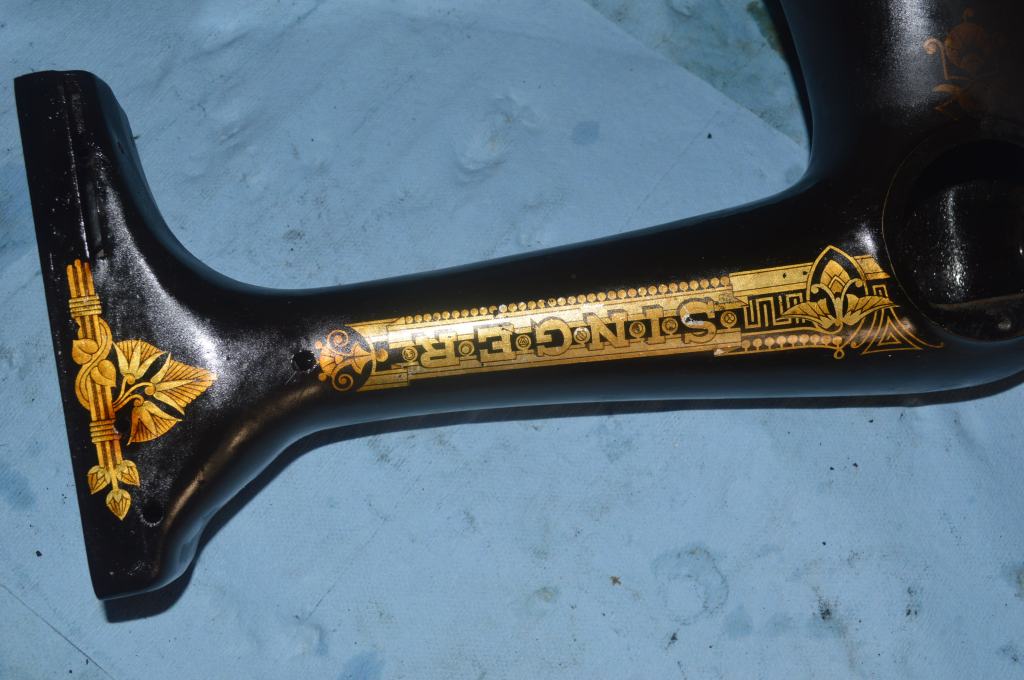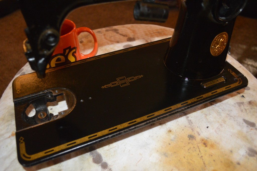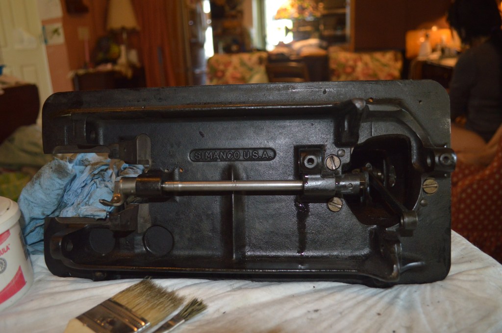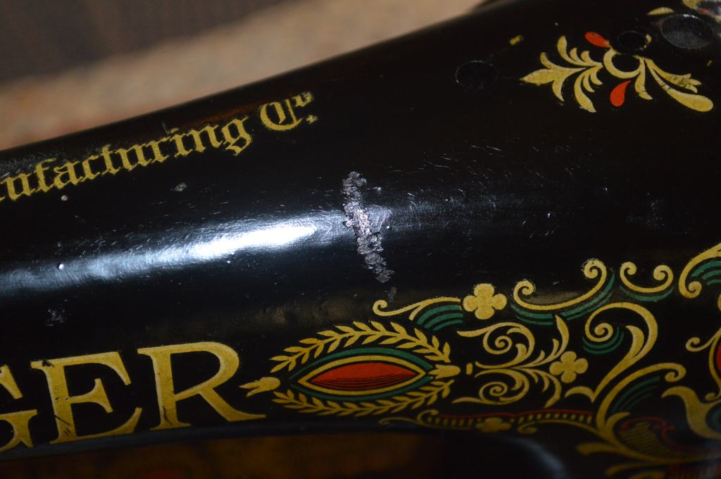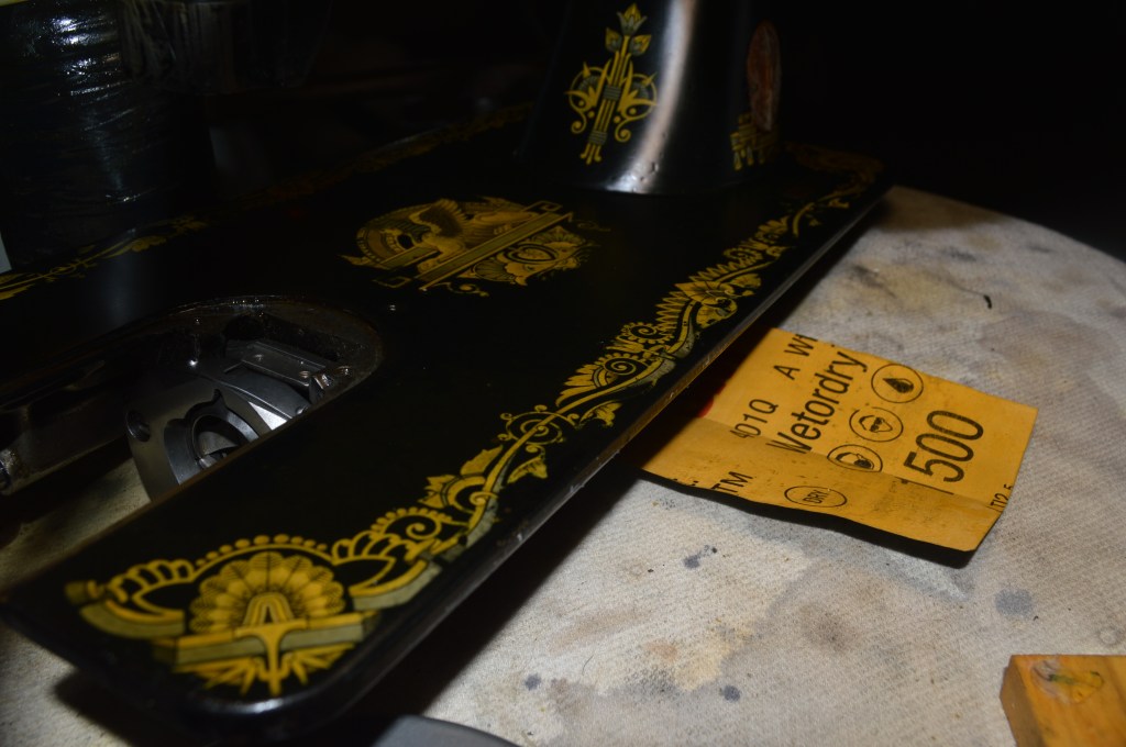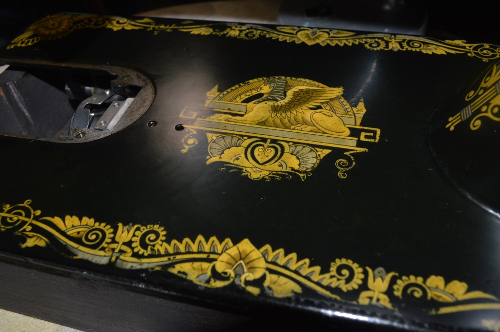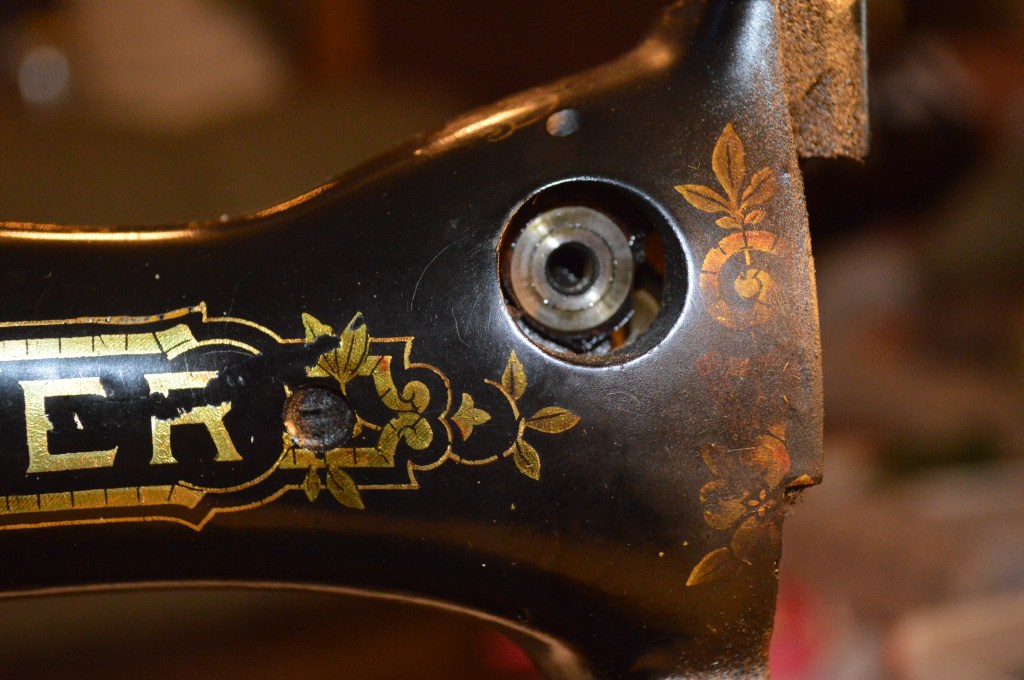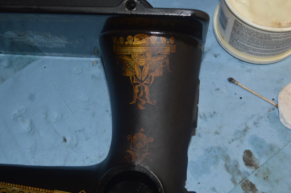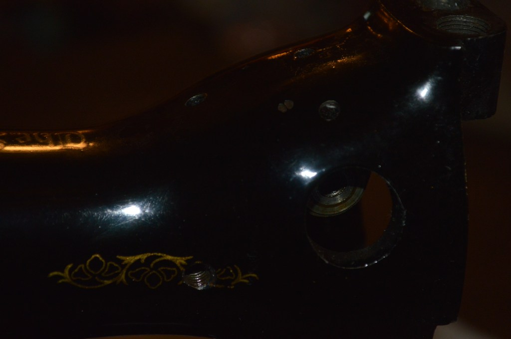 Anyway, she wanted a base for her machine, and asked me if the paint scars could be repaired in a restoration. I explained that it could be made much less obvious with paint matching and she decided she wanted the machine to sew well and look good as well. A mechanical restoration was in order and I promised to do the best I could with the paint repair. Not normally included in a mechanical restoration, I don’t atempt extensive paint repairs, but it was important to make the most of the cosmetic repair for the best outcome.