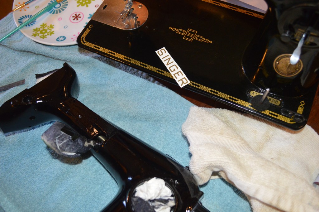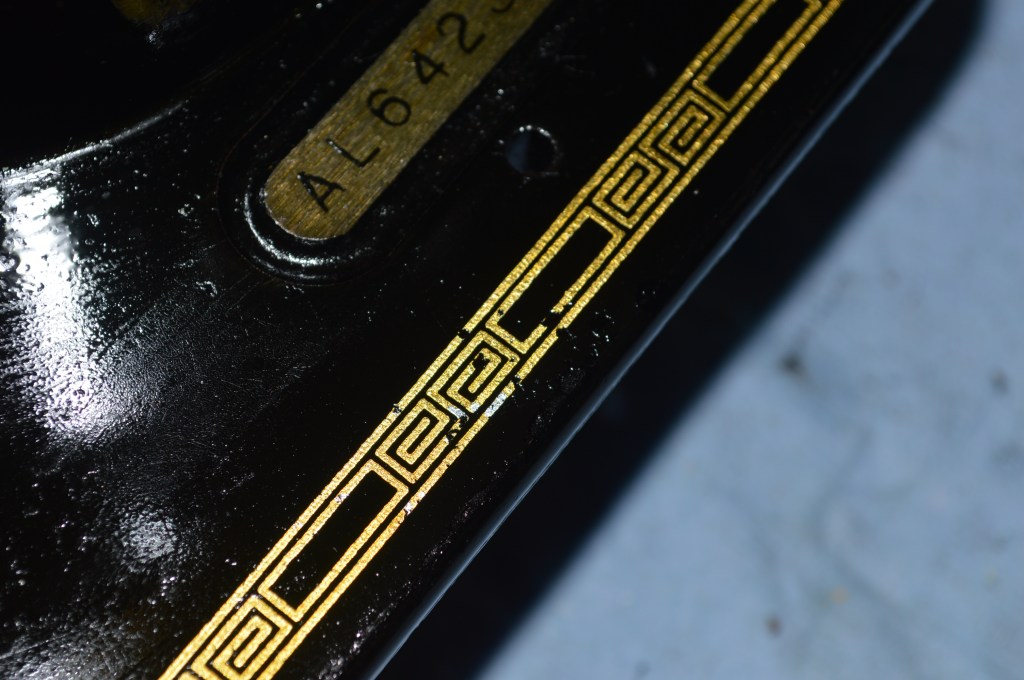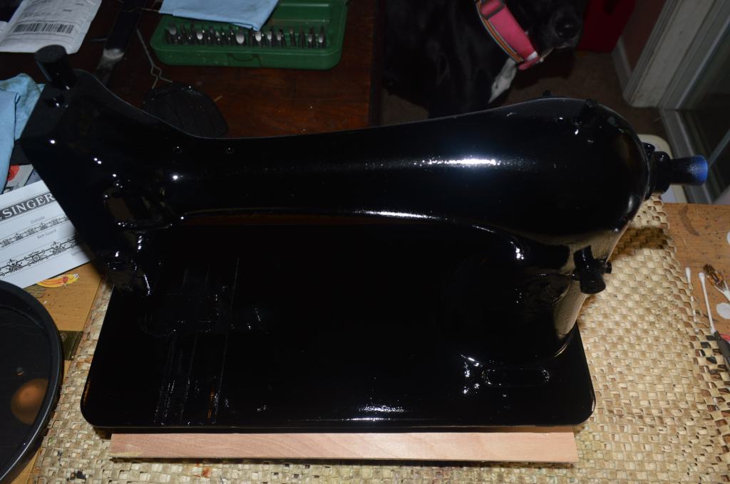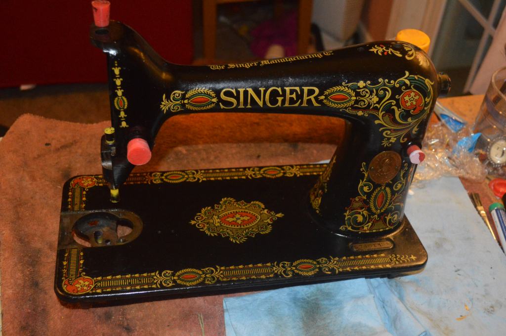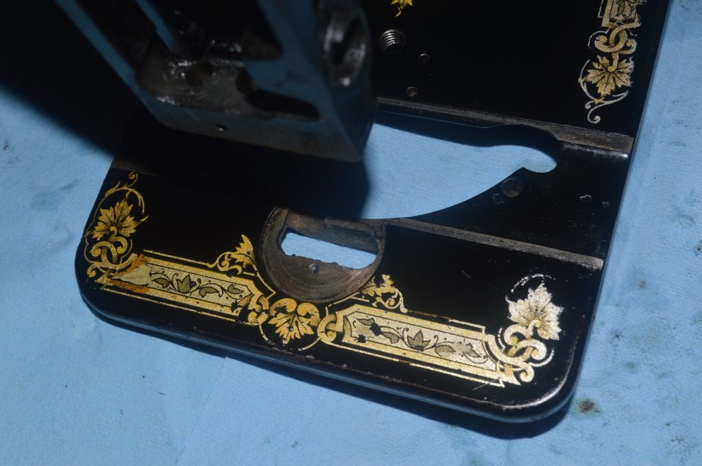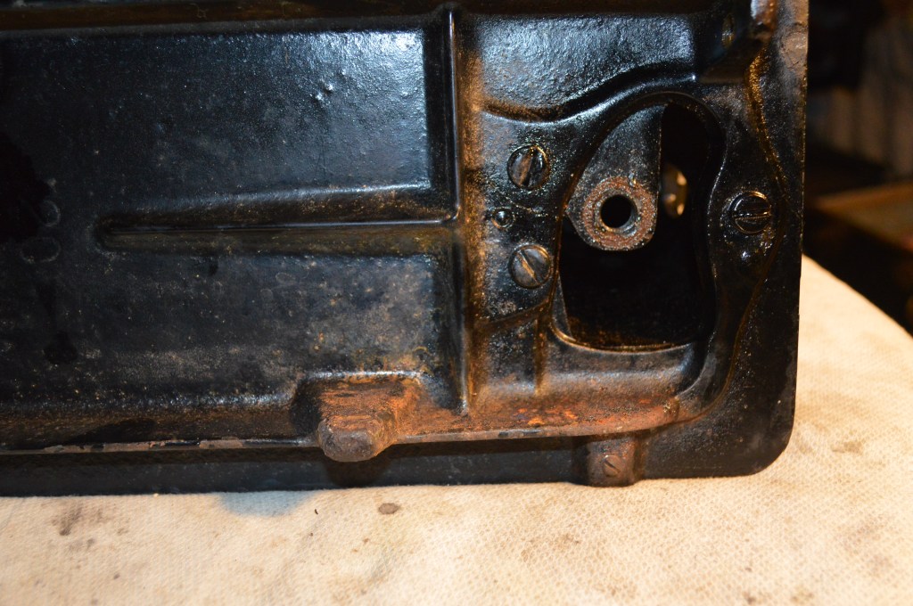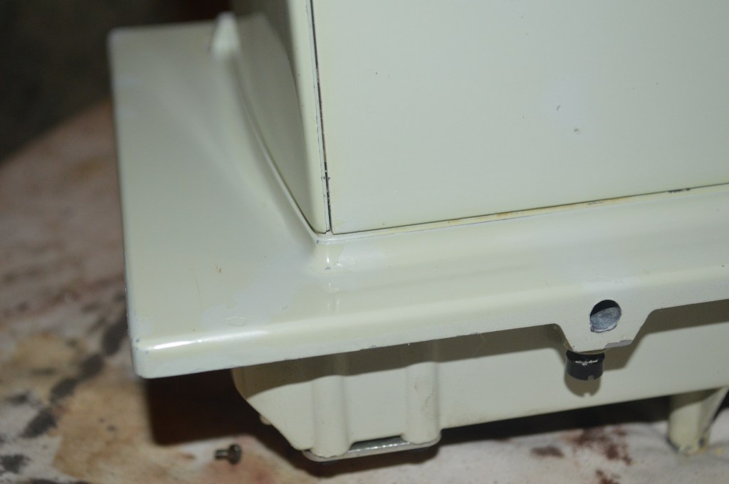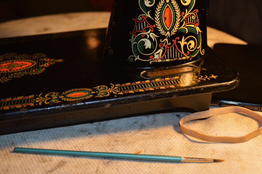Anyway, she wanted a base for her machine, and asked me if the paint scars could be repaired in a restoration. I explained that it could be made much less obvious with paint matching and she decided she wanted the machine to sew well and look good as well. A mechanical restoration was in order and I promised to do the best I could with the paint repair. Not normally included in a mechanical restoration, I don’t atempt extensive paint repairs, but it was important to make the most of the cosmetic repair for the best outcome.