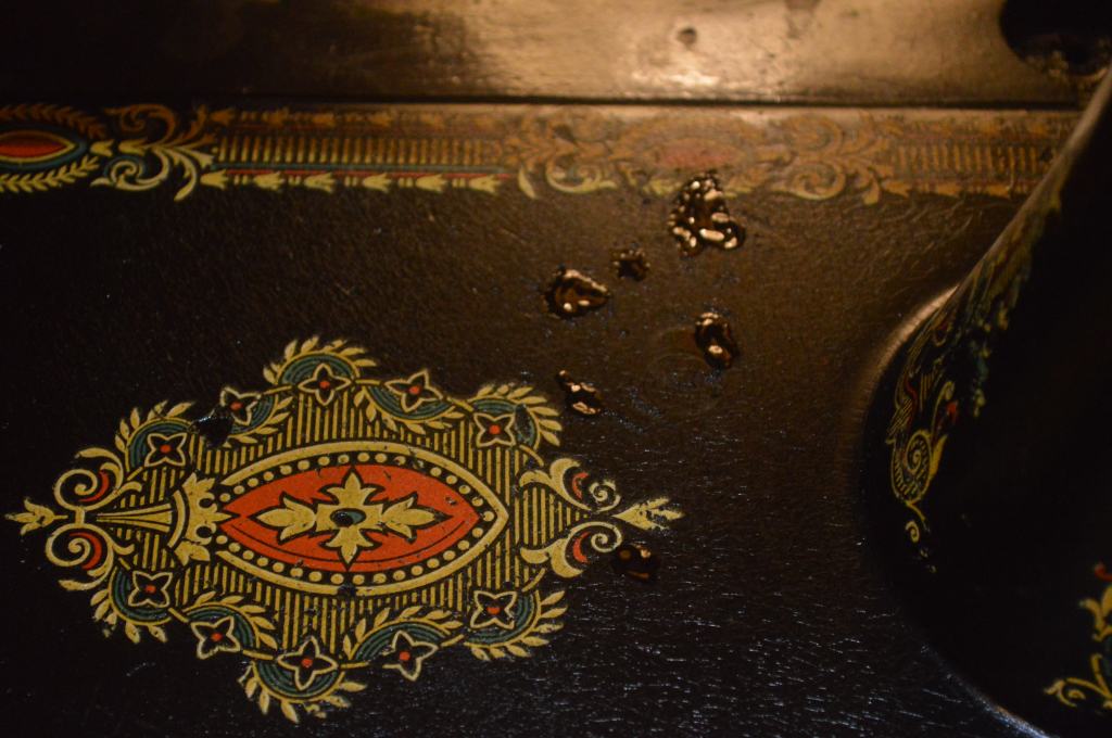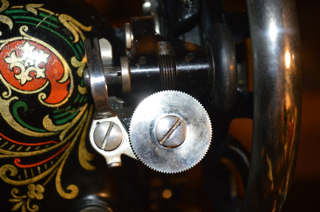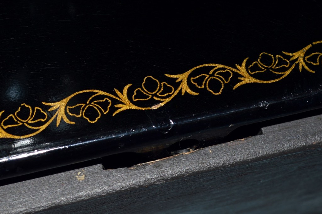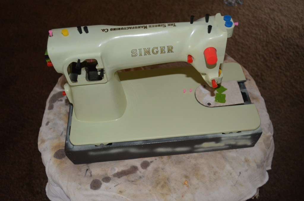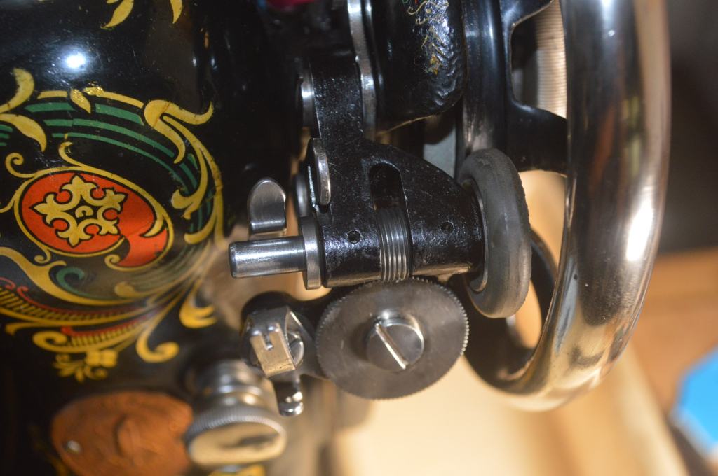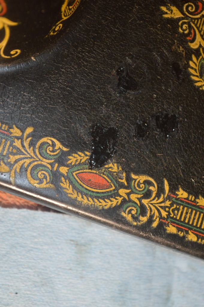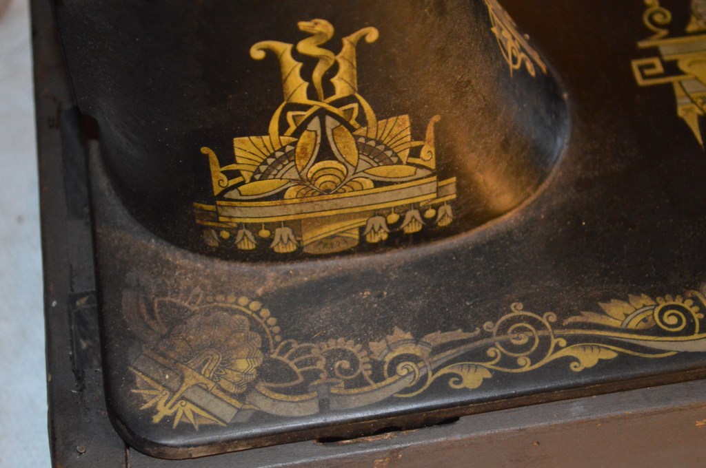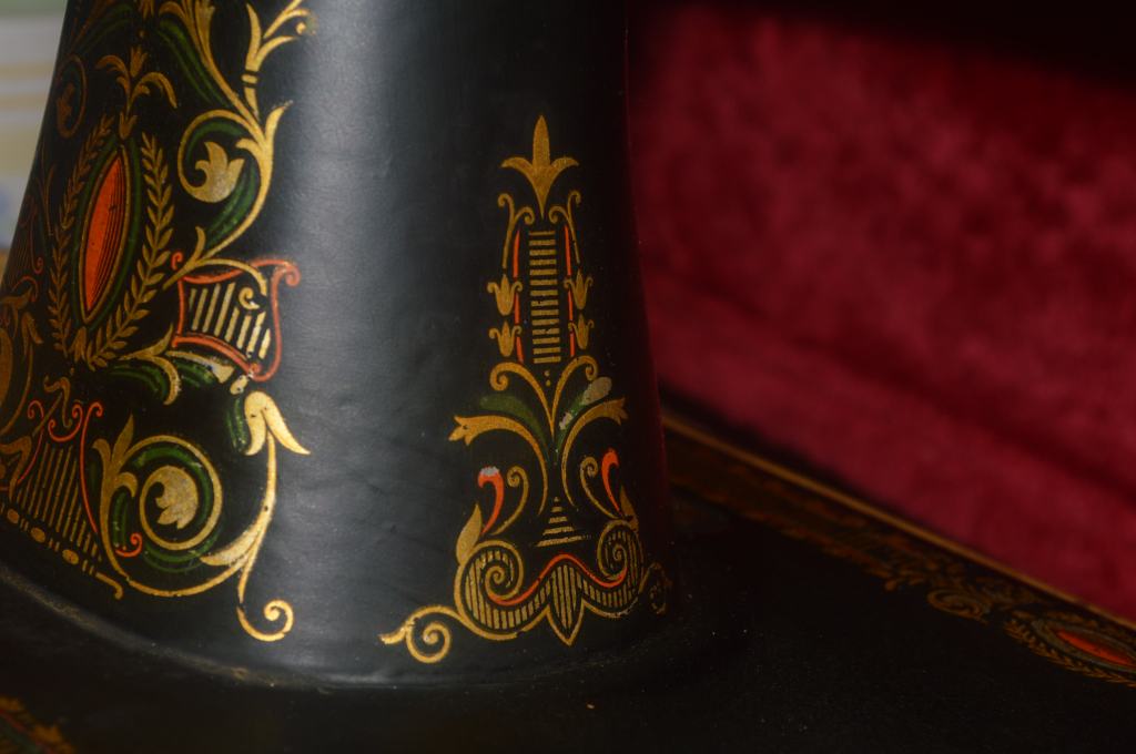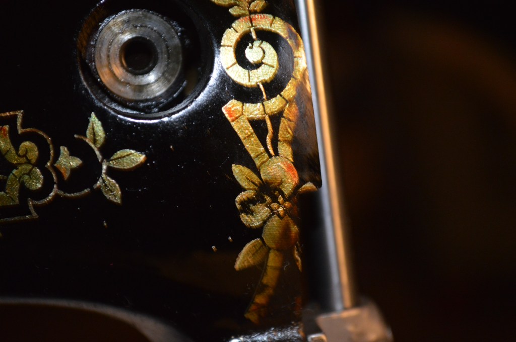 Anyway, she wanted a base for her machine, and asked me if the paint scars could be repaired in a restoration. I explained that it could be made much less obvious with paint matching and she decided she wanted the machine to sew well and look good as well. A mechanical restoration was in order and I promised to do the best I could with the paint repair. Not normally included in a mechanical restoration, I don’t atempt extensive paint repairs, but it was important to make the most of the cosmetic repair for the best outcome.