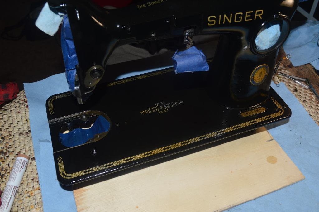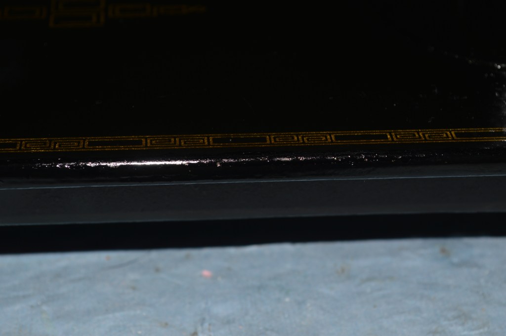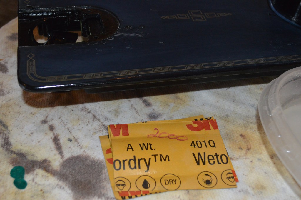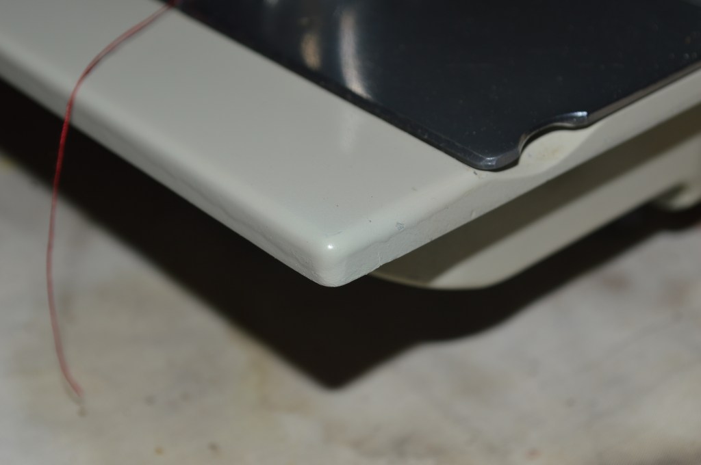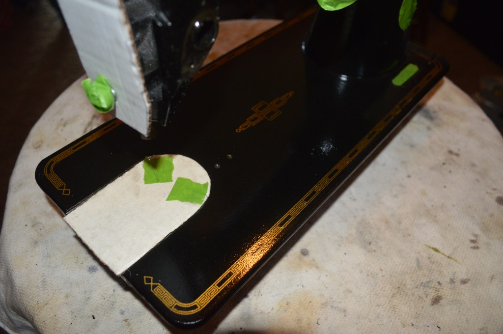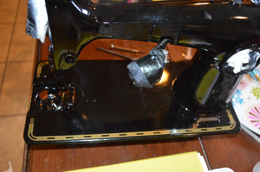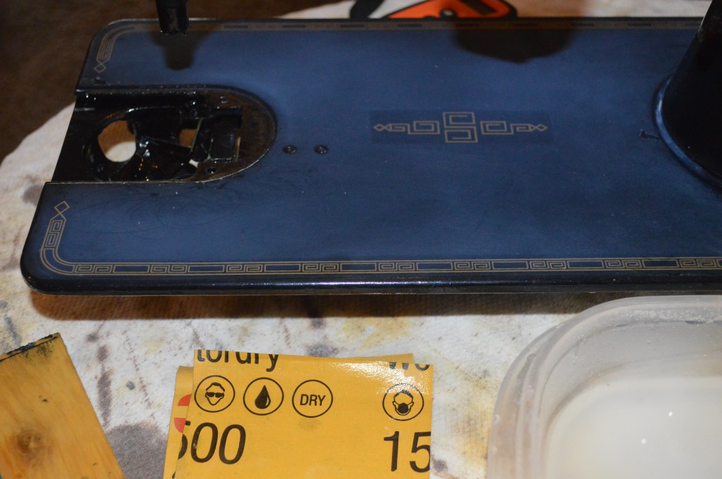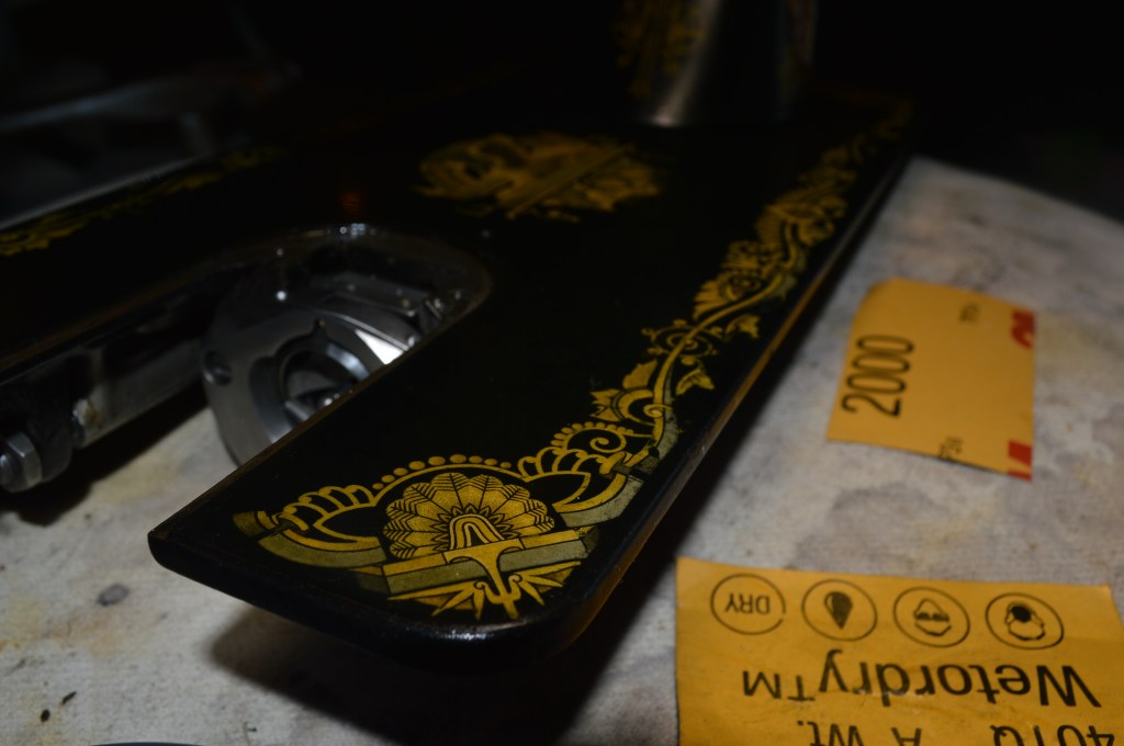 The scars on the sewing machine arm are too big to get a nearly invisible repair. Fortunately, the location is such that they are not “in your face” when seated in front of the machine. Paint matching will effectively make them far less obvious. The chips on the bed are another story.