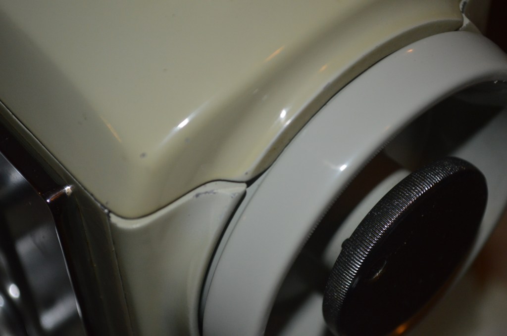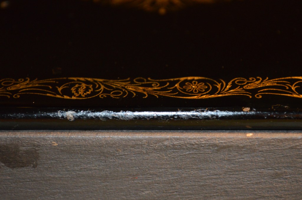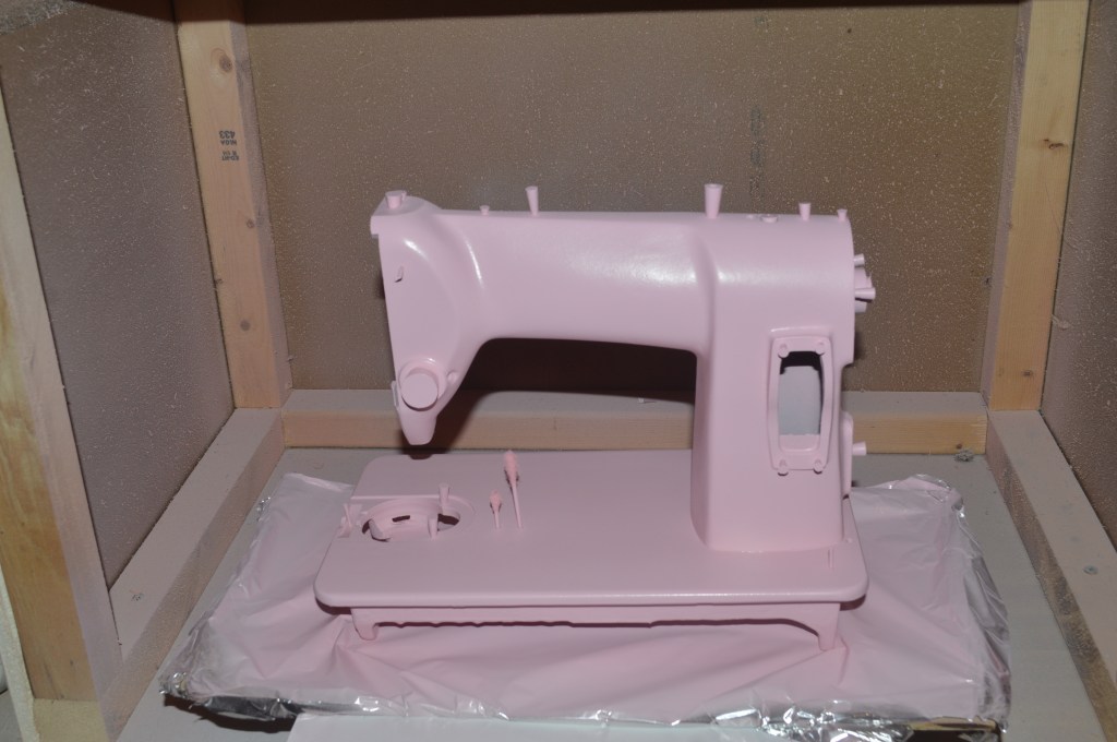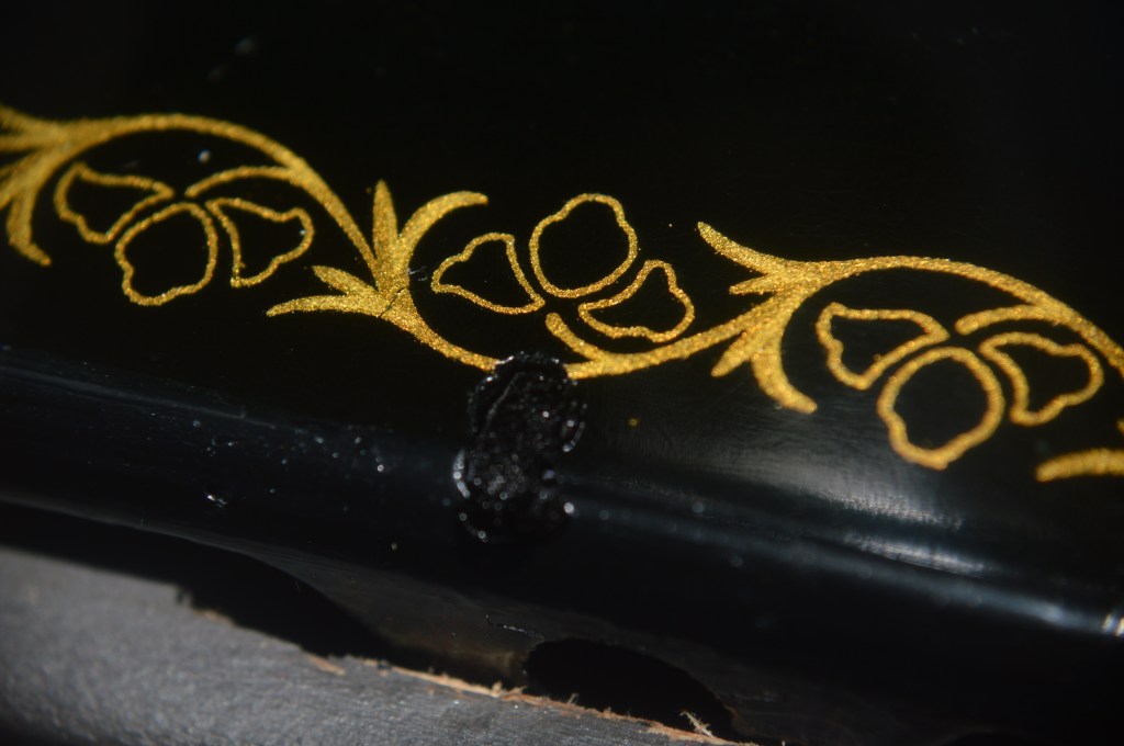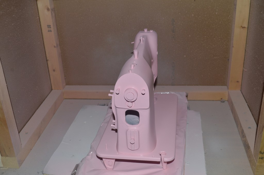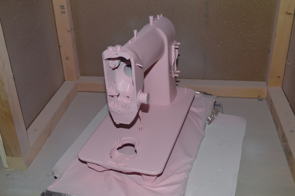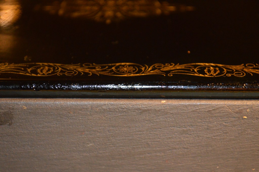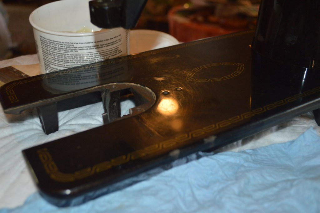 The scars on the sewing machine arm are too big to get a nearly invisible repair. Fortunately, the location is such that they are not “in your face” when seated in front of the machine. Paint matching will effectively make them far less obvious. The chips on the bed are another story.
