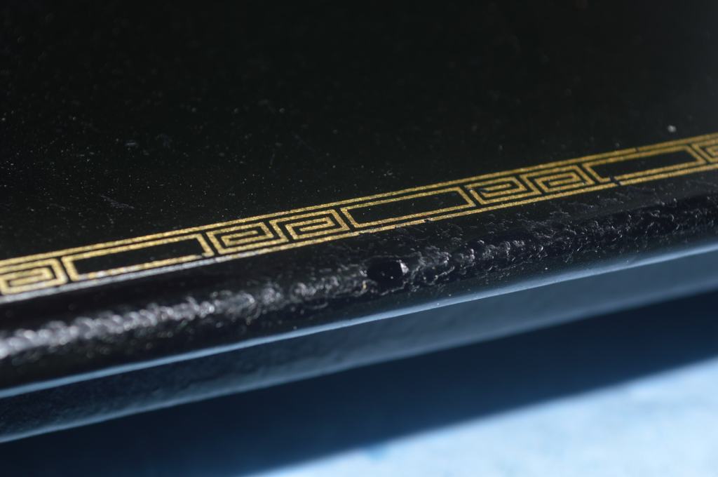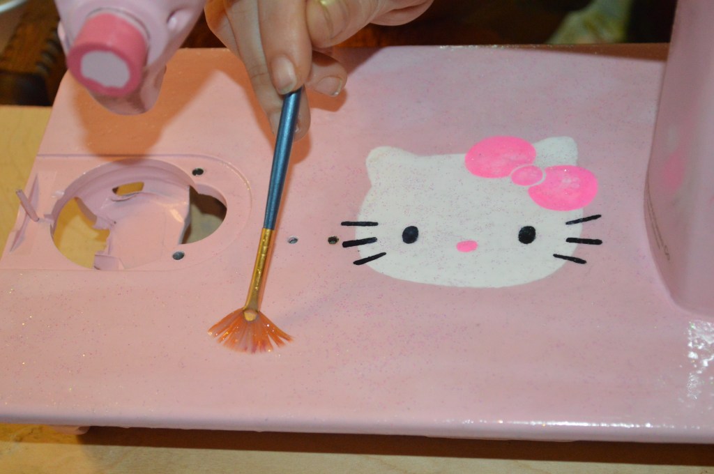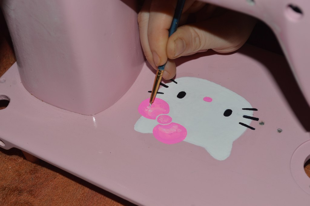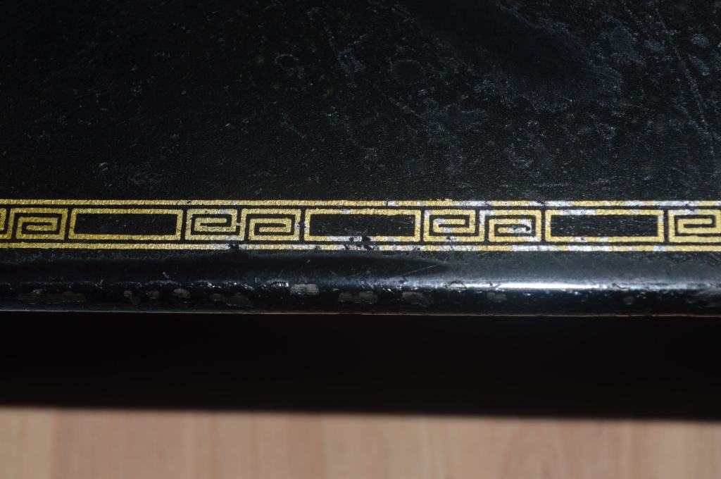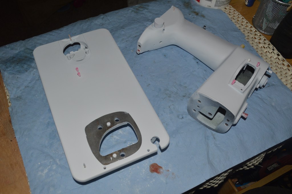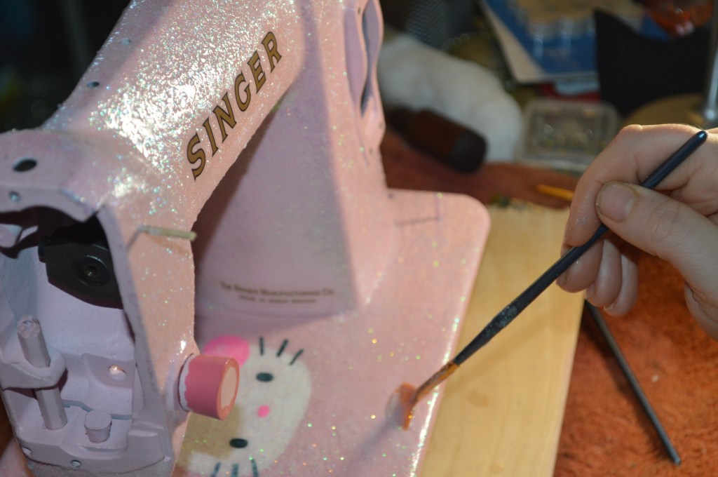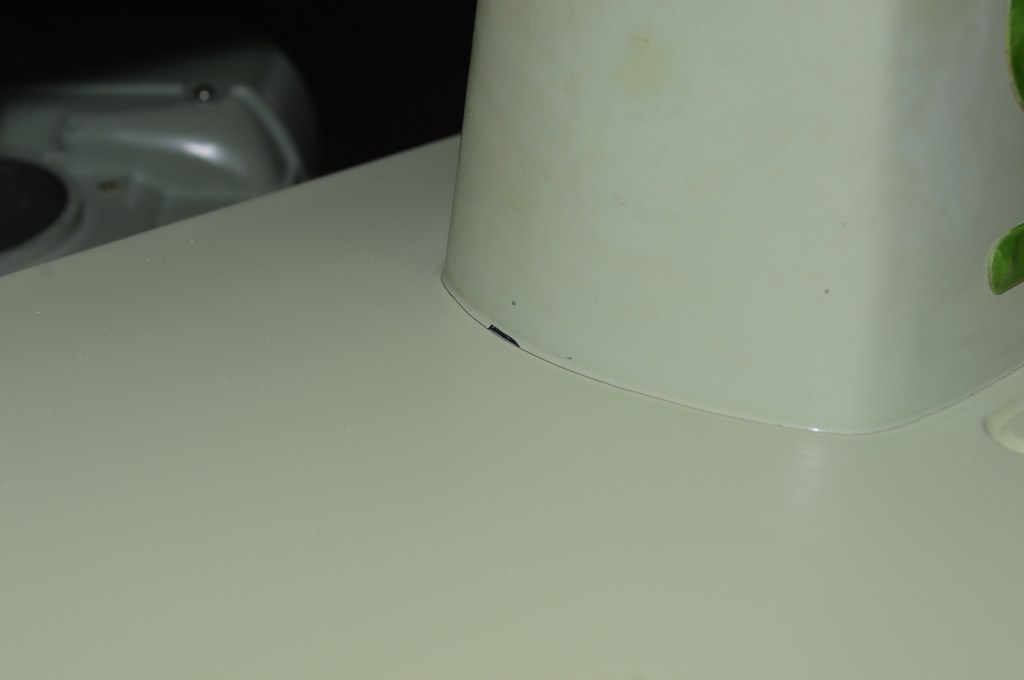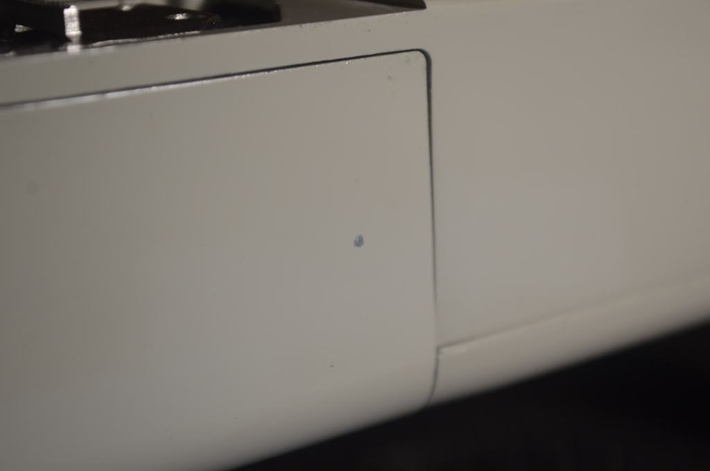 The scars on the sewing machine arm are too big to get a nearly invisible repair. Fortunately, the location is such that they are not “in your face” when seated in front of the machine. Paint matching will effectively make them far less obvious. The chips on the bed are another story.