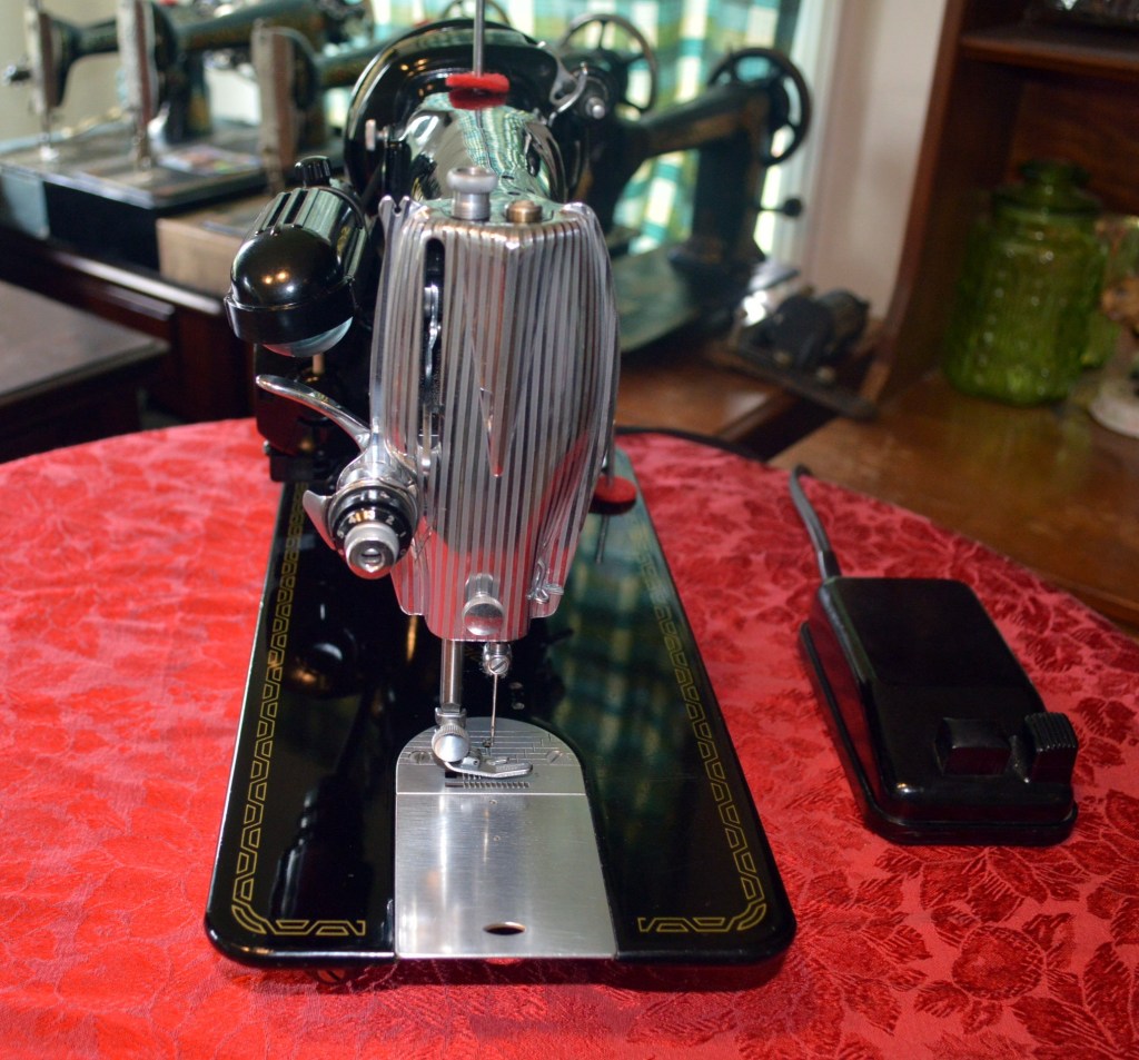 Looking for a similarly restored quality vintage all metal sewing machine for your sewing room? Let us know! We specialize in custom orders and are happy to locate and restore the “perfect” machine for you!