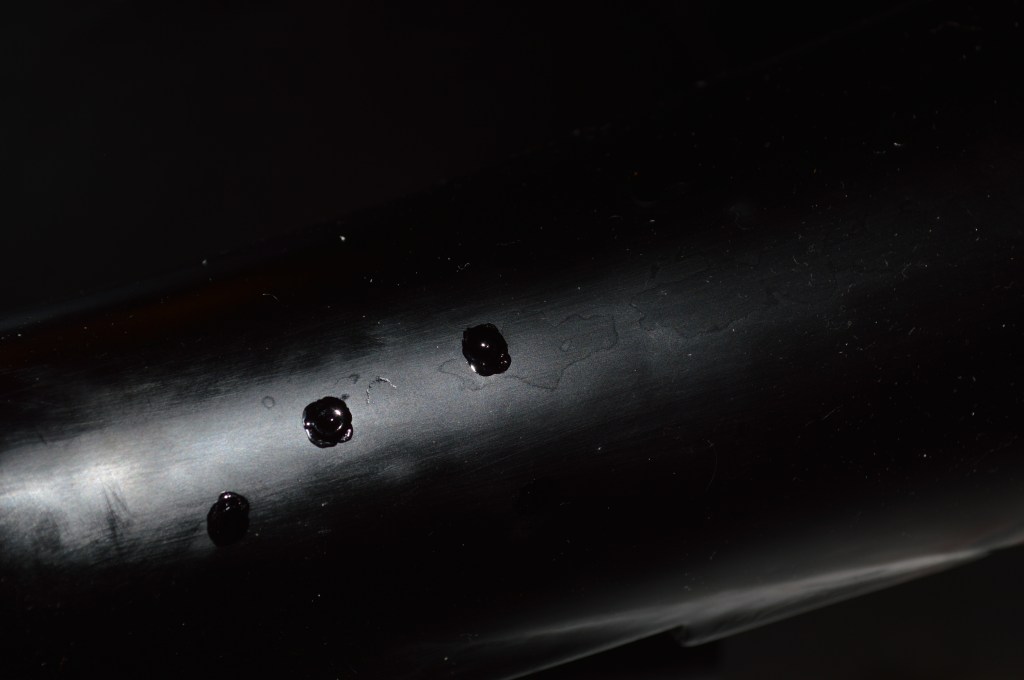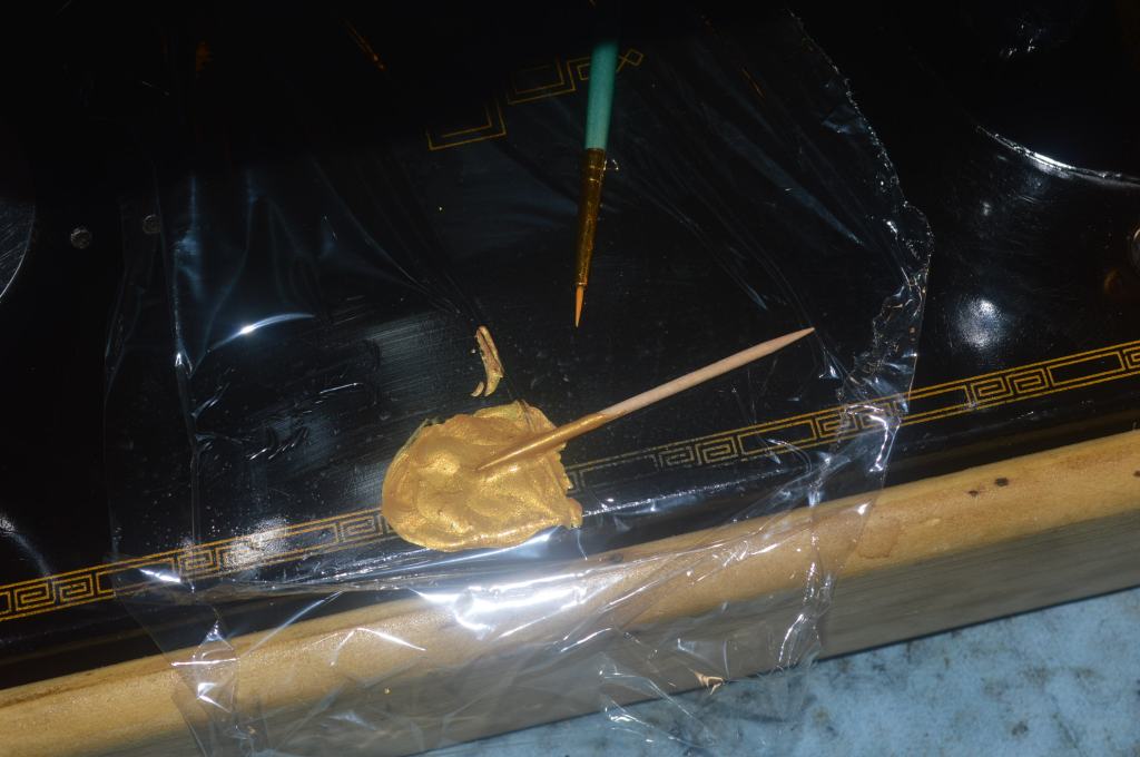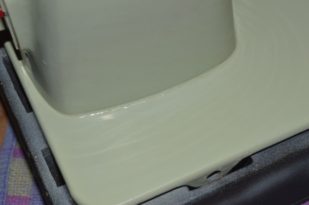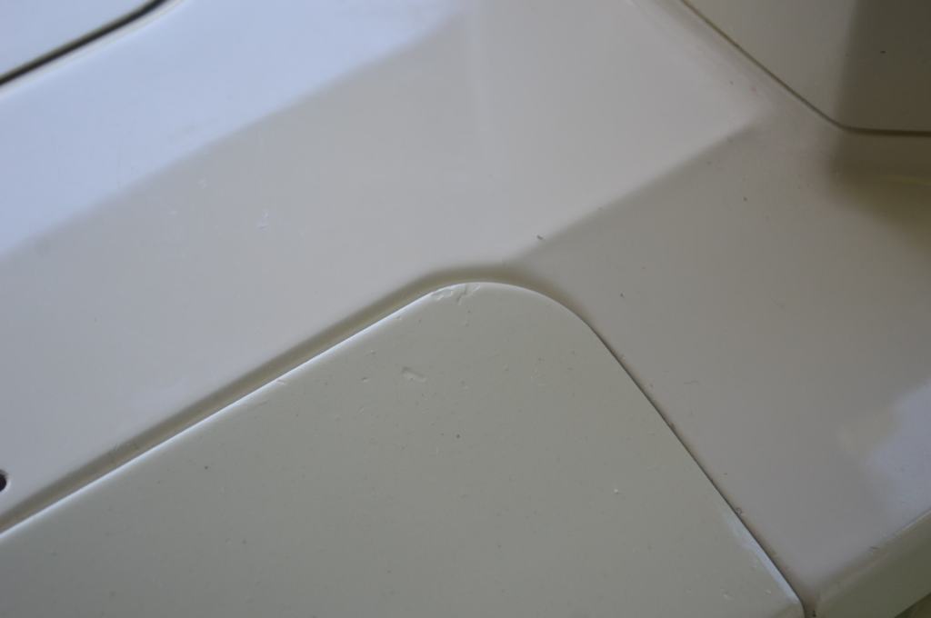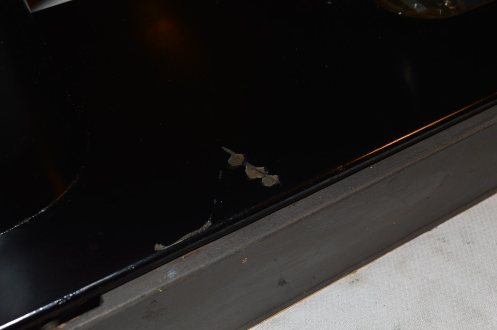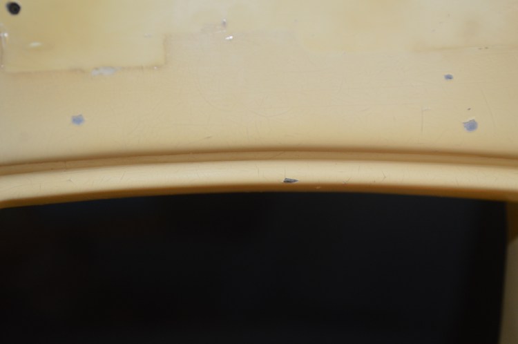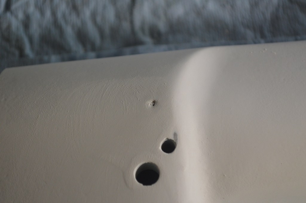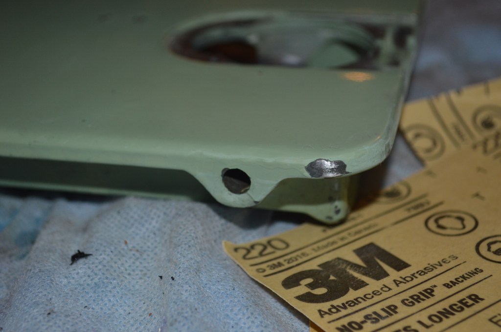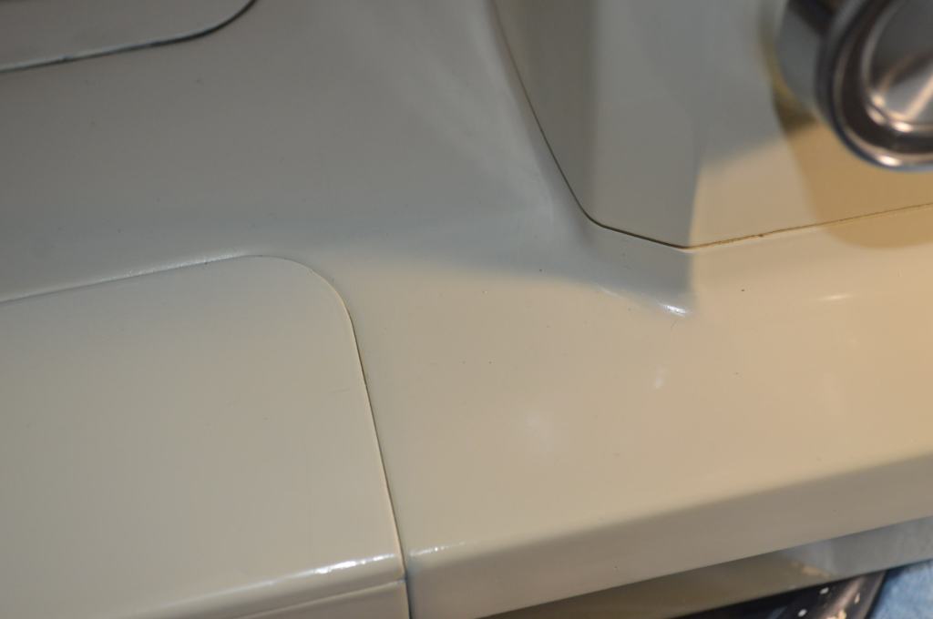 The other repairs are a challenge. The bed chips need to be filled and then rubbed out flush to the bed. This required eight applications of paint to fill the chip, sanding the repair flush with the bed, and then glase polishing to complete the repair. Each application was allowed to dry for one day before the next was applied. There is no rush though, there is plenty to do.