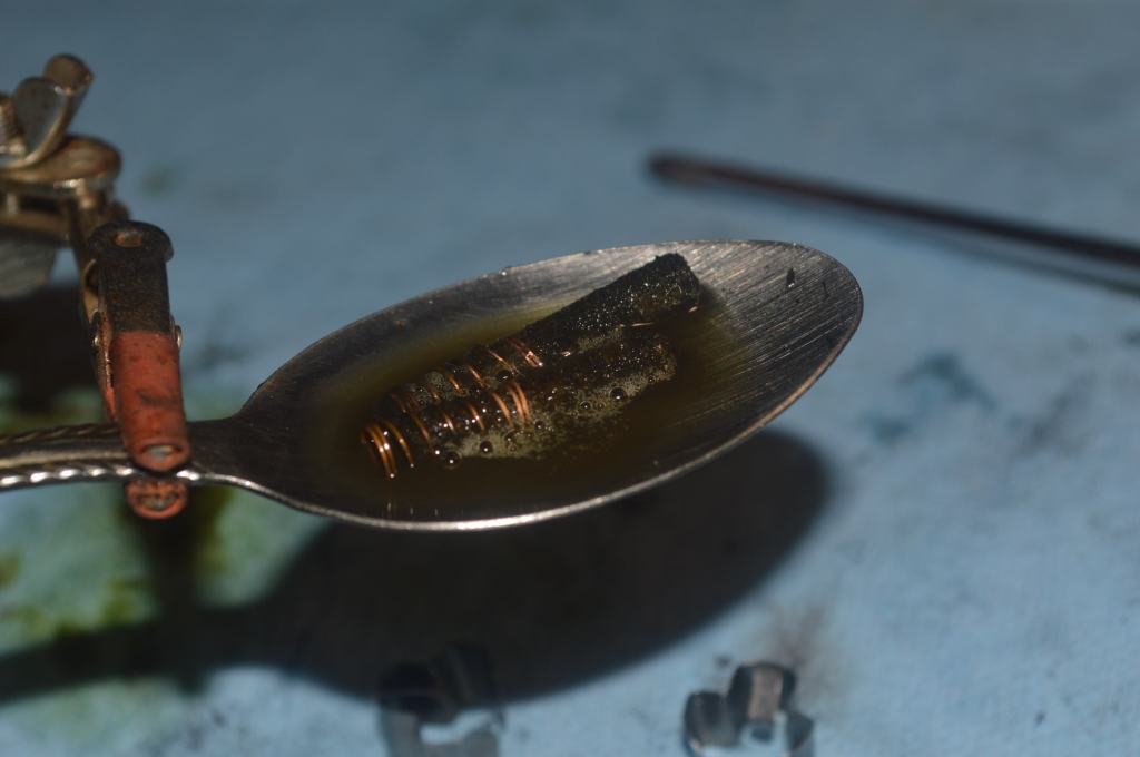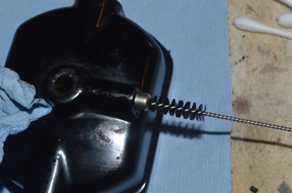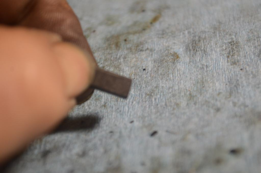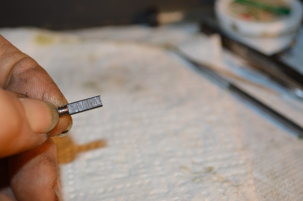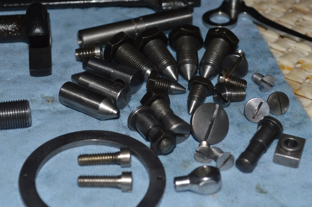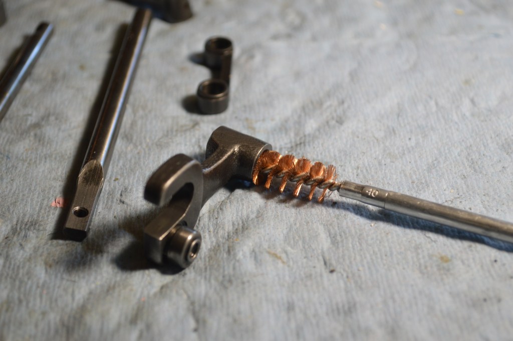 The parts are ultrasonically cleaned, heated in oil to 250 degrees to drive off water, and then each piece is wire brushed to shiny steel.
