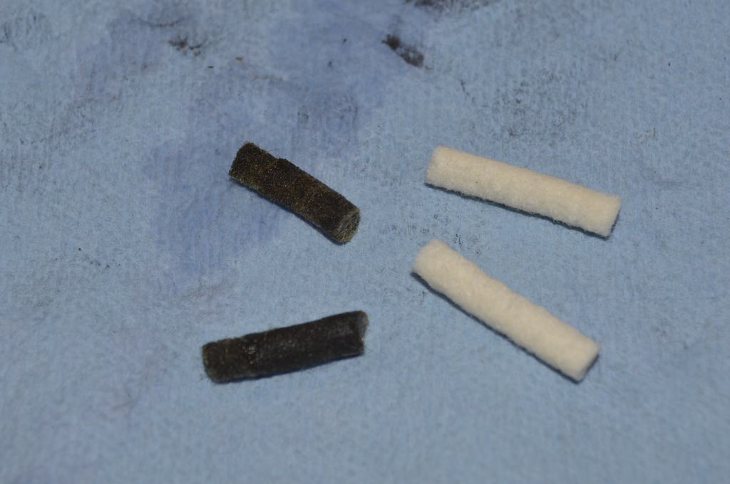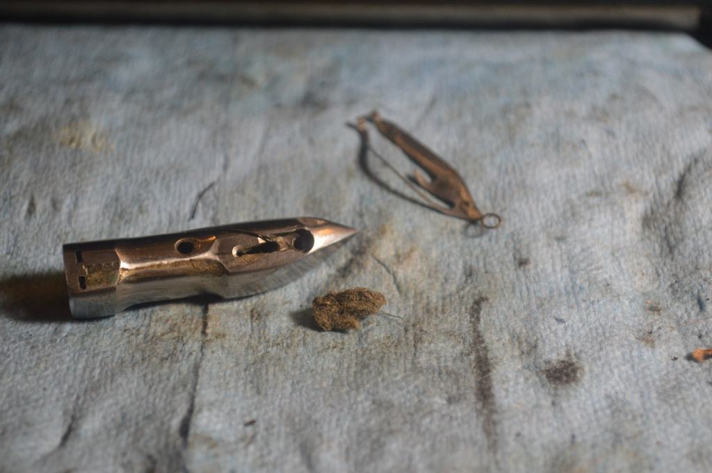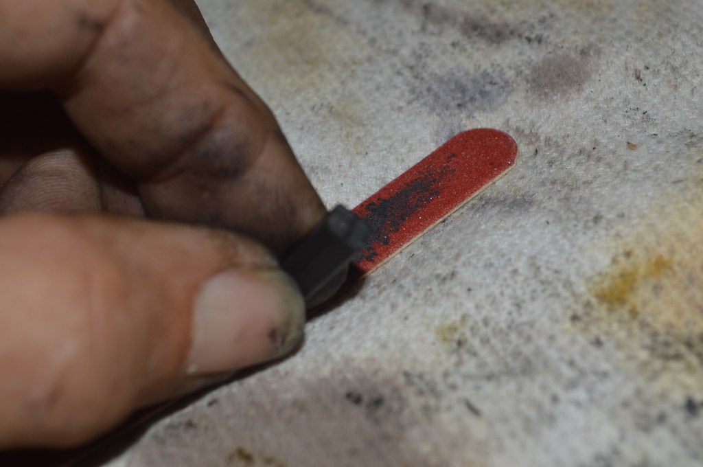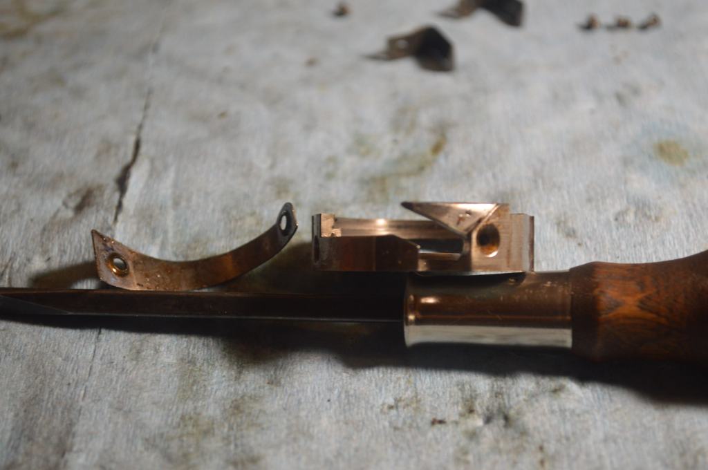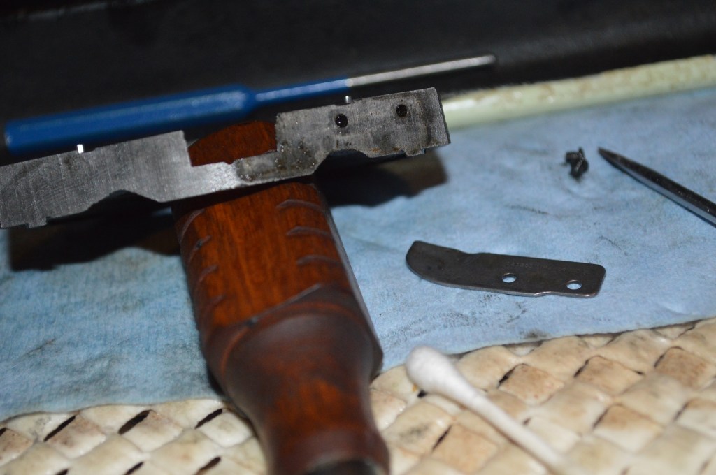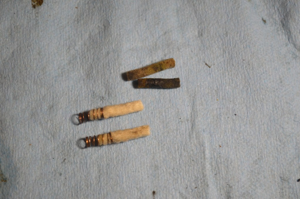 The parts are ultrasonically cleaned, heated in oil to 250 degrees to drive off water, and then each piece is wire brushed to shiny steel.